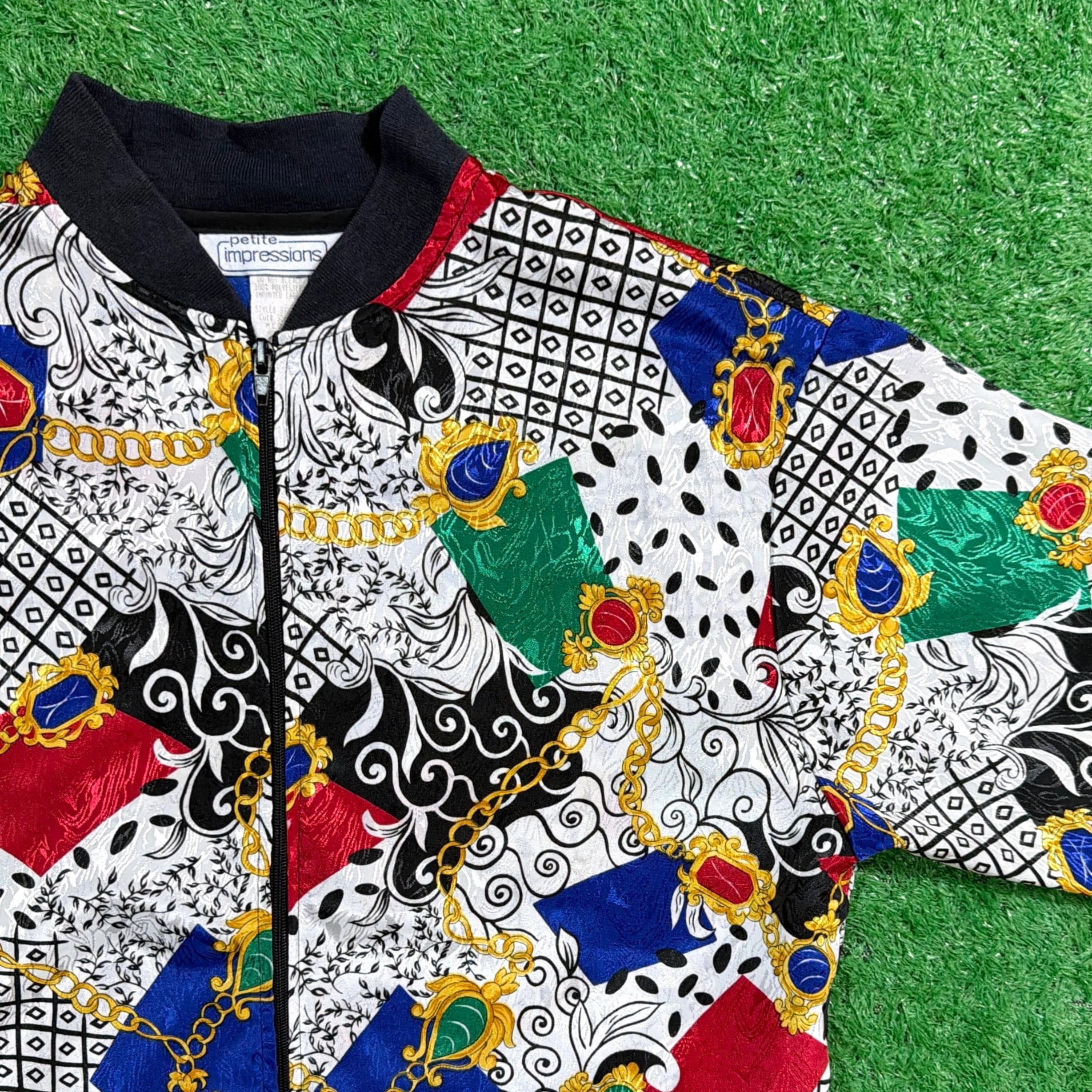 【Lady's】 80s - 90s バロック柄 ポリエステル ジャケット / アメリカ製 USA製 80年代 90年代 ブルゾン 古着 総柄 レディース ジップアップ 1203