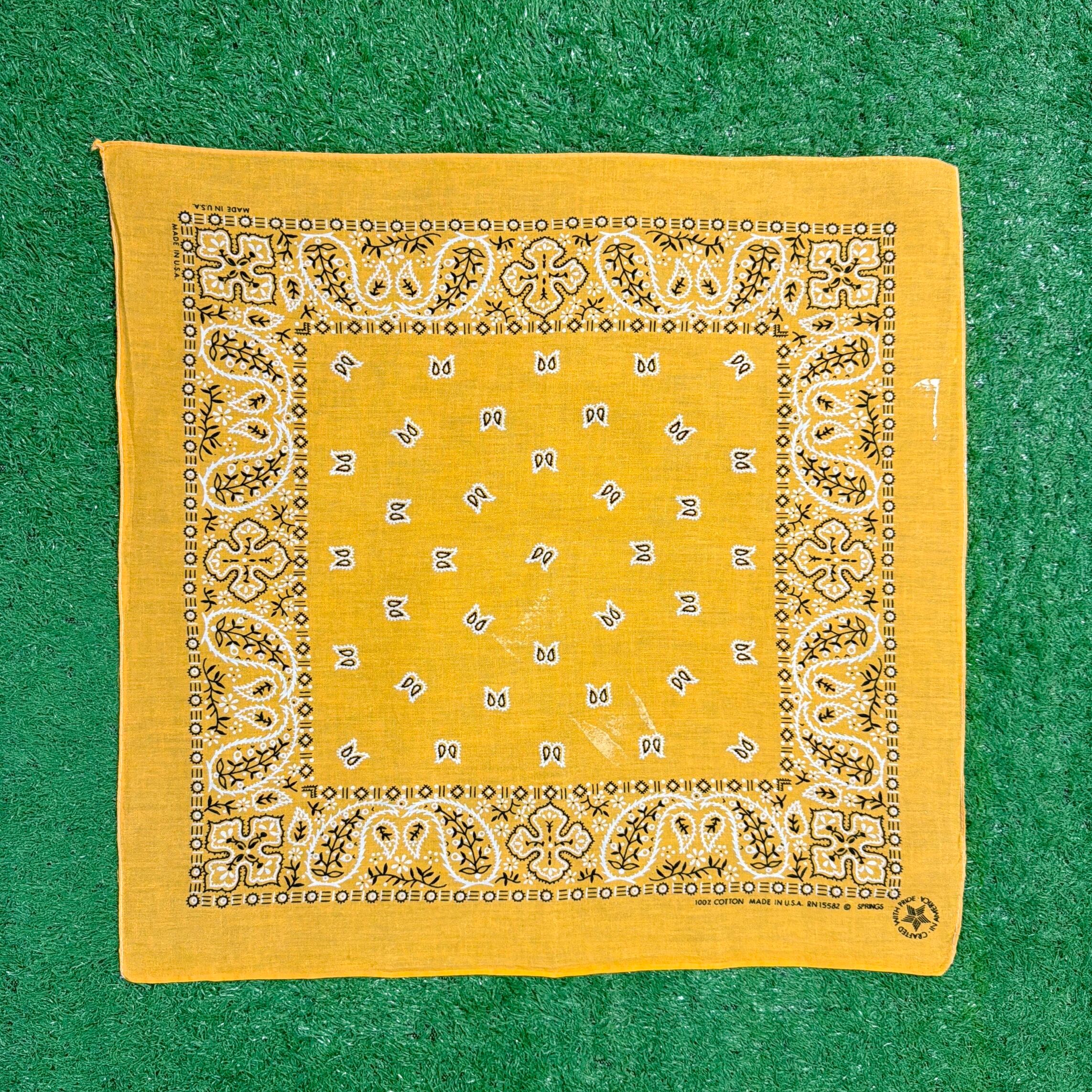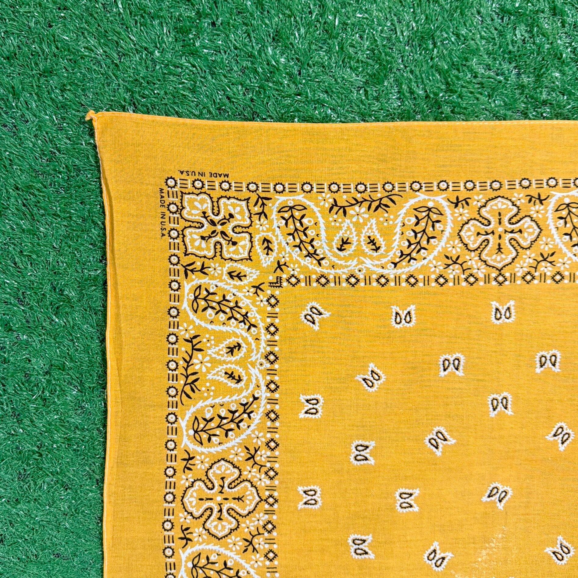 【Unisex】 80s ペイズリー柄 バンダナ / アメリカ製 USA製 80年代 古着 黄色 イエロー 1213
