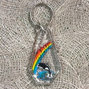 ハワイ・マウイ島をイメージした、イルカとレインボーのデザインが可愛いキーホルダーです。クリア素材の中に、虹とイルカが立体的に浮かぶように描かれており、南国らしい明るさと爽やかさを感じられるアイテム。ほどよいサイズ感で、キーやバッグに付けるとアクセントになります。