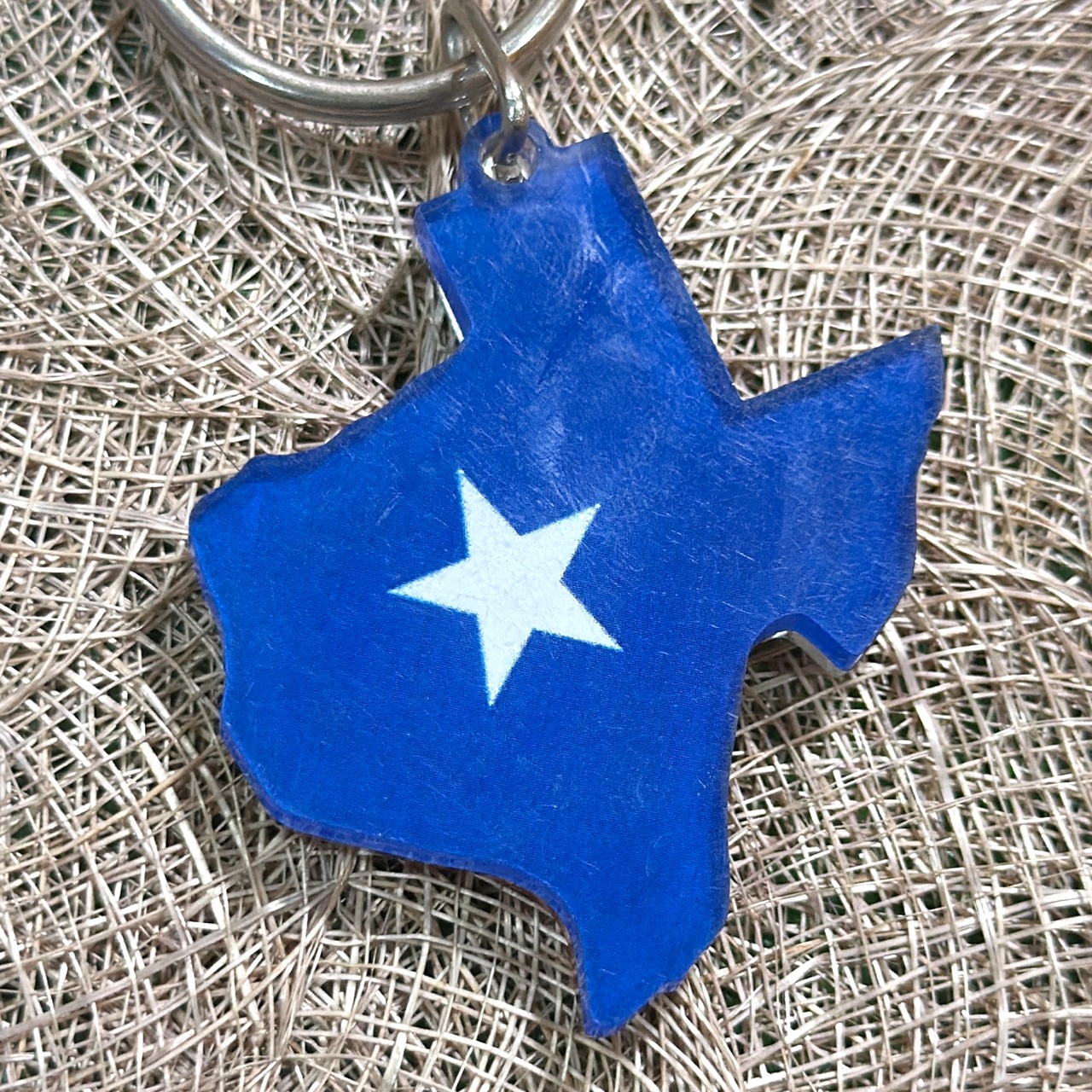 アメリカ南部・**テキサス州(TEXAS)**をかたどったキーホルダーです。