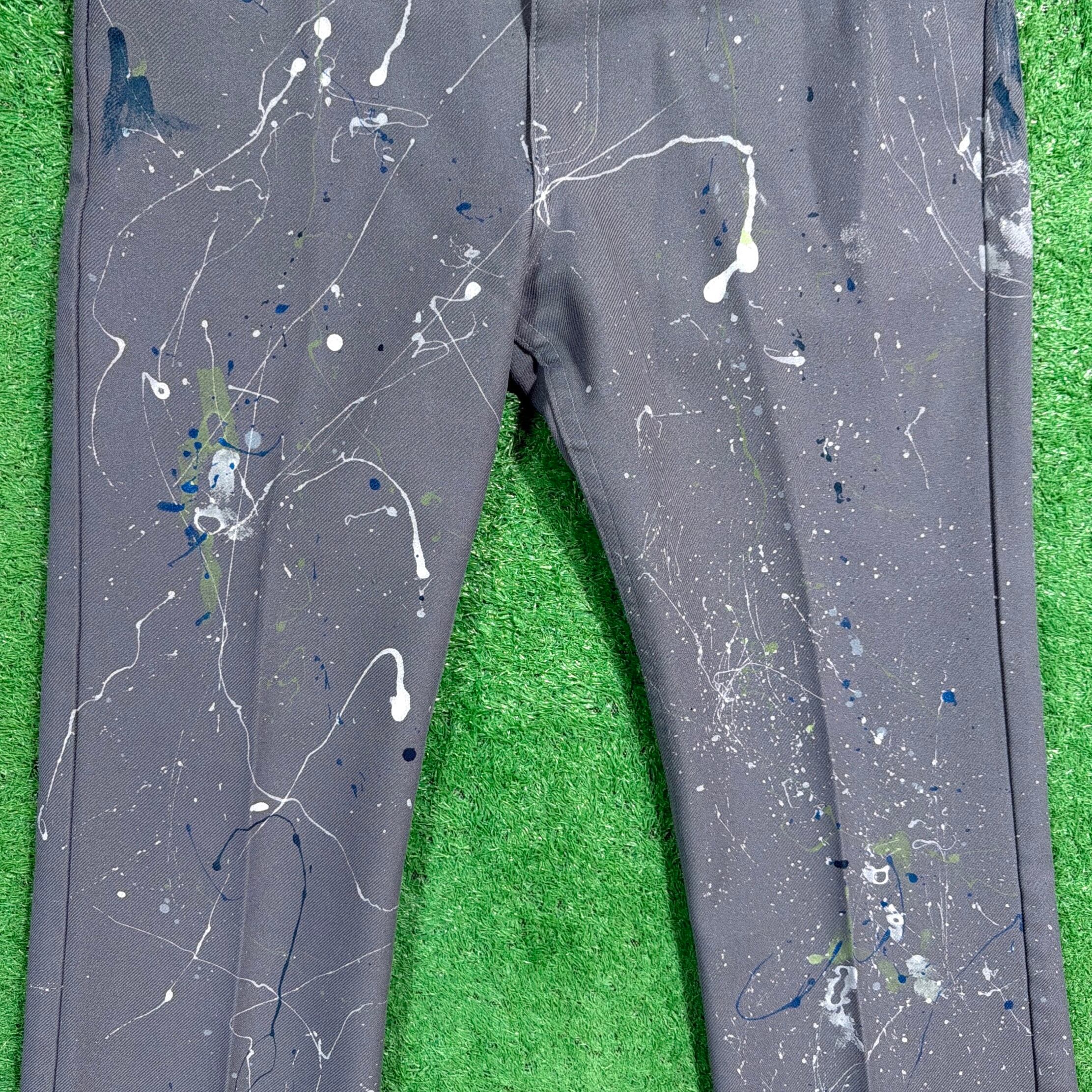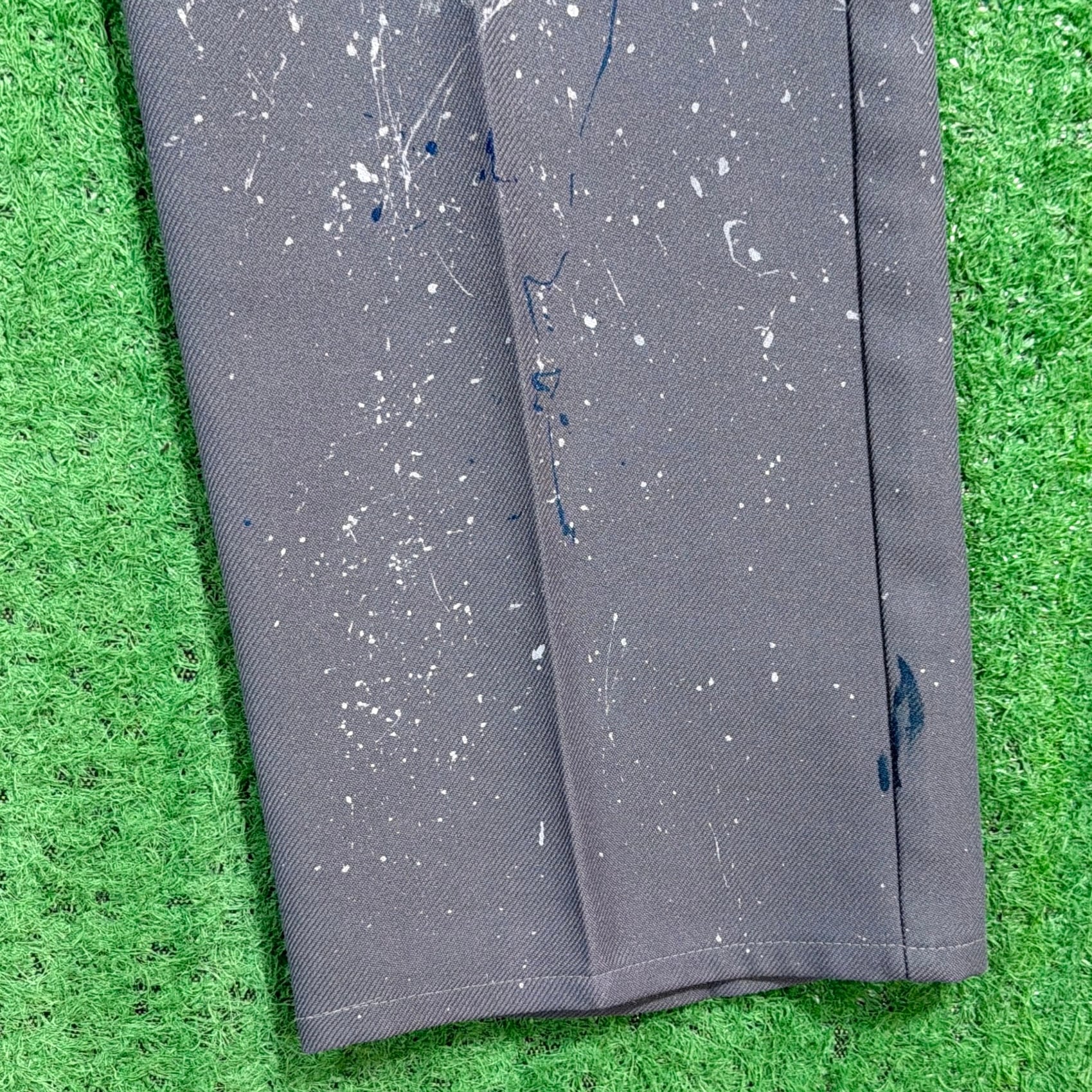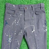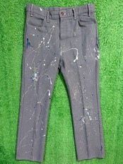 上品なグレーのカラーに、アートペイントのようなペンキ加工が施された一本で、存在感のあるアイテムです。センタープレスが入ったスッキリとしたシルエットで、カジュアルにもキレイめにも振れる万能なデザイン。アメリカ製という点も嬉しいポイントです。