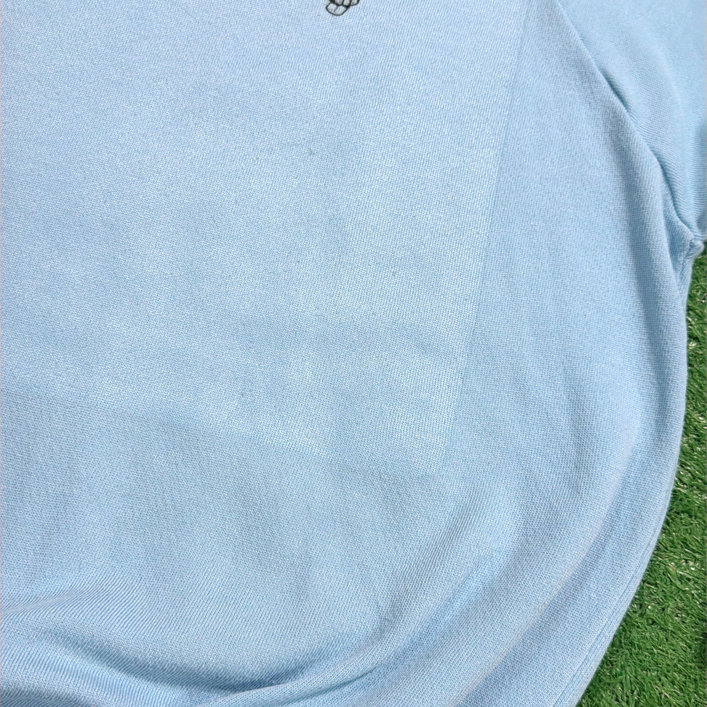 ライトブルーの柔らかいボディに、ラグランスリーブ仕様で肩周りも動かしやすく、80sらしいほどよい抜け感のあるシルエットが魅力です。