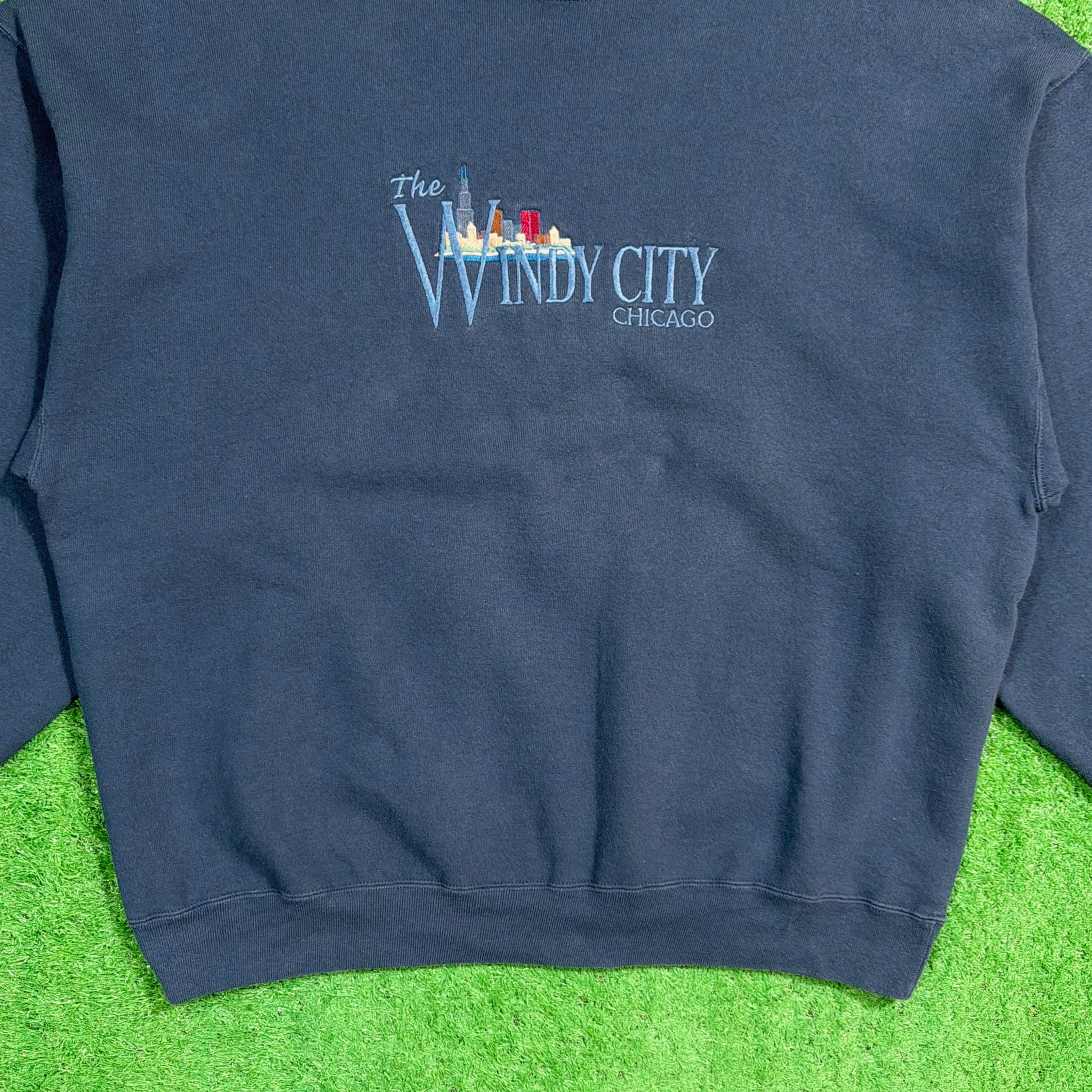【Unisex】 90s The WINDY CITY 刺繍 スウェットシャツ / アメリカ製 USA製 90年代 スエット スウェット トレーナー 1234