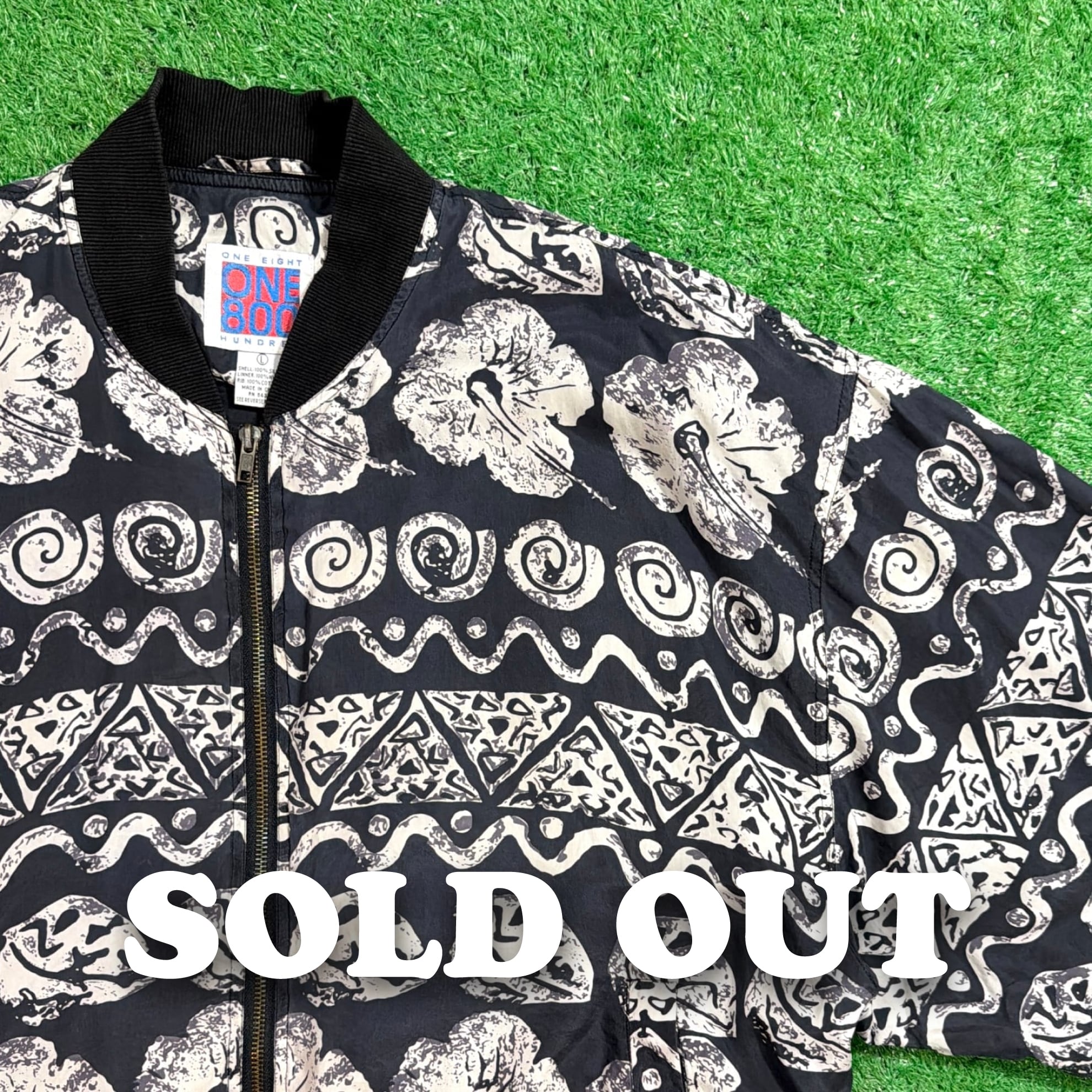 【Men's】 90s トロピカル 総柄 シルク ジップアップ ジャケット / 90年代 ブルゾン ジャンパー 総柄 古着 メンズ 1238