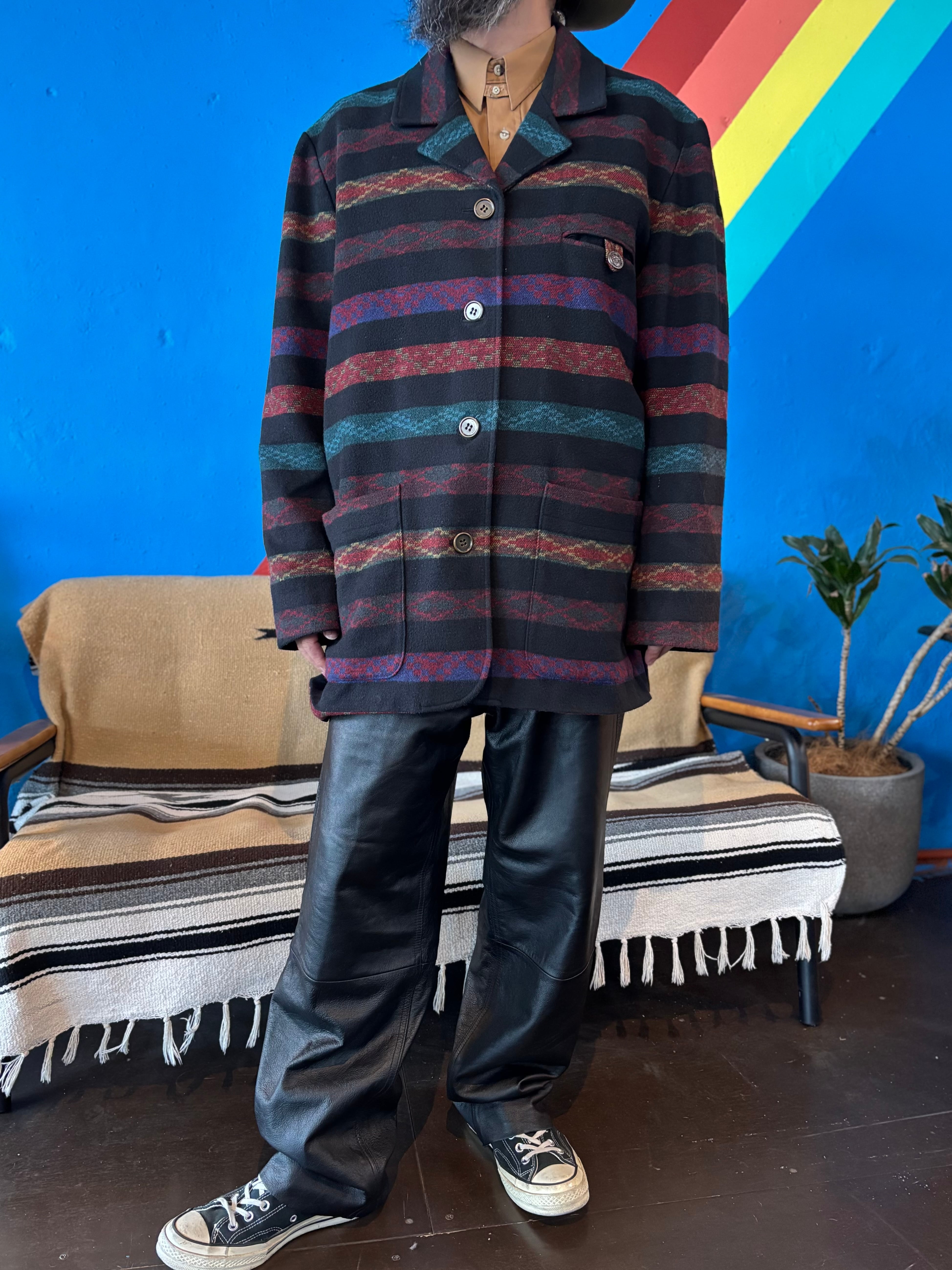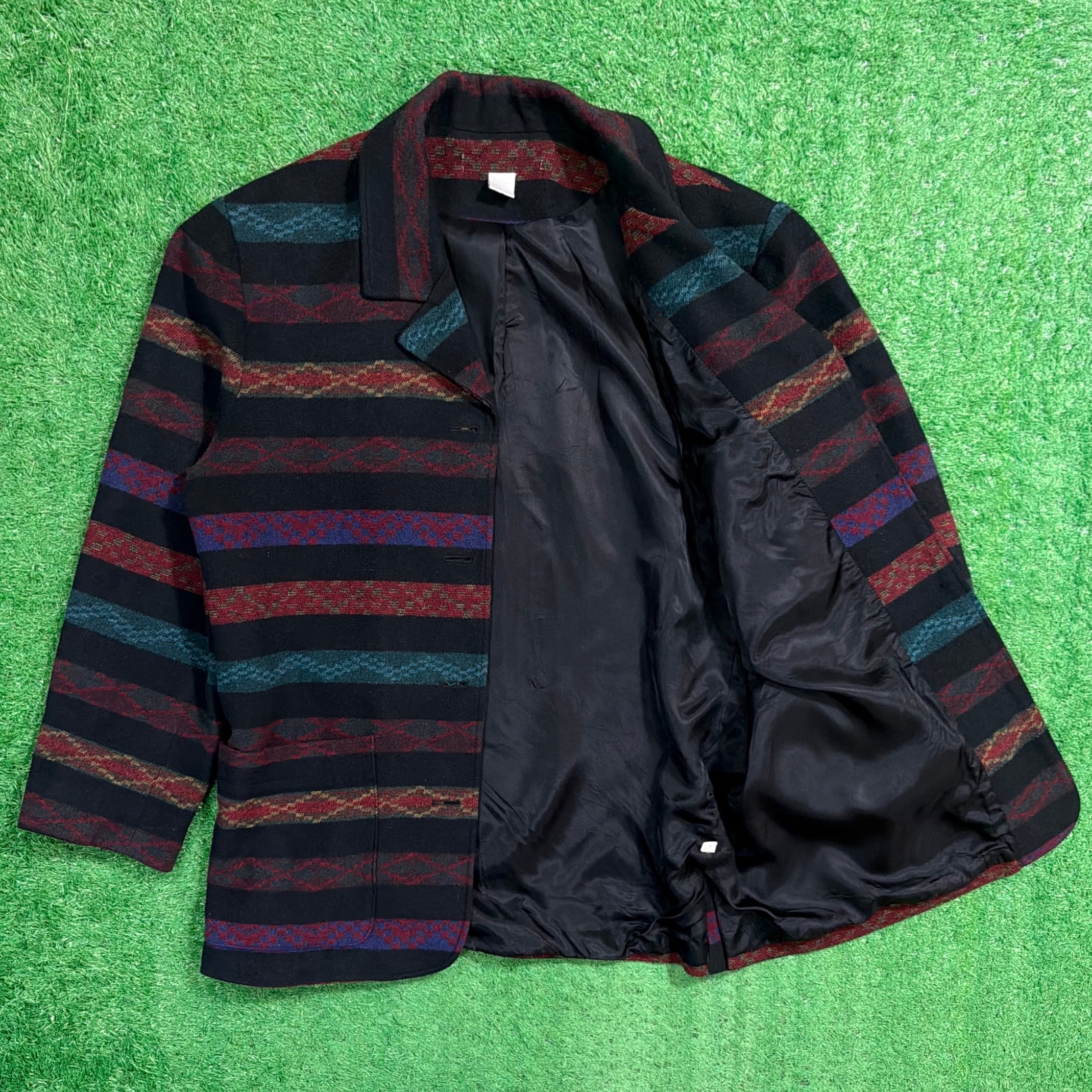 【Unisex】 90s ネイティブ柄 コート / 90年代 古着 ネイティブ ボーダー 古着 レディース メンズ ジャケット 1243