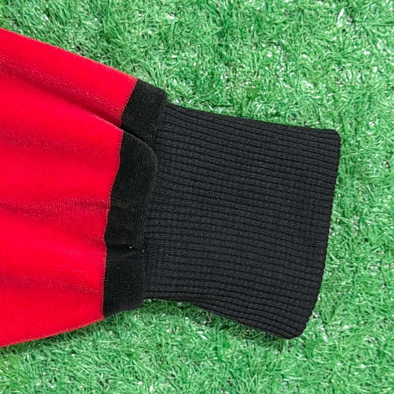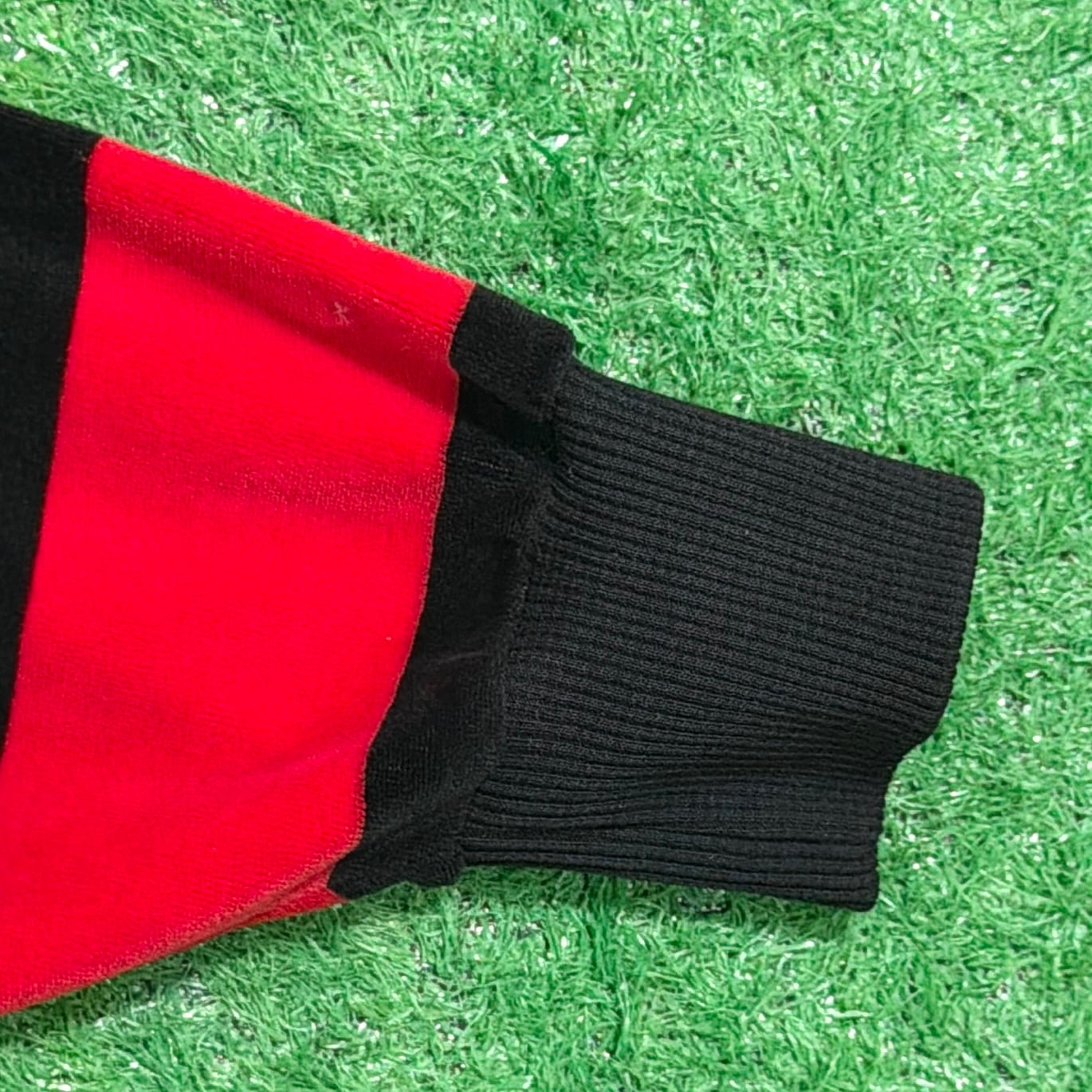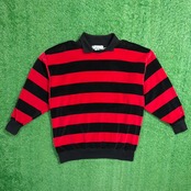 ブラック × レッドの太めボーダーが存在感たっぷりで、90sらしいポップなムードが魅力。