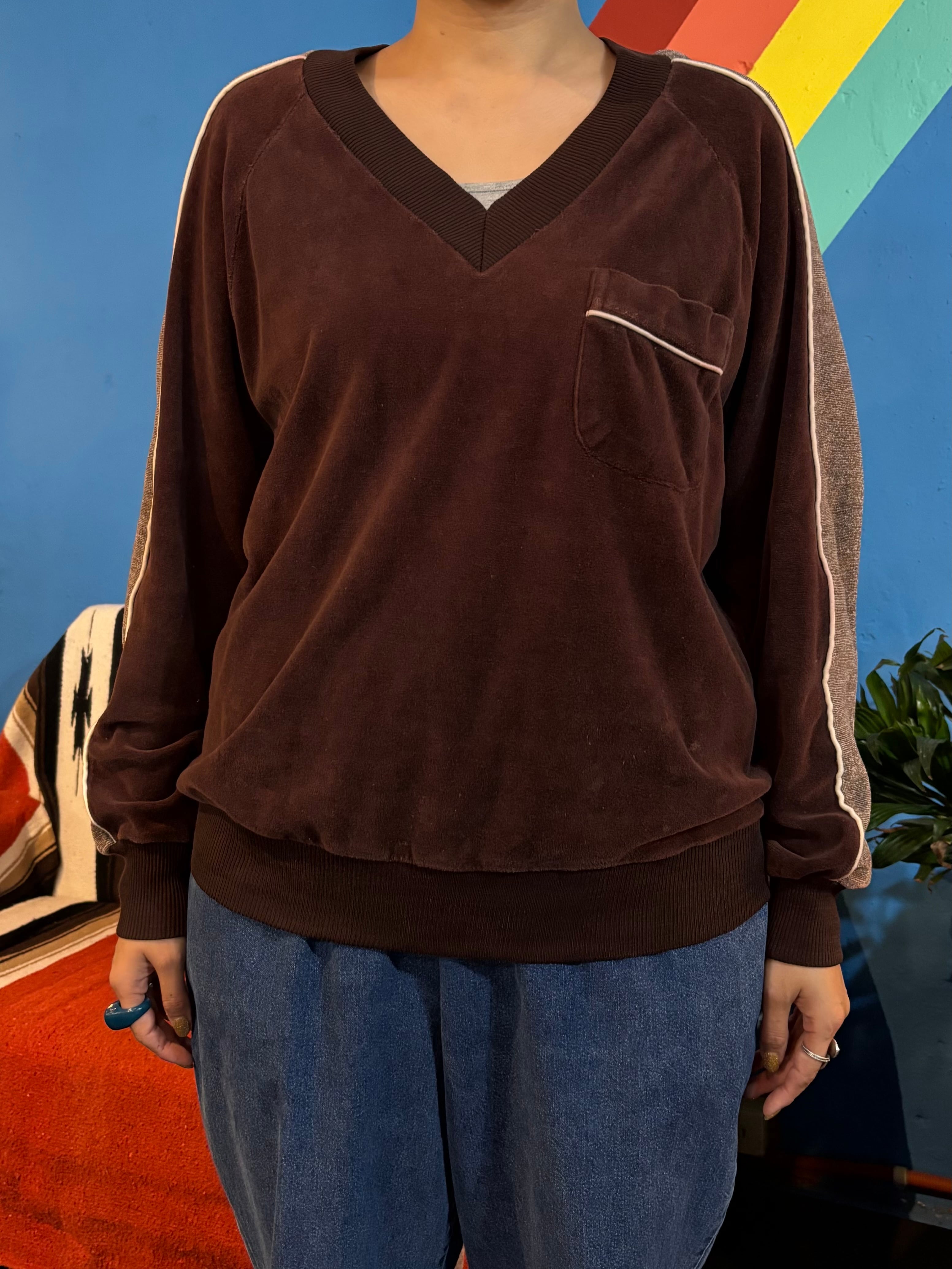 【Men's】 70s - 80s ベロア Vネック トップス / 70年代 80年代 古着 メンズ 1248