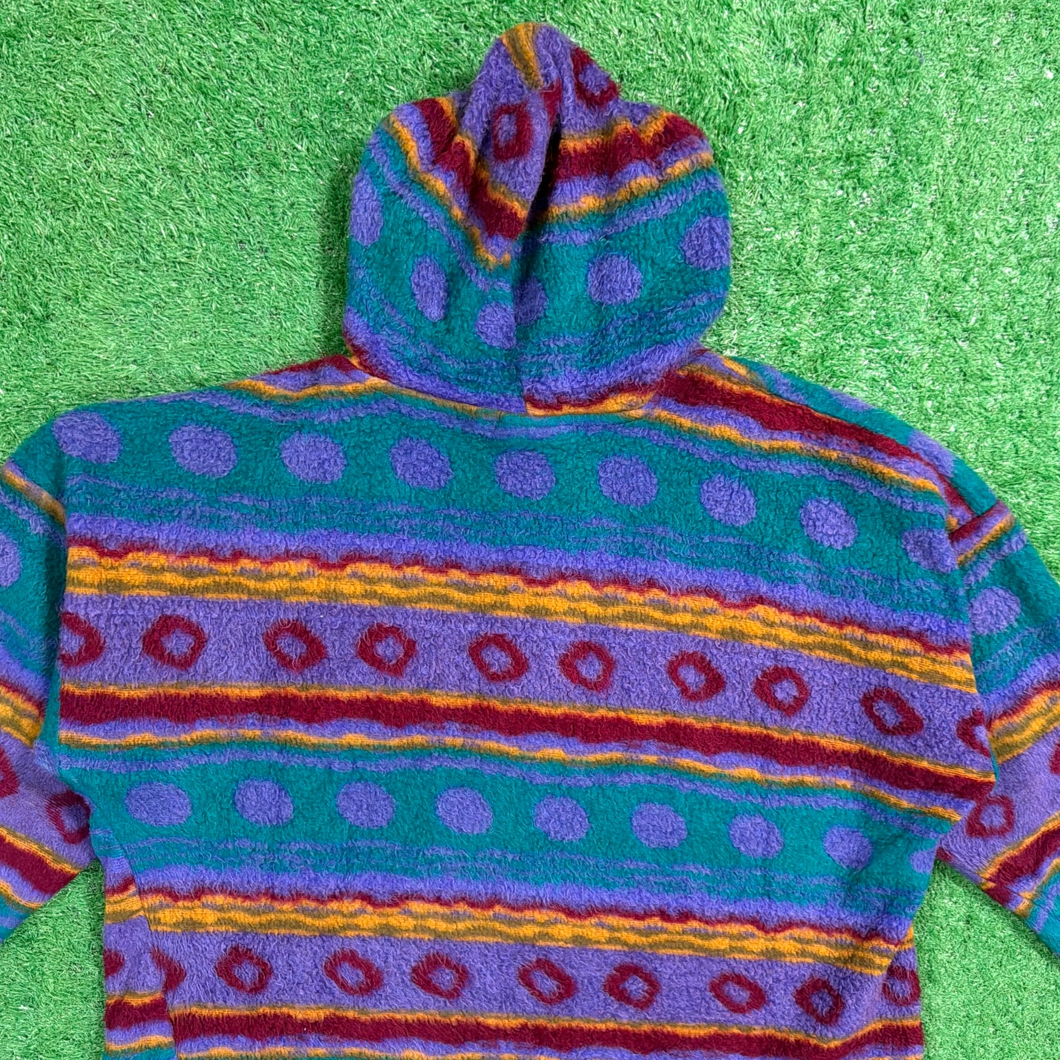 【Lady's】 90s ネイティブ柄 シャギー フリース ハーフジップ パーカー / 90年代 フーディー フリース レディース 総柄 1261