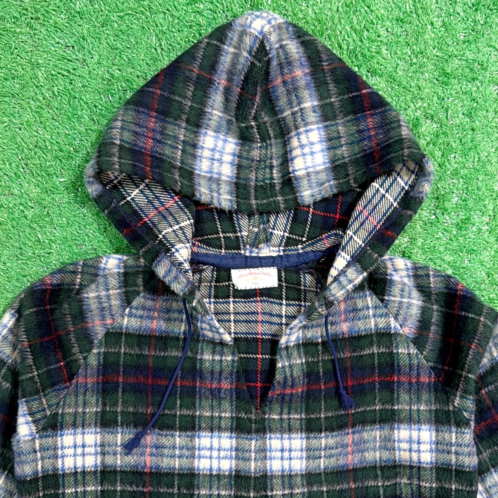【Lady's】 70s - モヘア調 チェック プルオーバー ジャケット / 70年代 古着 レディース パーカー フーディー コート 1263