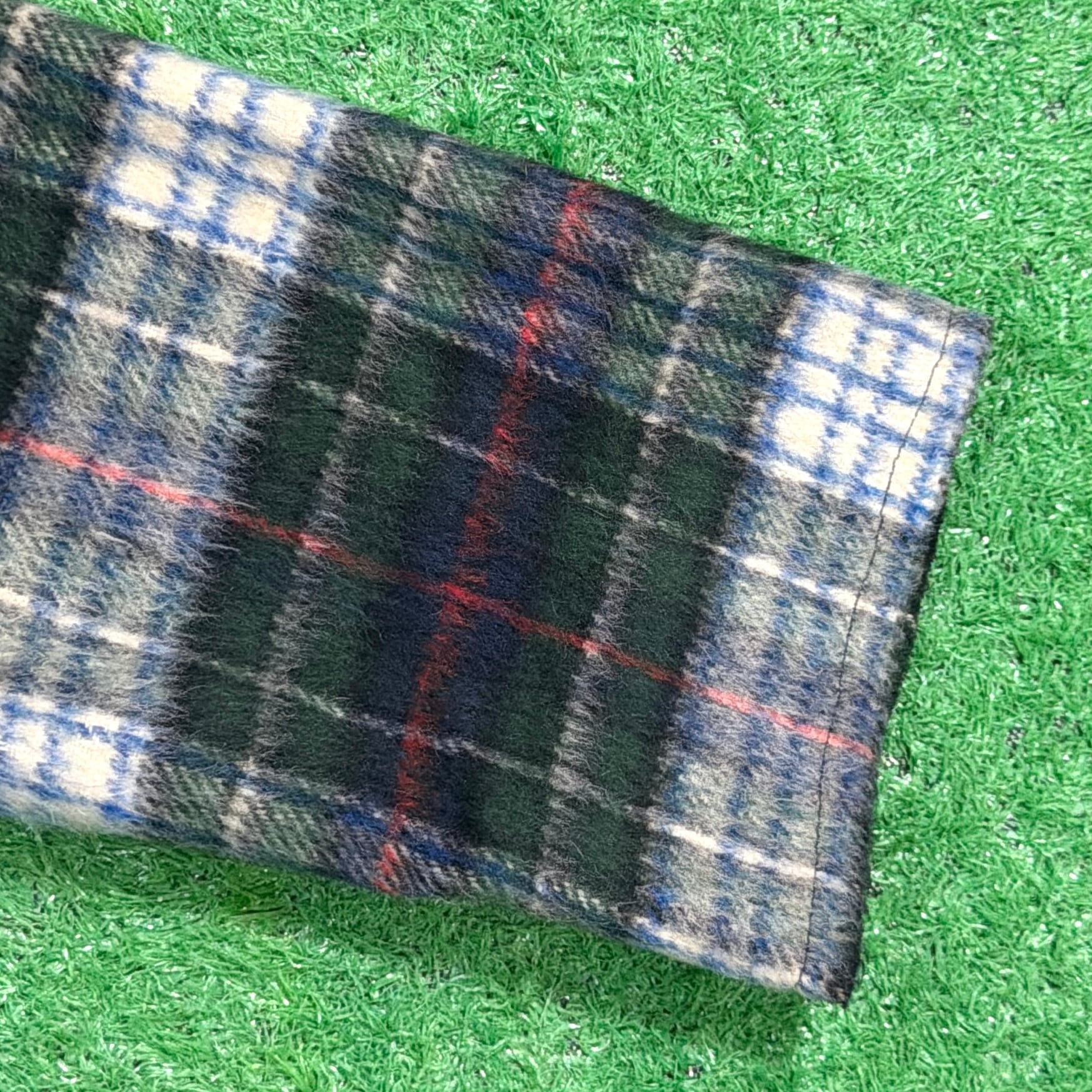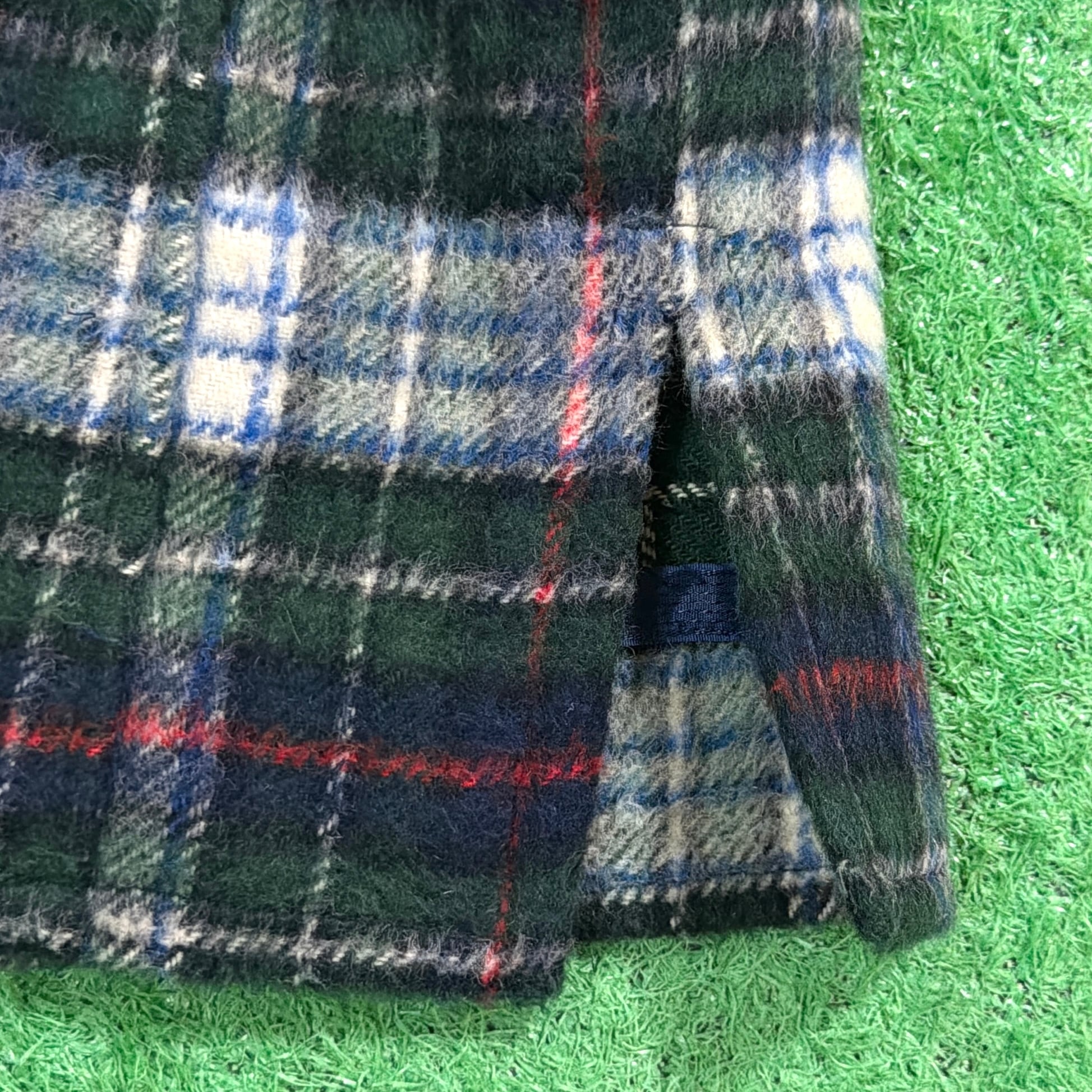 グリーン×ネイビーをベースにしたチェック柄が落ち着いた雰囲気で、レトロなフード付きデザインも魅力のひとつ。サイドにはスリットが入り、動きやすく抜け感のあるシルエットに。