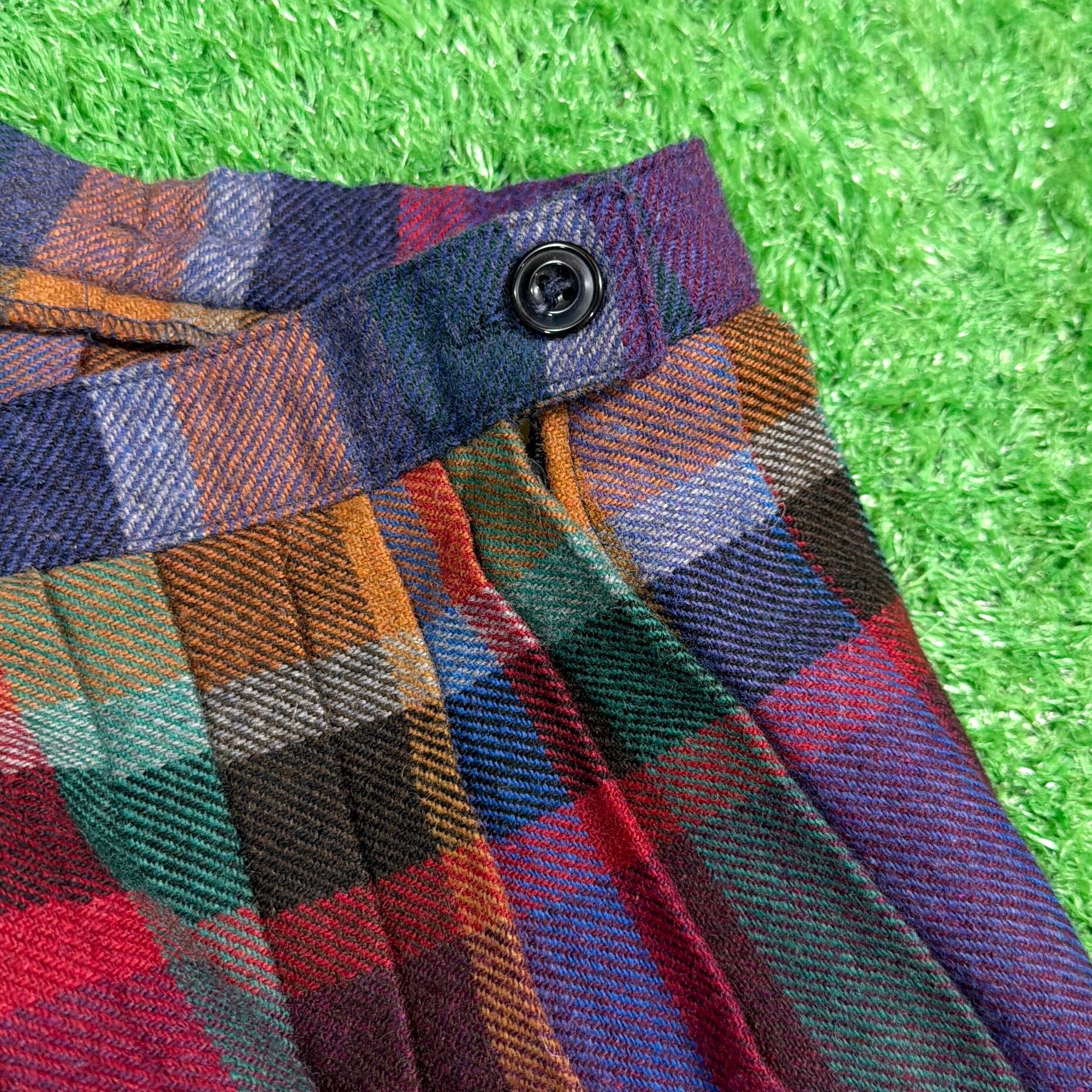【Lady's】 80s ウール混 タータンチェック プリーツ スカート / アメリカ製 USA製 80年代 古着 レディース 1277