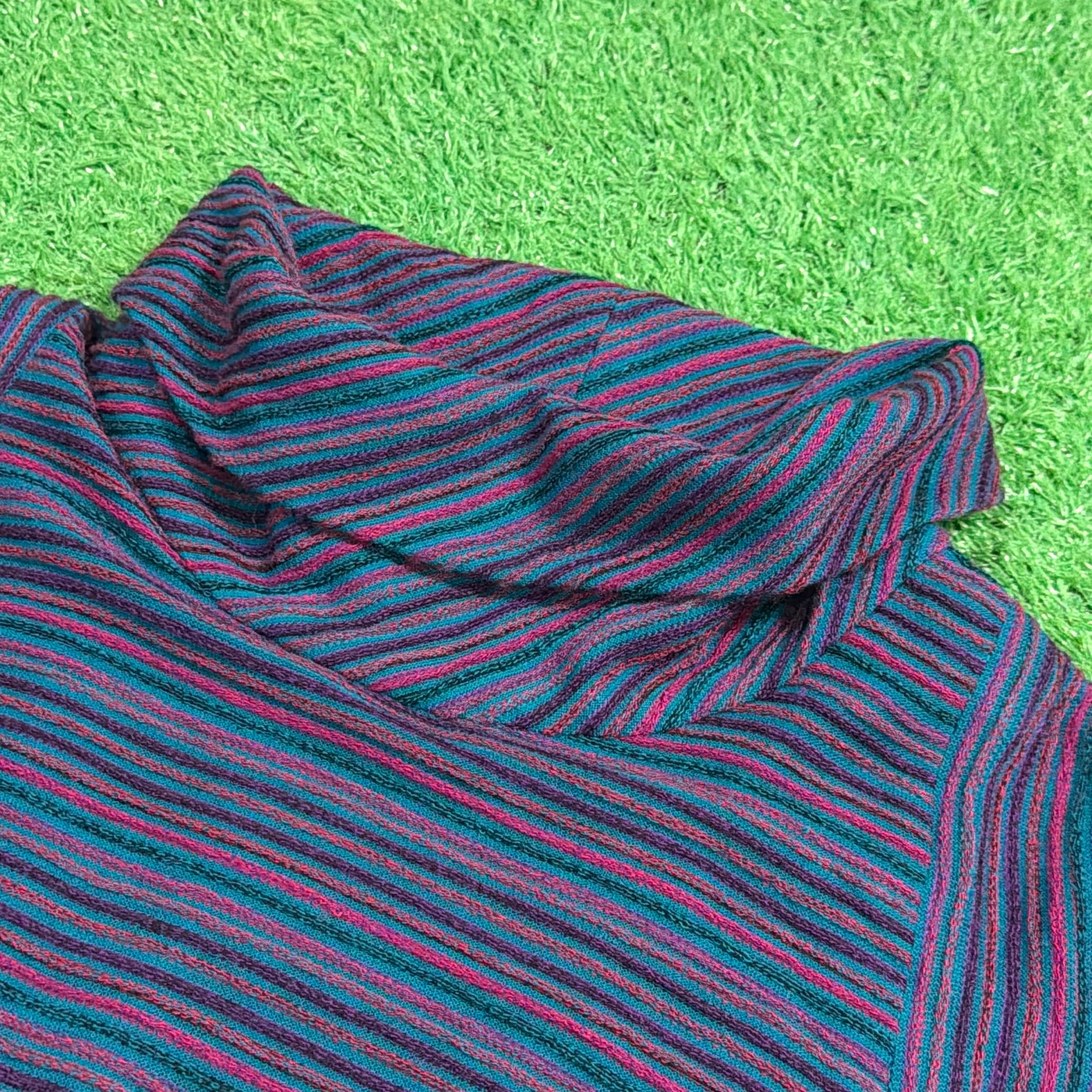 【Lady's】 70s タートルネック ドルマンスリーブ ワンピース / アメリカ製 USA製 70年代 古着 レディース ボーダー 大人古着 ワンピ 1284