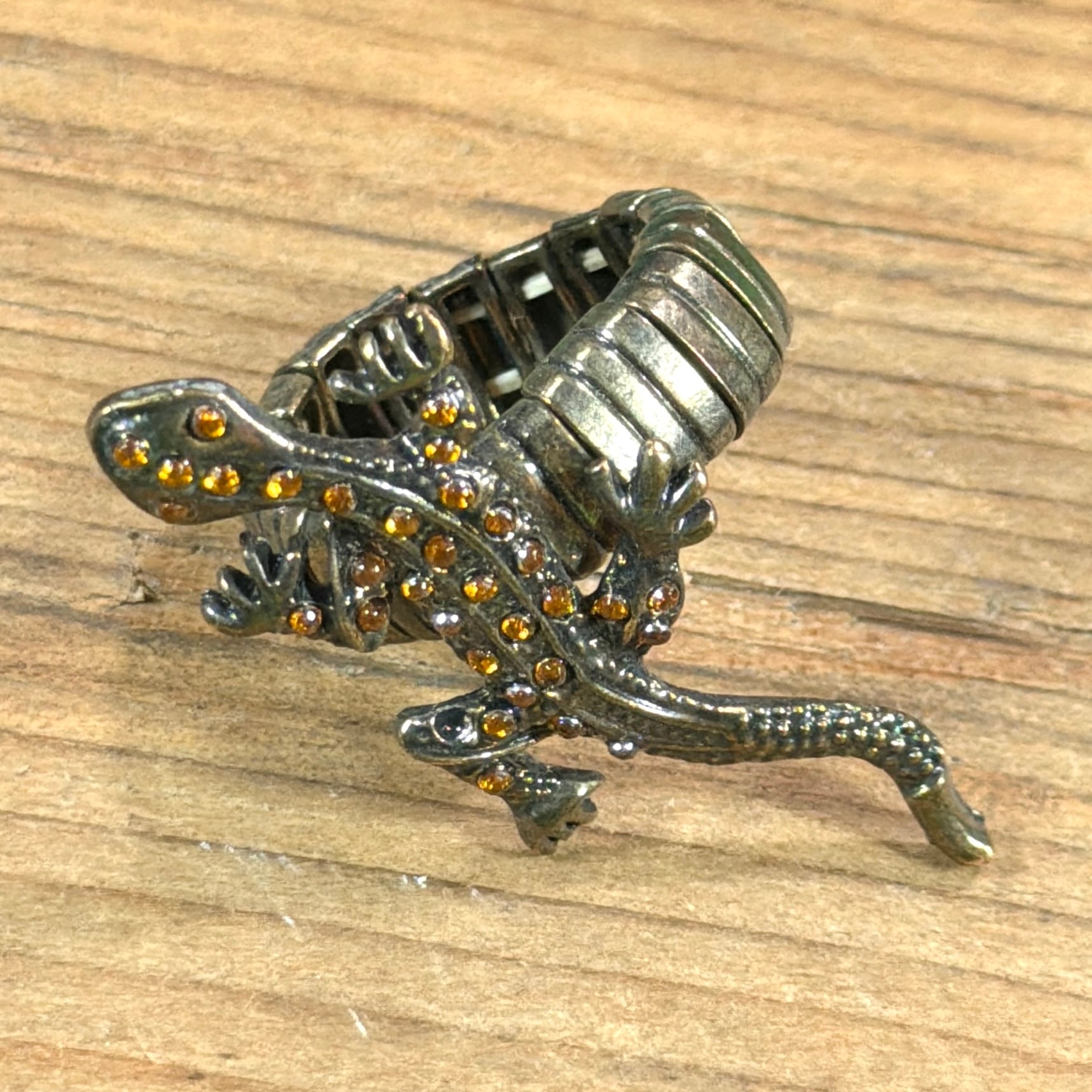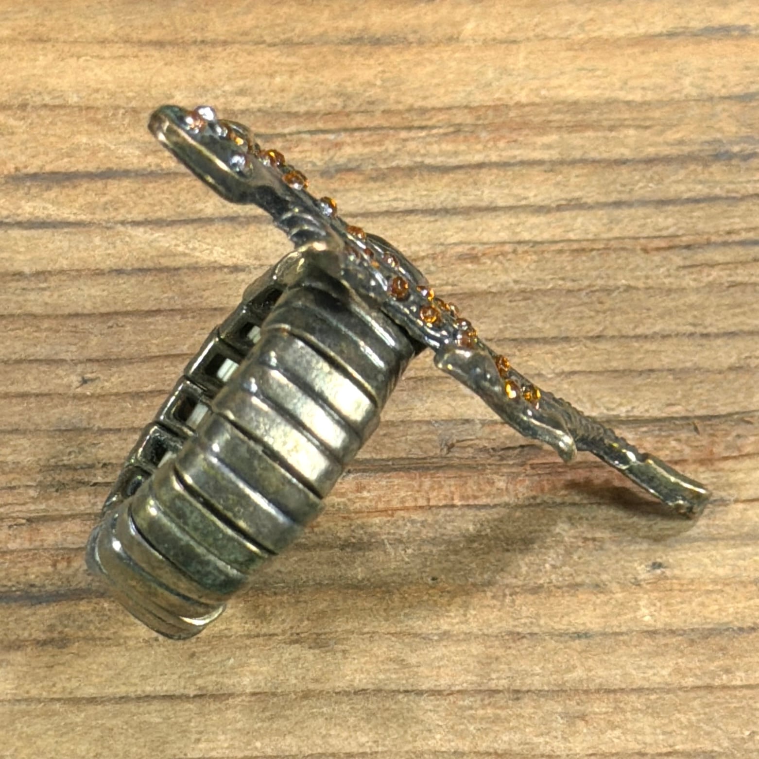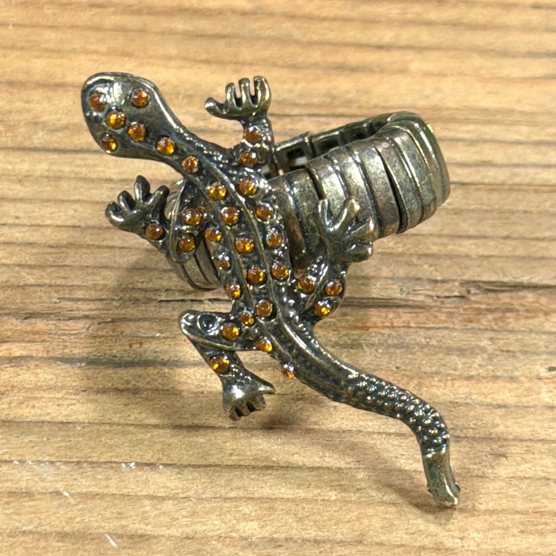 【Unisex】 トカゲ モチーフ ゴム リング / 指輪 ラインストーン リザード 爬虫類 アクセサリー