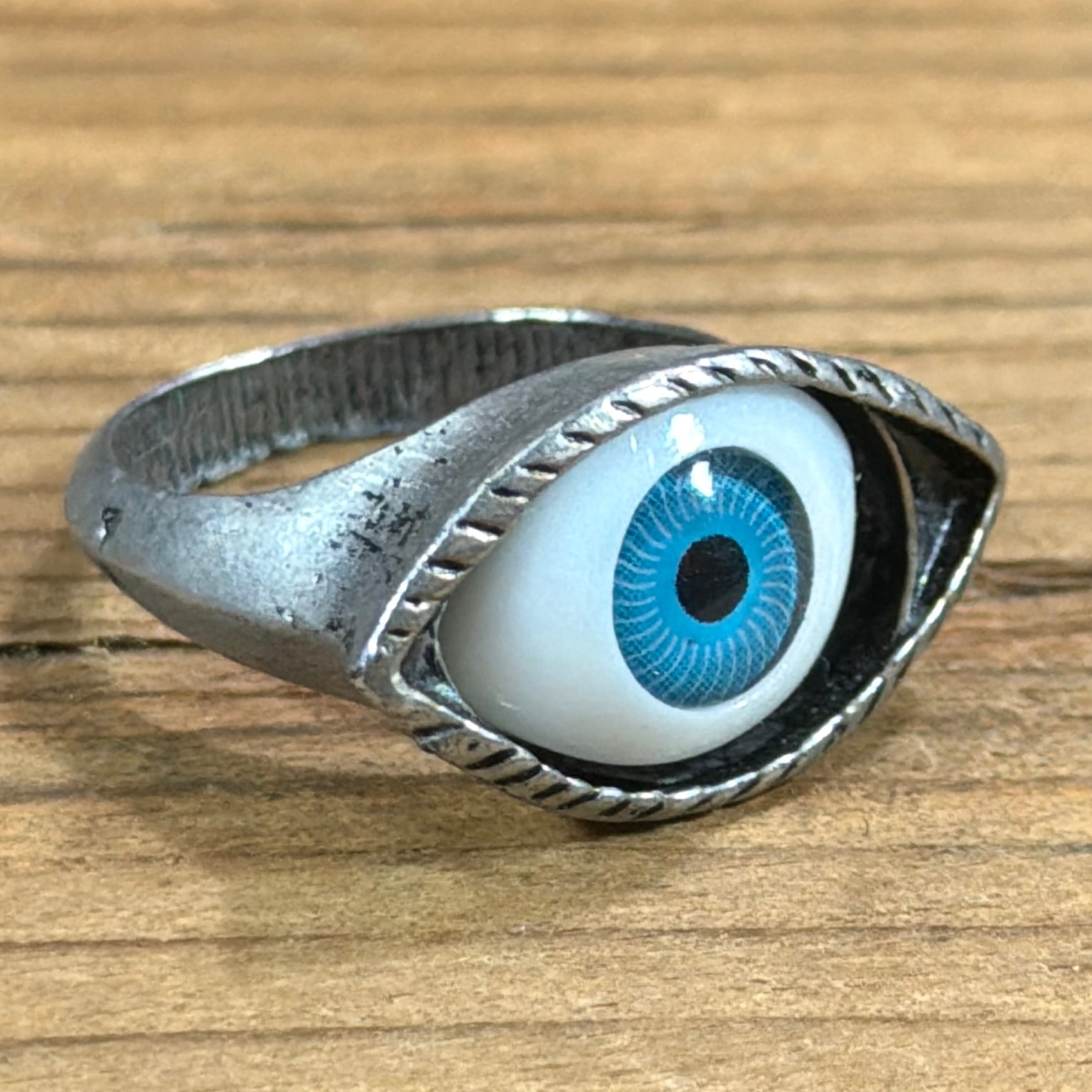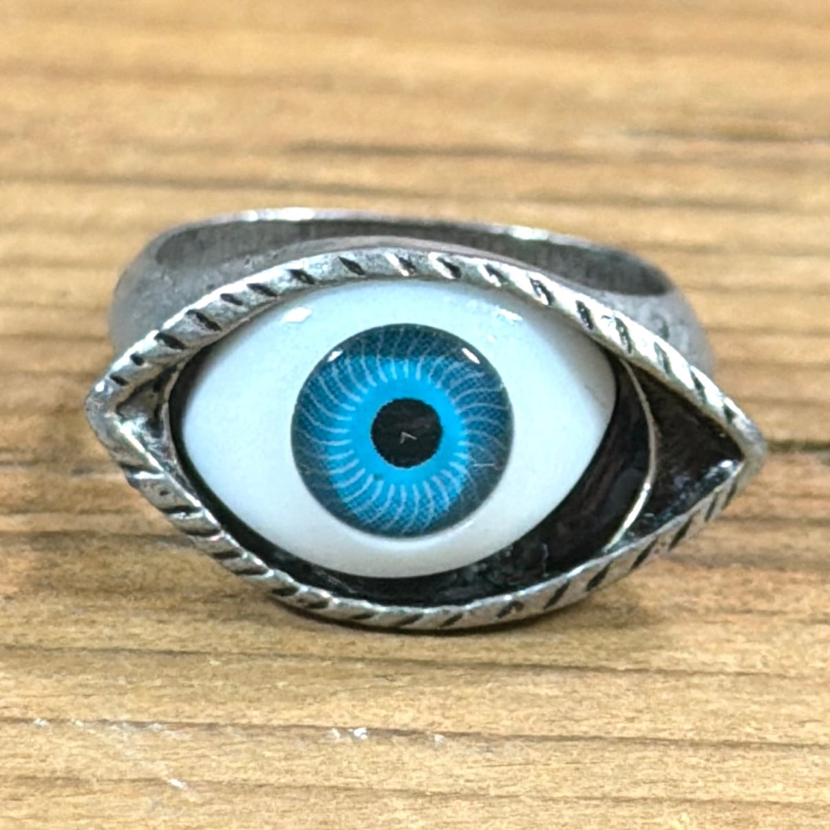 目のモチーフが印象的な、存在感のあるリングです。