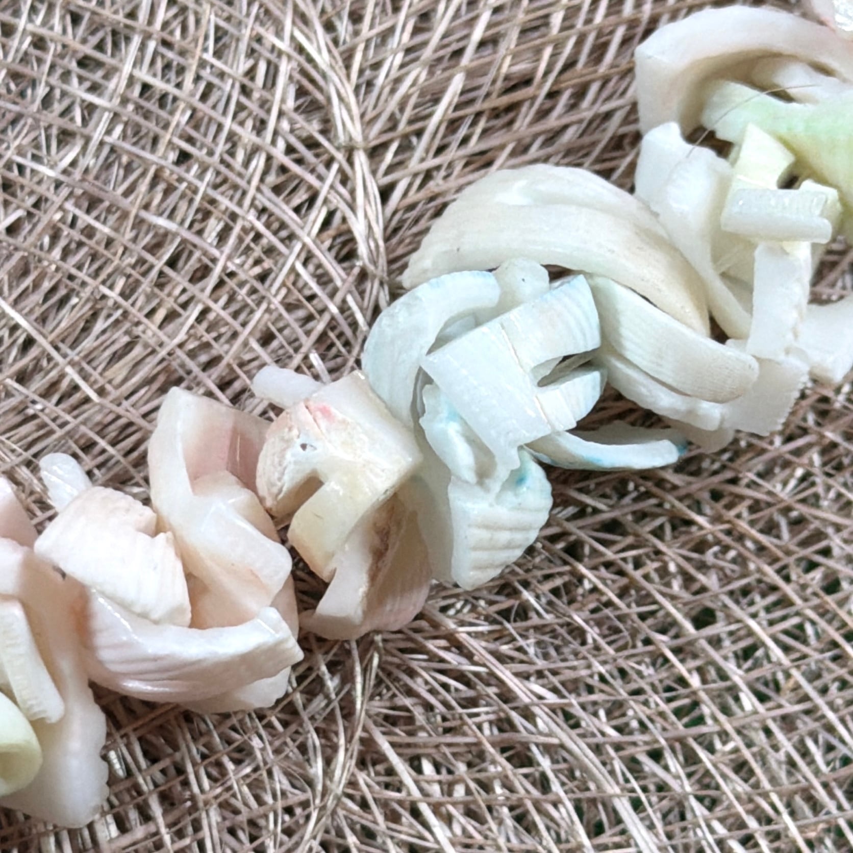 パステルカラーのシェルパーツを贅沢に連ねた、柔らかい雰囲気のシェルネックレスです。