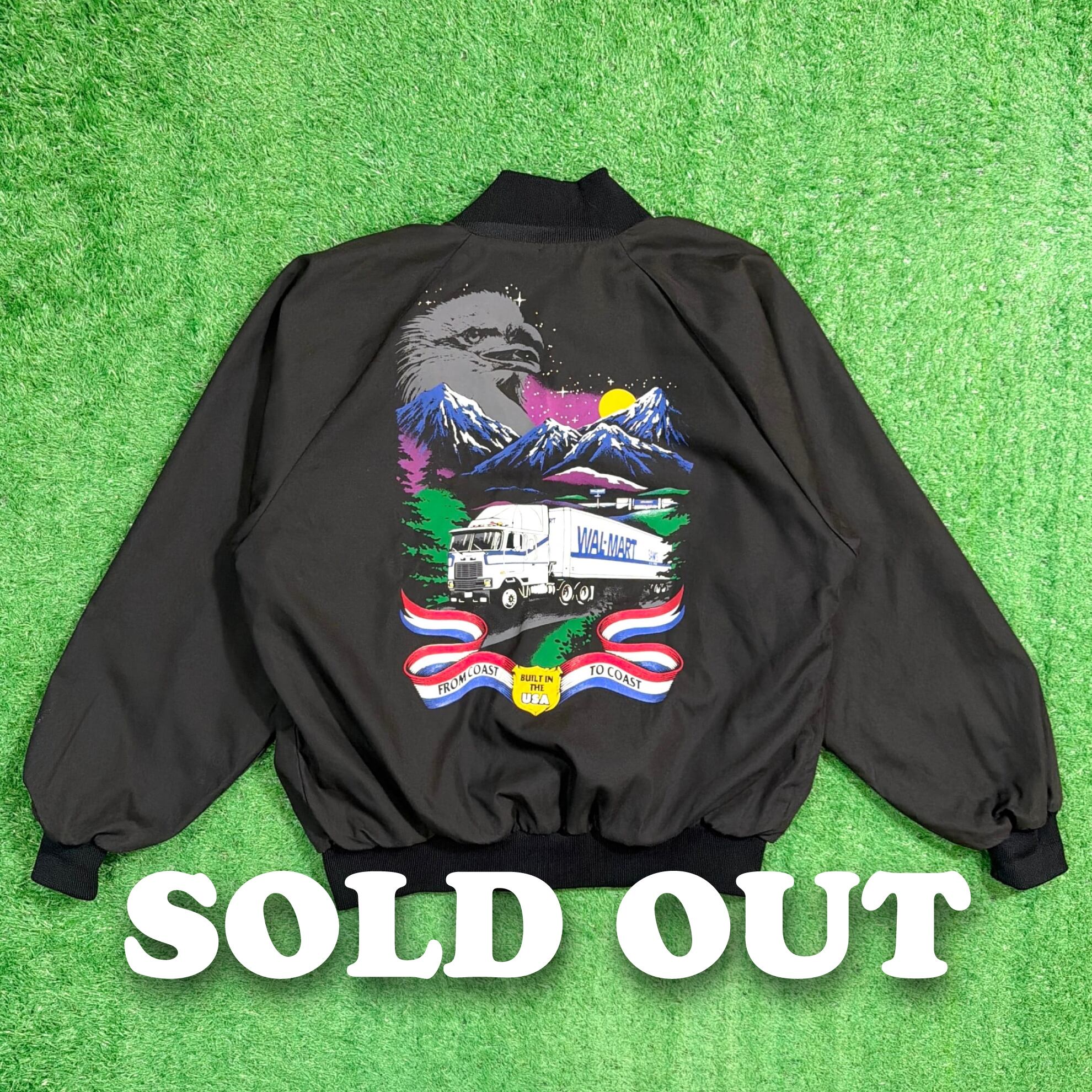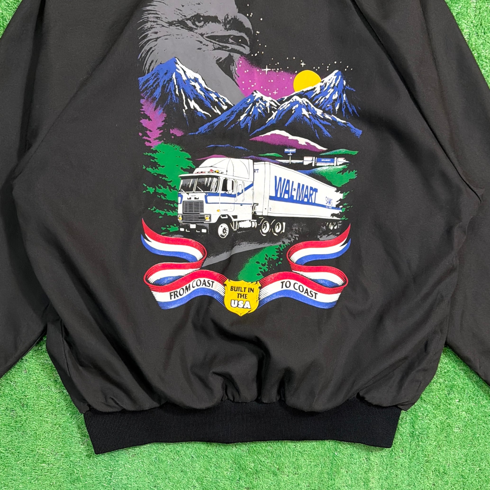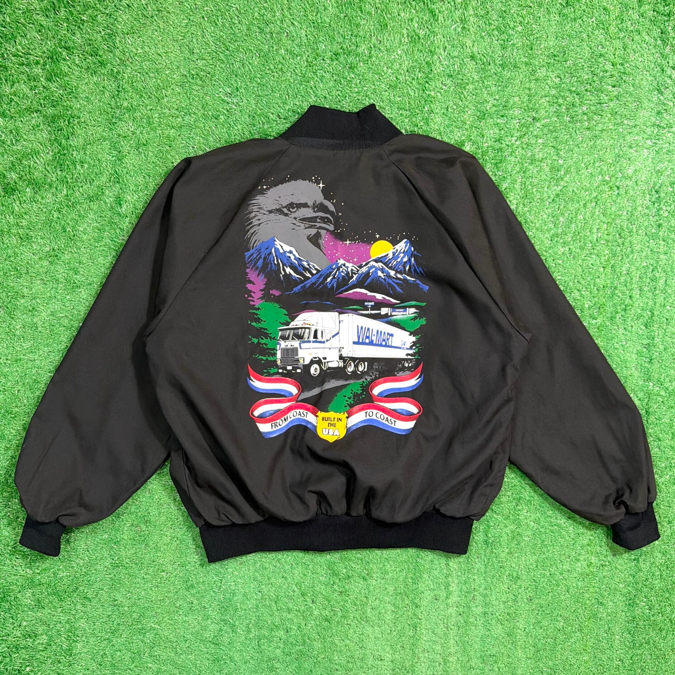 【Men's】 90s Walmart アメリカンイラスト ジャケット / アメリカ製 USA製 90年代 ブルゾン 黒 ブラック メンズ 古着 1323