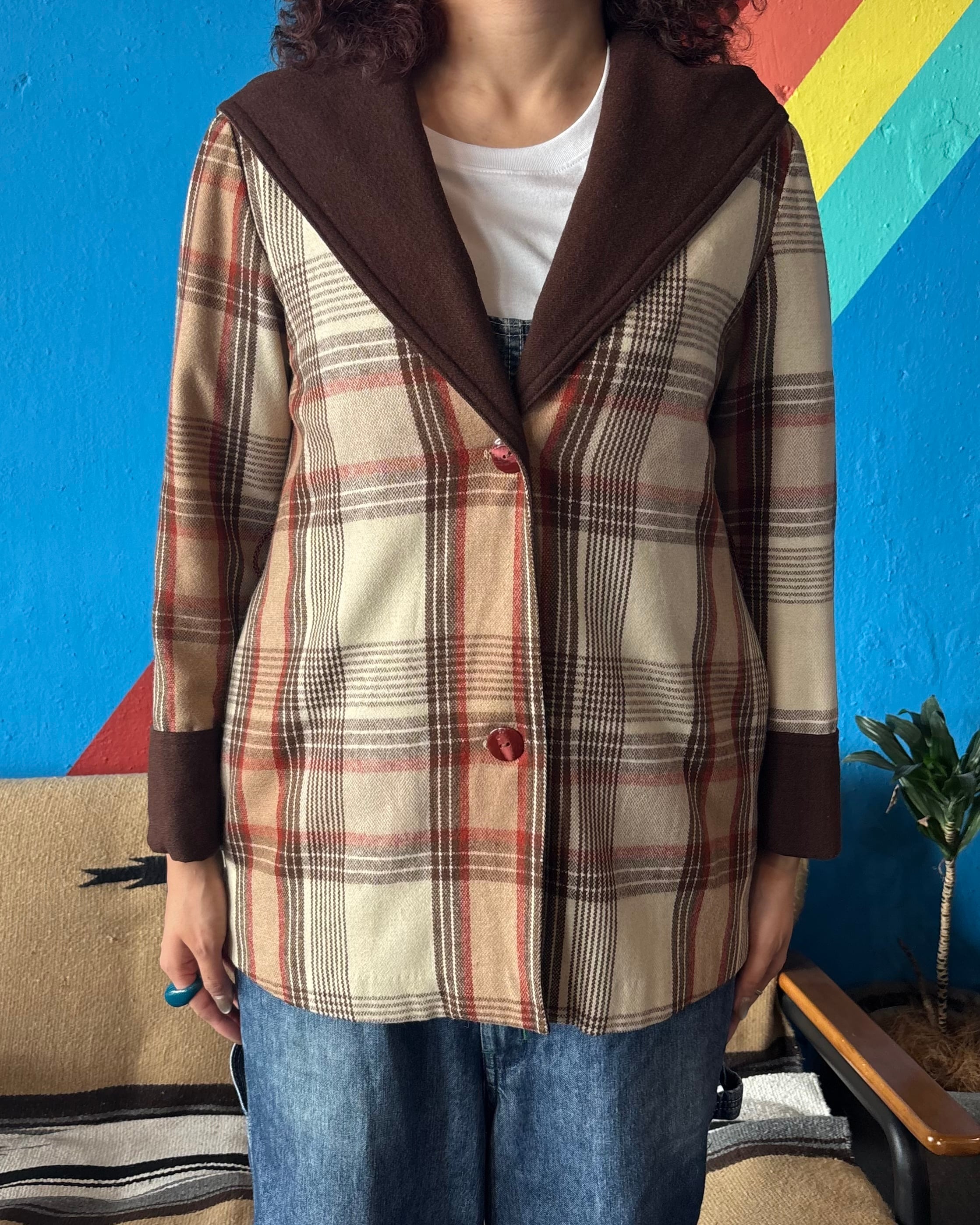1970〜80年代ごろのフード付きチェックライトコートです。