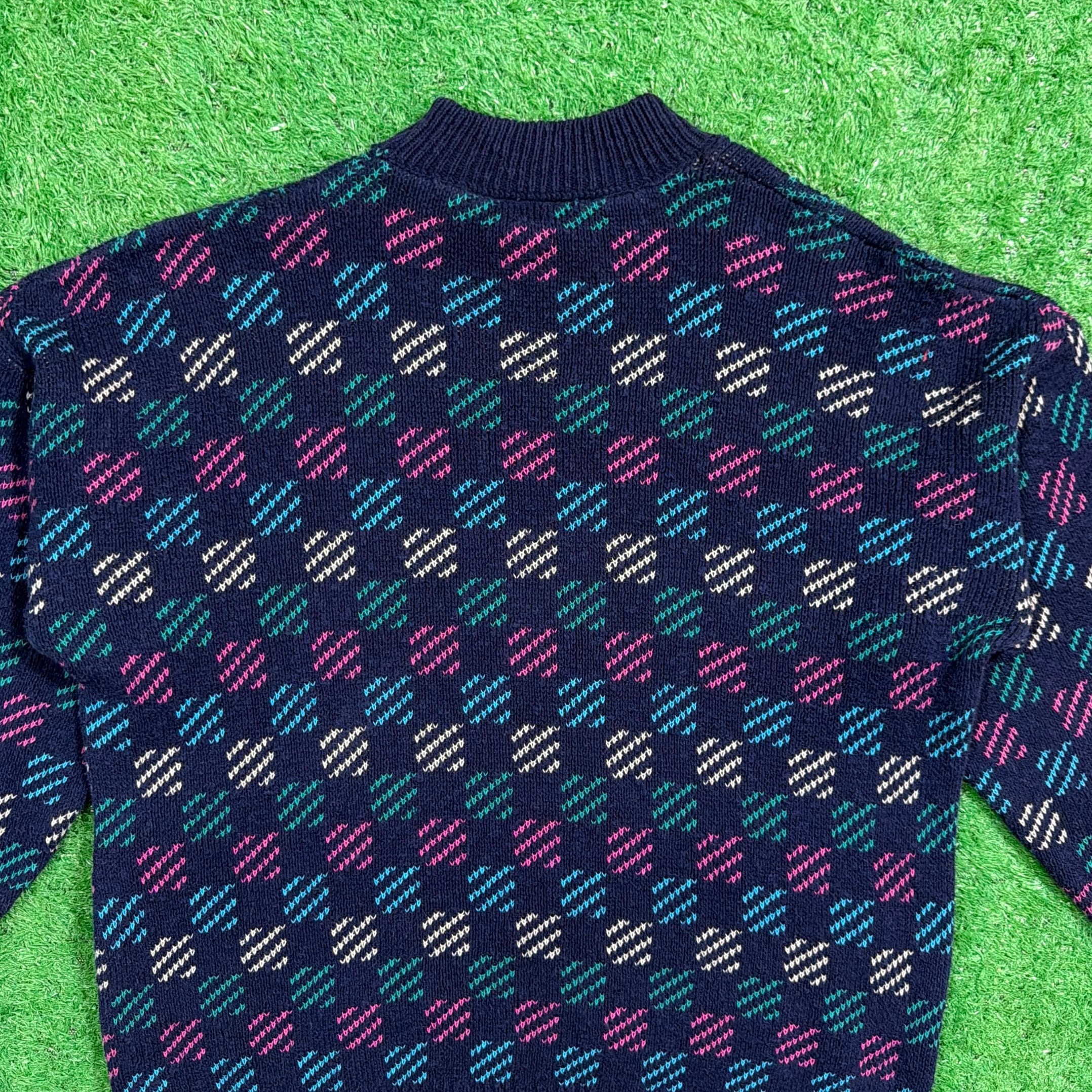 1990年代のアメリカ製、ブロック柄がかわいいコットンニットセーターです。