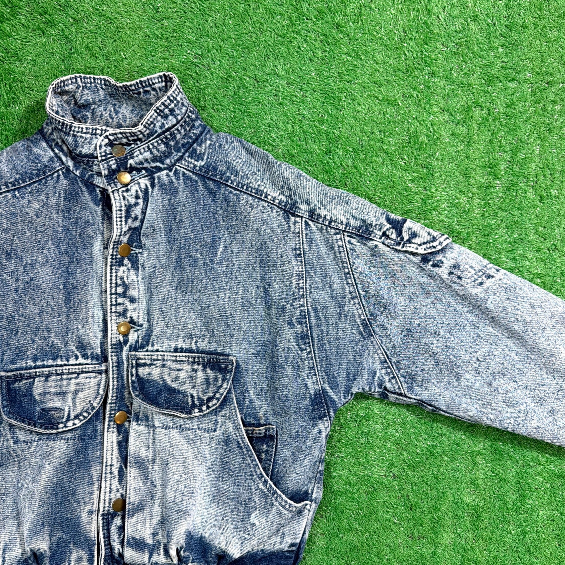 ケミカルウォッシュ加工がとても印象的で、当時らしい存在感のある1着。襟まわりから袖、フロントポケットまでこだわりのディテールが詰まったデザインで、シンプルなコーデにもアクセントとして映えます。
