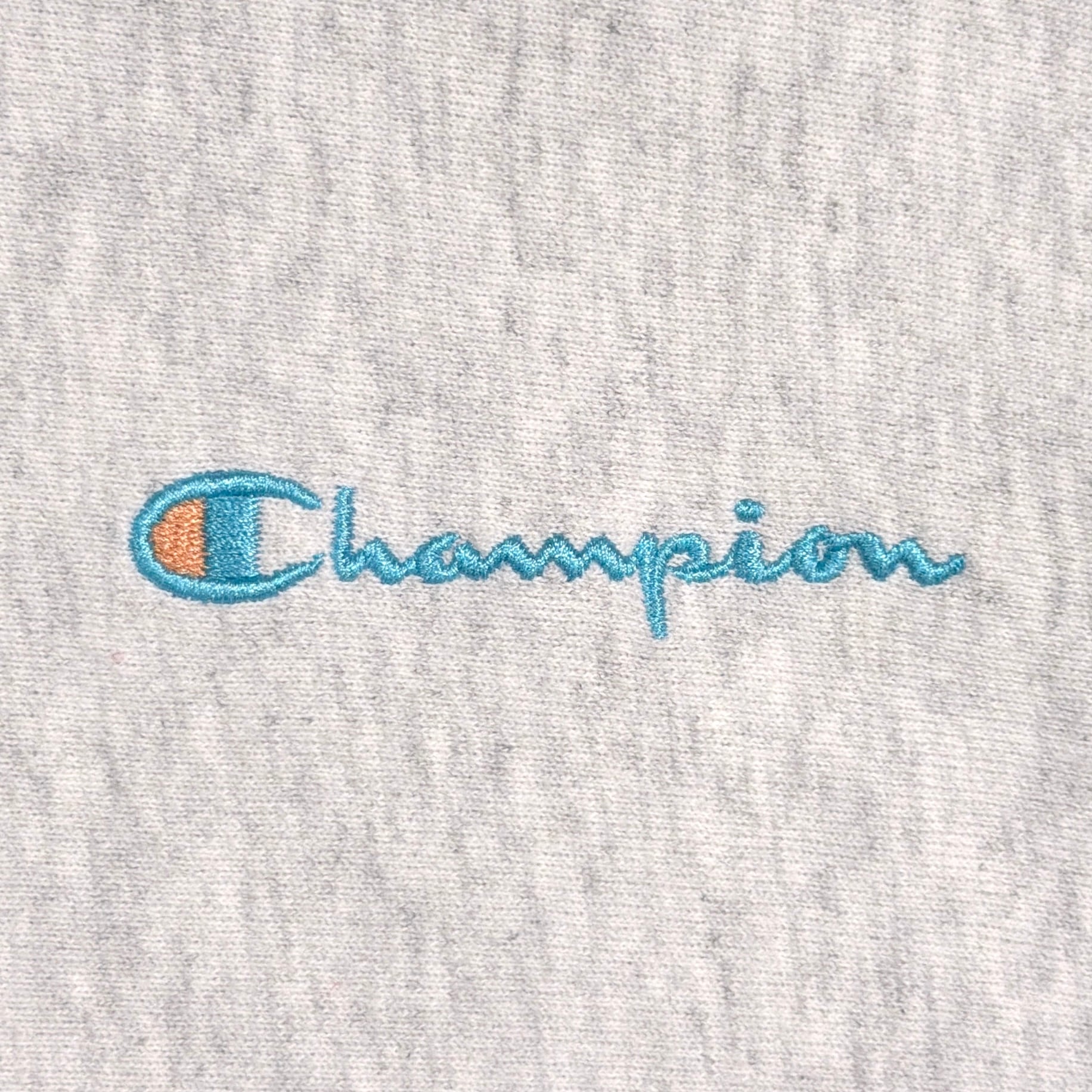 こちらは当時のデザインを再現した復刻モデルで、胸元のロゴ刺繍と袖のCロゴがさりげないアクセントになっています。霜降り感のあるグレーカラーで、カジュアルながらも落ち着いた印象。
