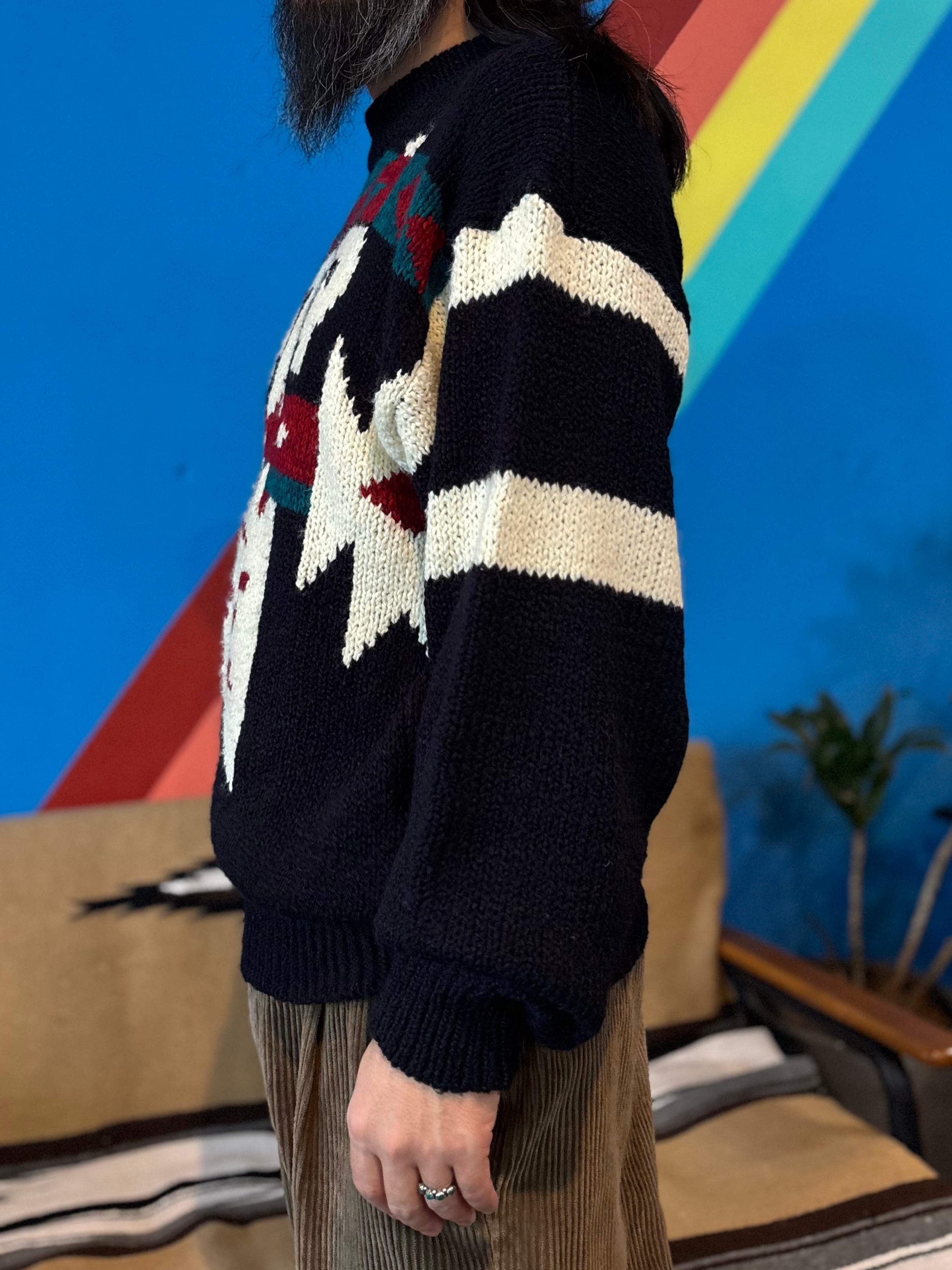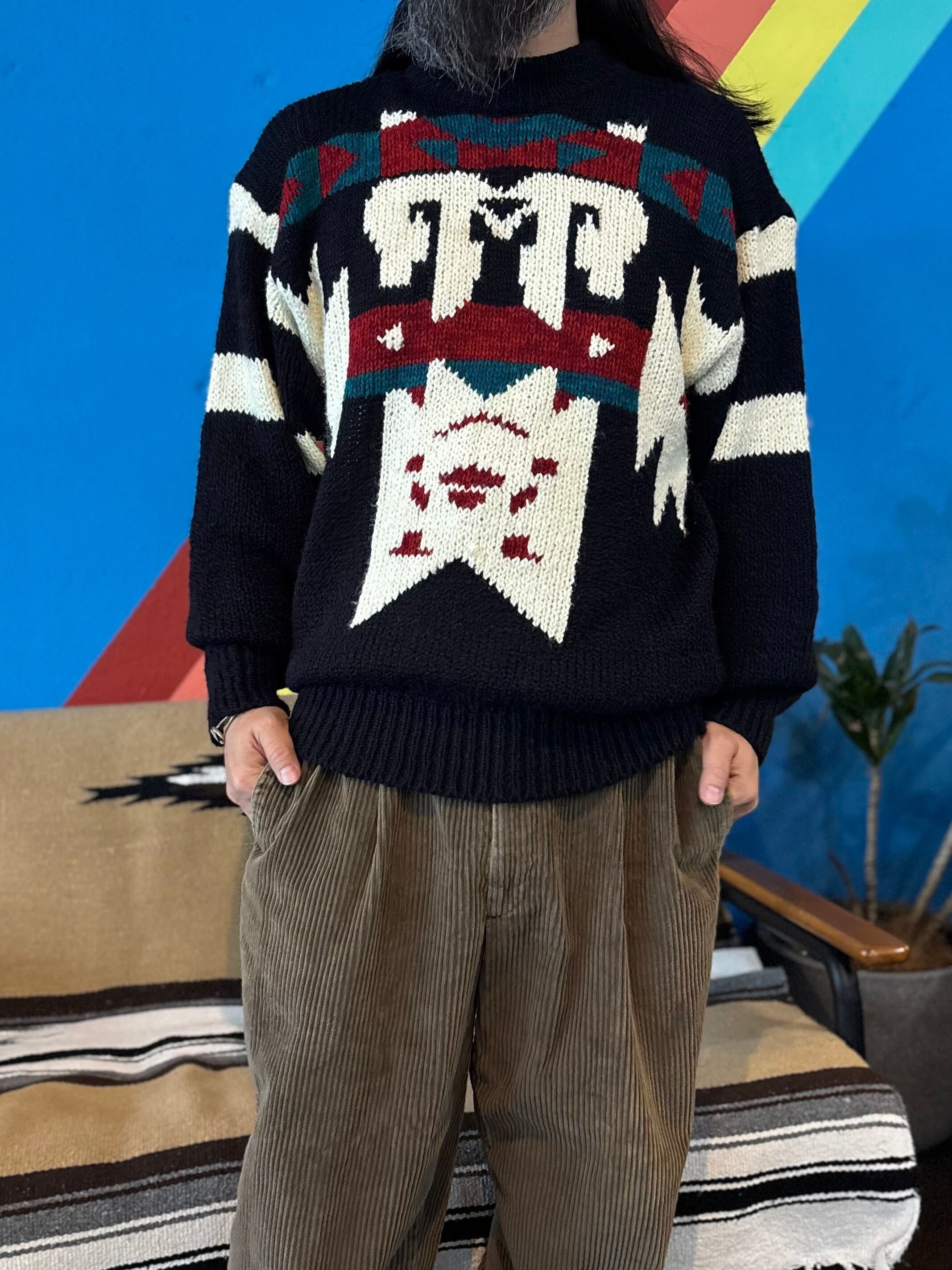 【Men's】 90s ネイティブ柄 アクリル ニット セーター / 90年代 古着 ネイティブアメリカン 黒 ブラック メンズ 1344