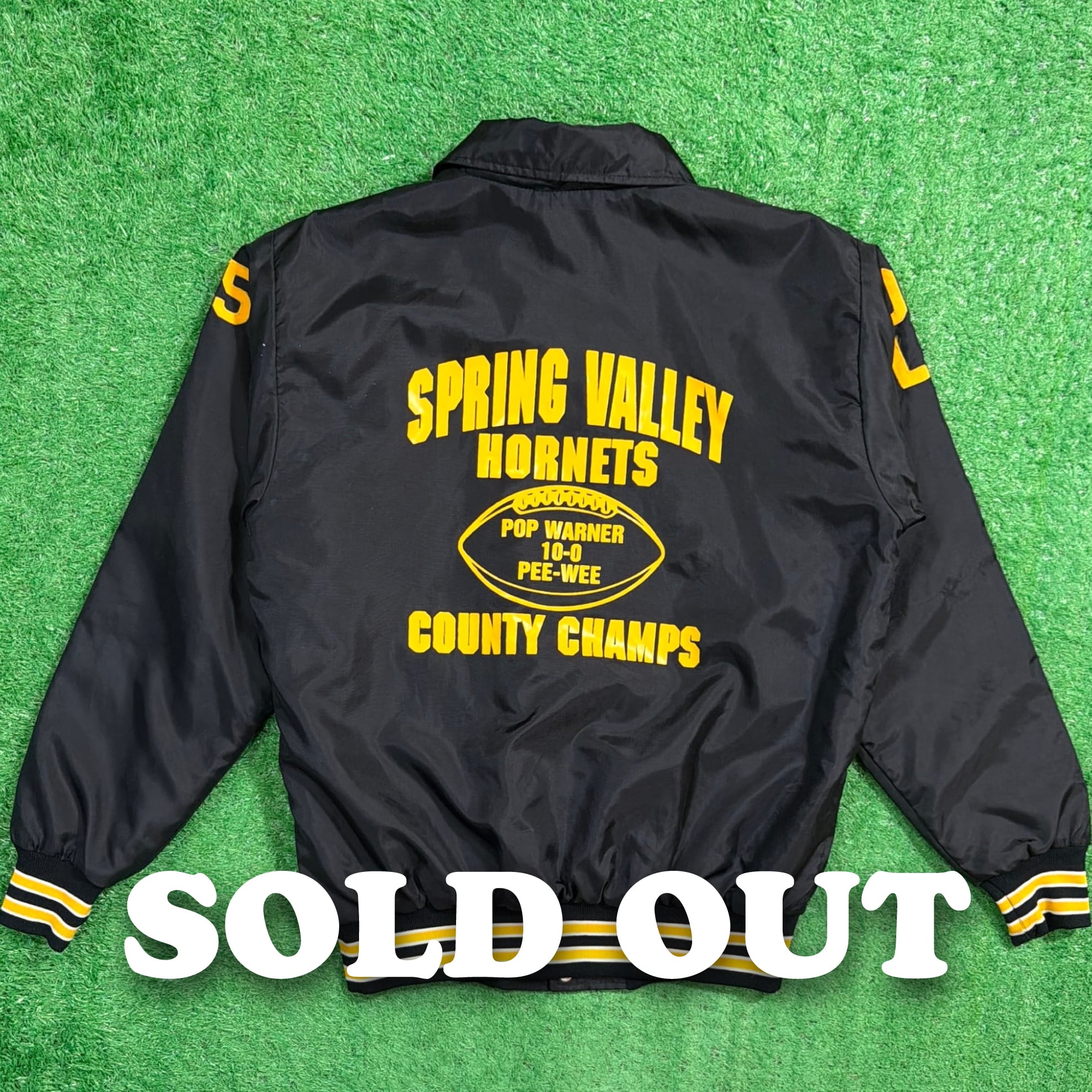 1980年代のアメリカ製、SPRING VALLEY HORNETS(スプリングバレー・ホーネッツ) の中綿入りナイロンスタジャンです。