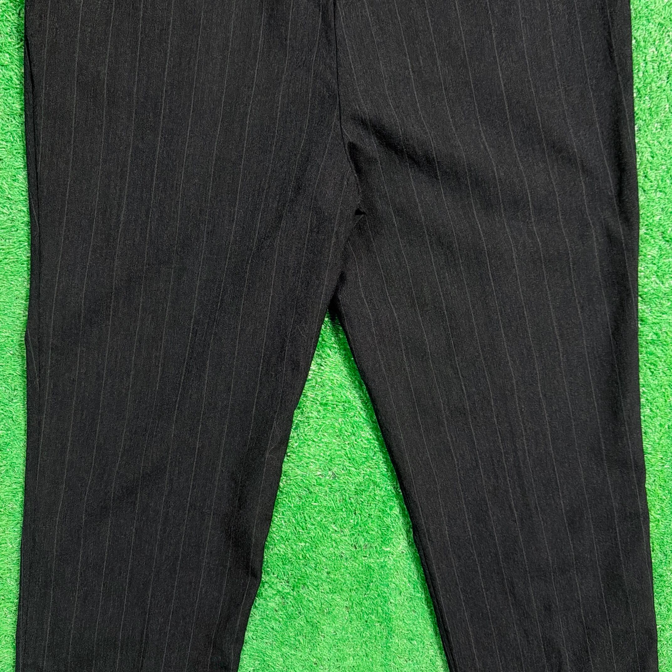 ブラックベースに細かなストライプが入った落ち着いたデザインで、古着らしいクラシックさと大人っぽさを兼ね備えた一本。タック入りのフロントで腰まわりにゆとりがあり、リラックス感のある穿き心地も魅力。