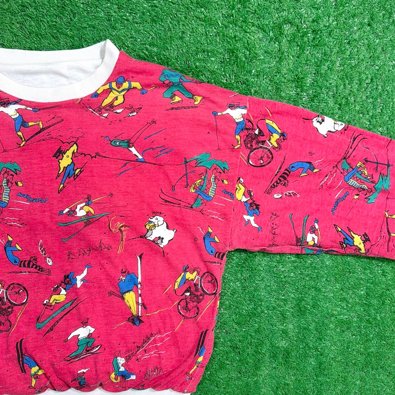 表面はポップで遊び心のある総柄デザイン、裏面はイラストが映えるシンプルなスウェットデザインになっており、1着でまったく異なる雰囲気を楽しめるアイテムです。