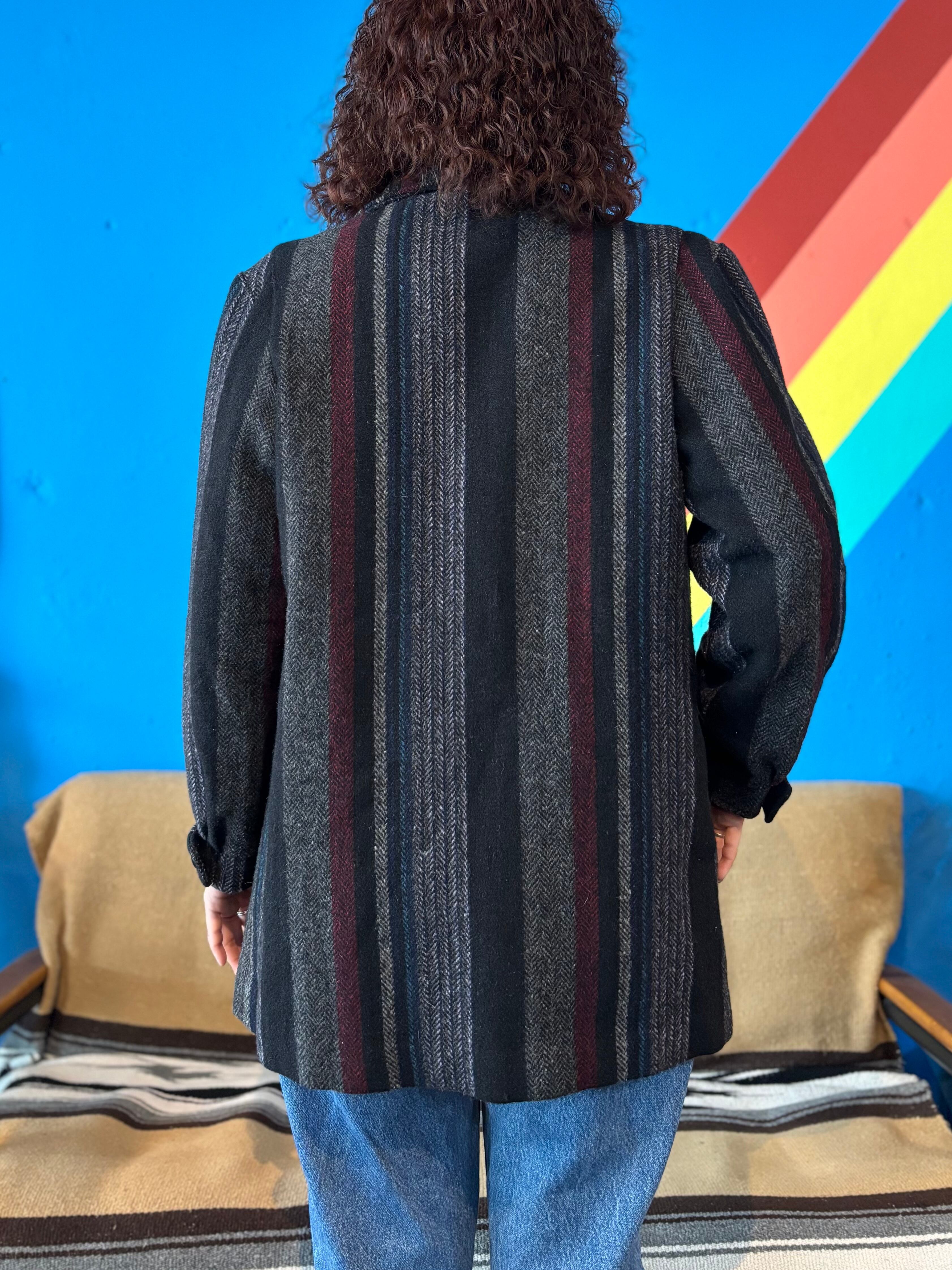 【Lady's】 80s - 90s ストライプ コート / 80年代 90年代 ジャケット アウター レディース 古着 1380