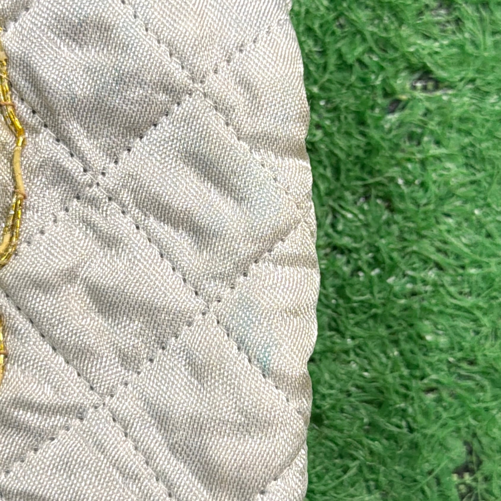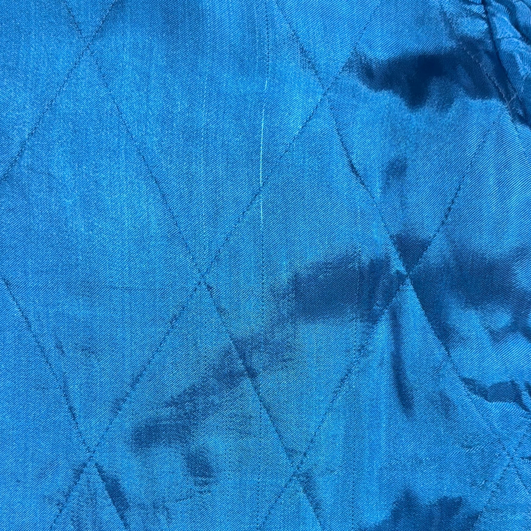 光沢のあるブルーボディに、中綿入りのキルティング仕様。