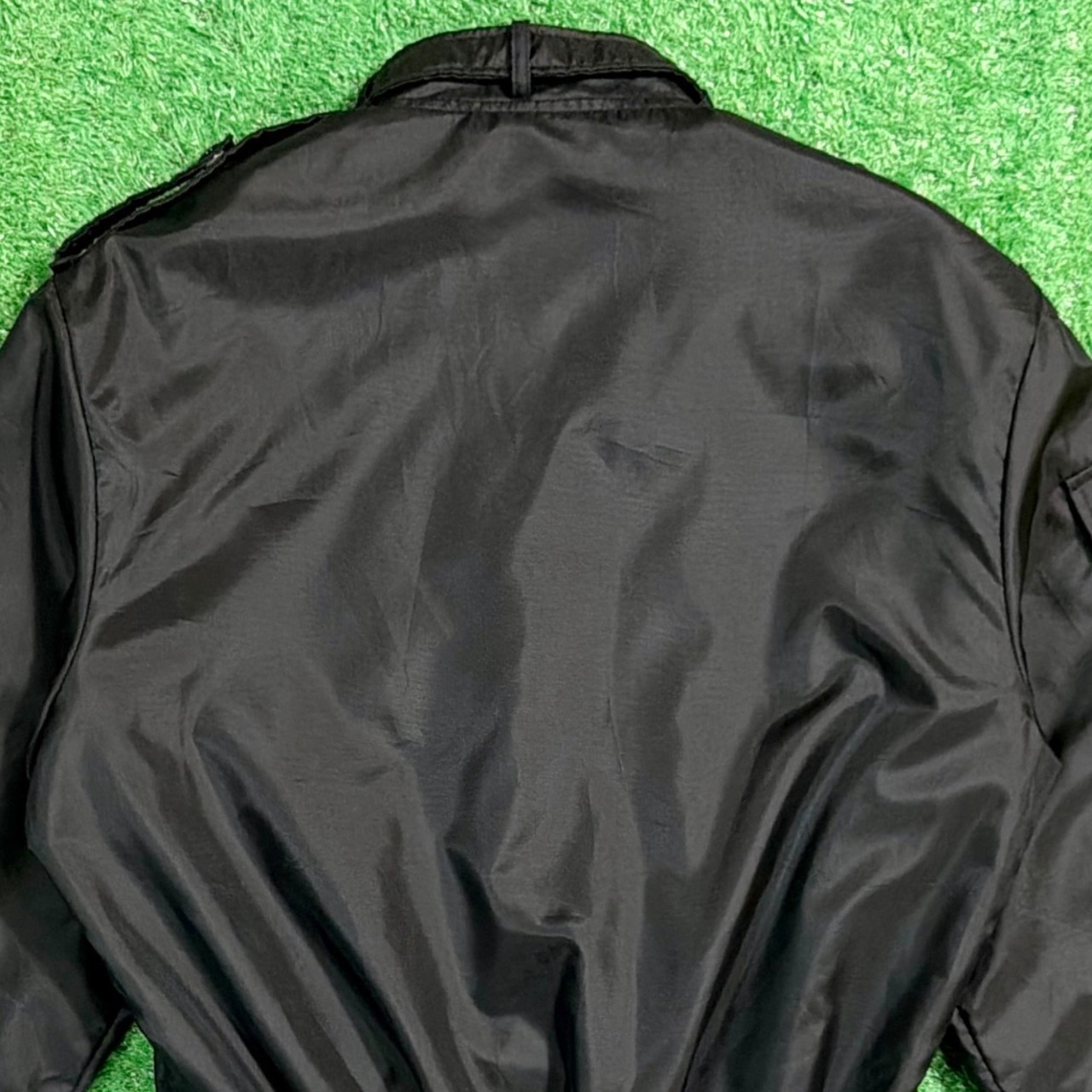 レーシングチームやカーイベント系のジャケットに見られる、スタンドカラー仕様と、丸みのあるシルエットが80sらしい雰囲気を感じさせます。
