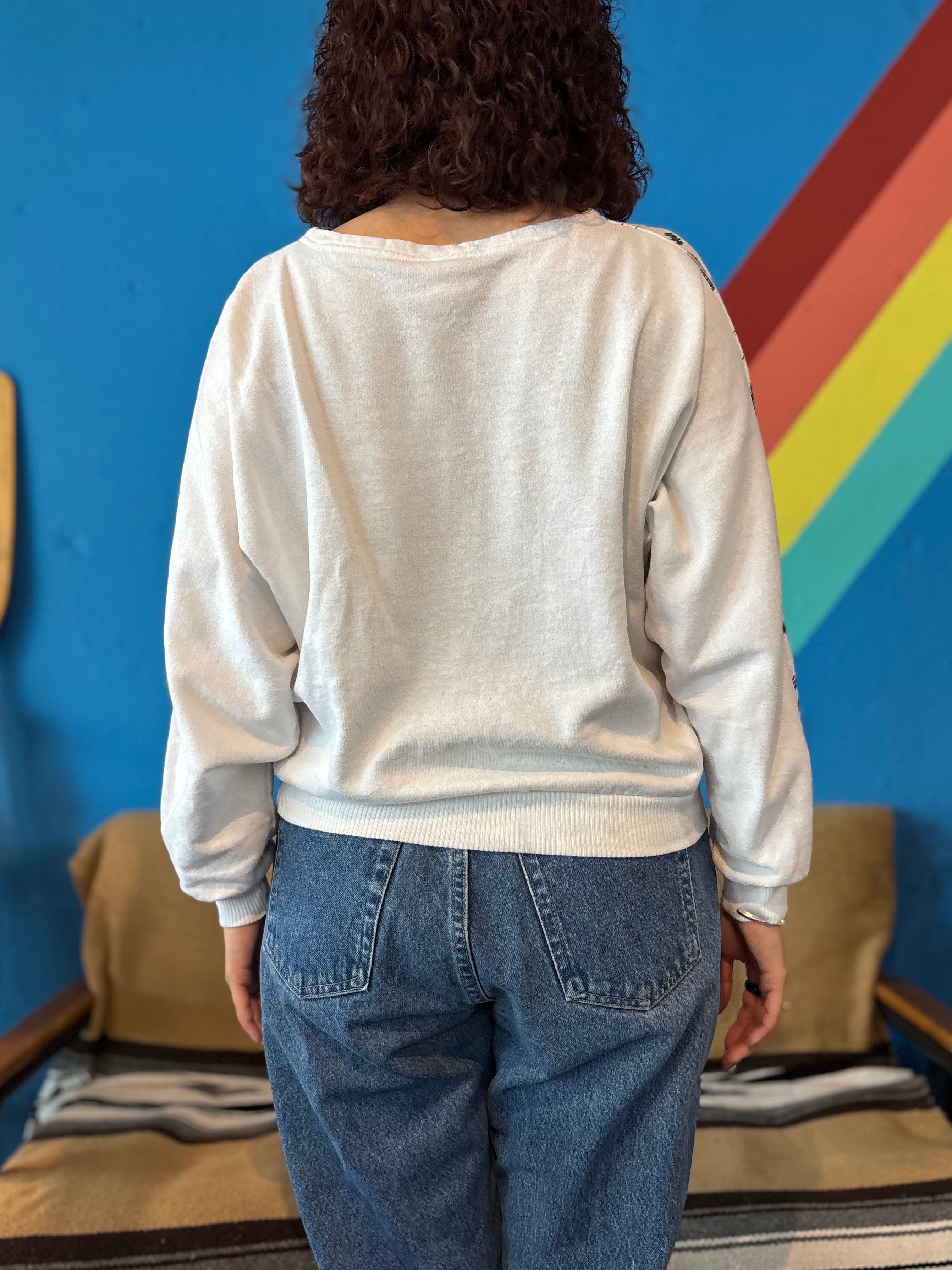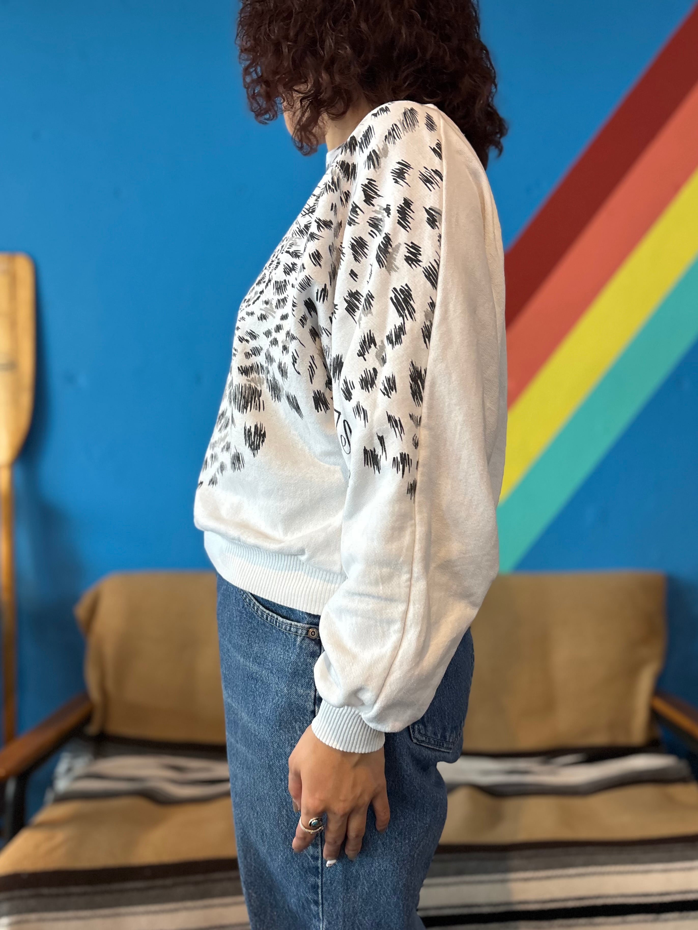 【Lady's】80s ヒョウ レオパード アニマル スウェット / 80年代 古着 白 ホワイト 1394