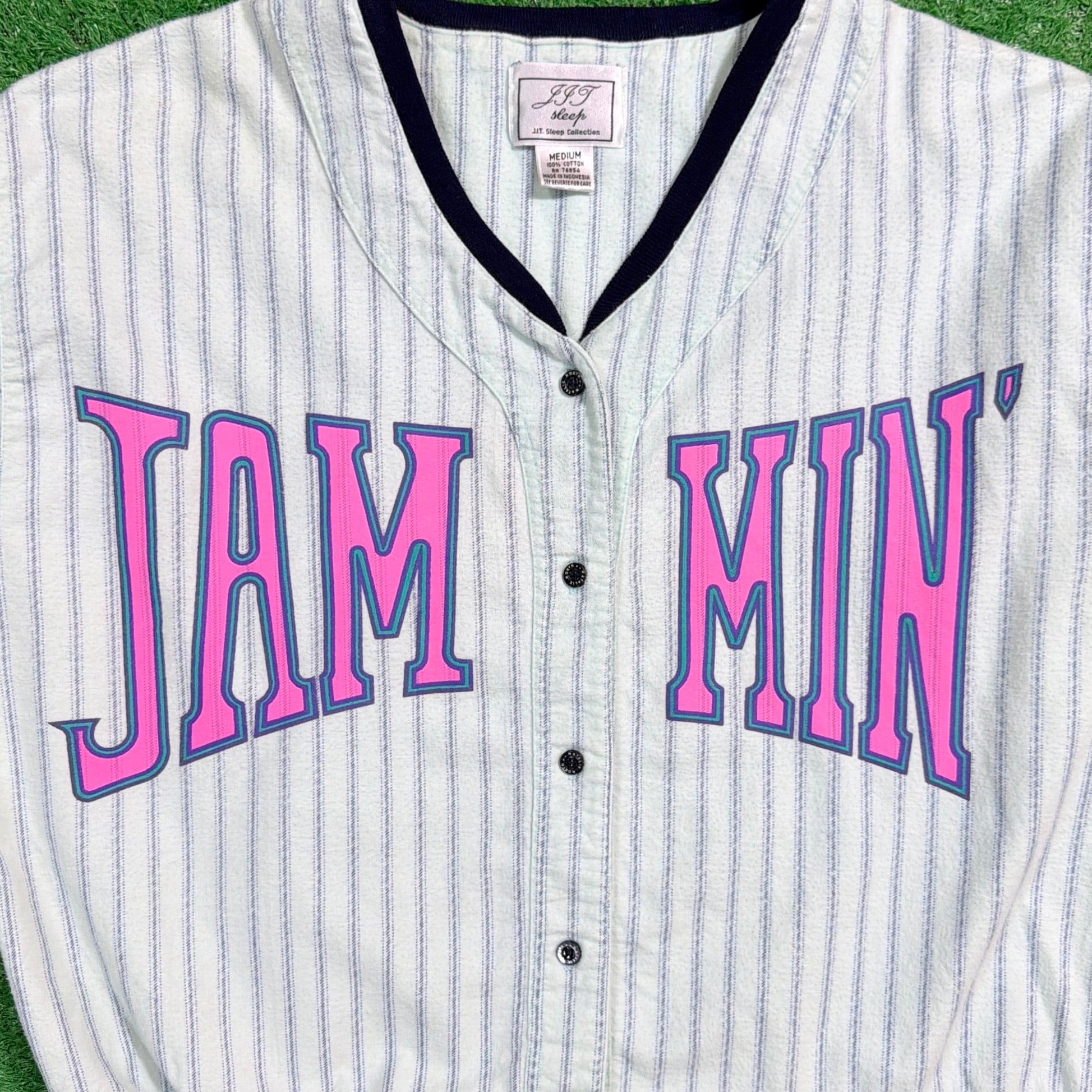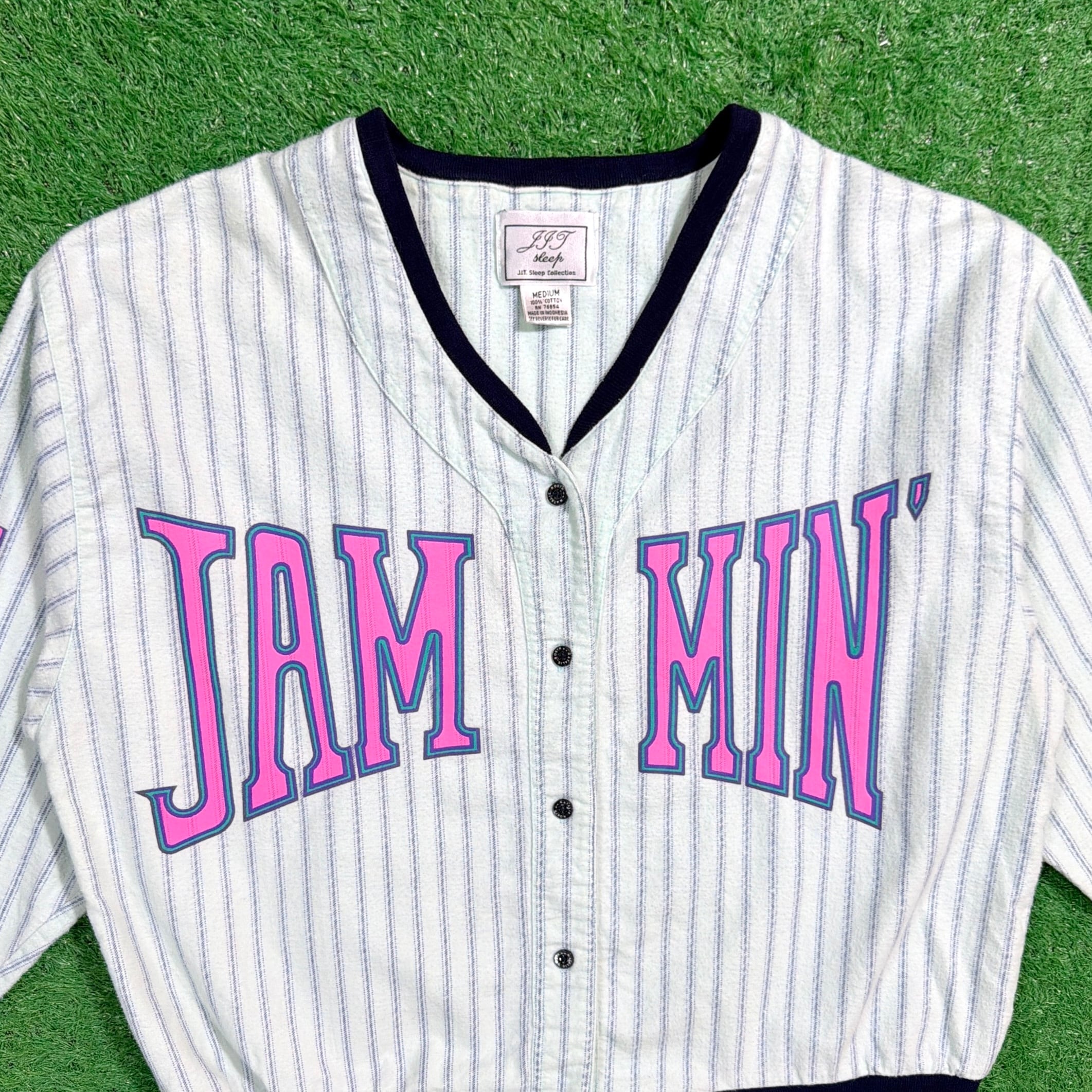 【Lady's】 90s ベースボール シャツ 風 トップス / Made In INDONESIA 古着 90年代 ポップ プリント 1403