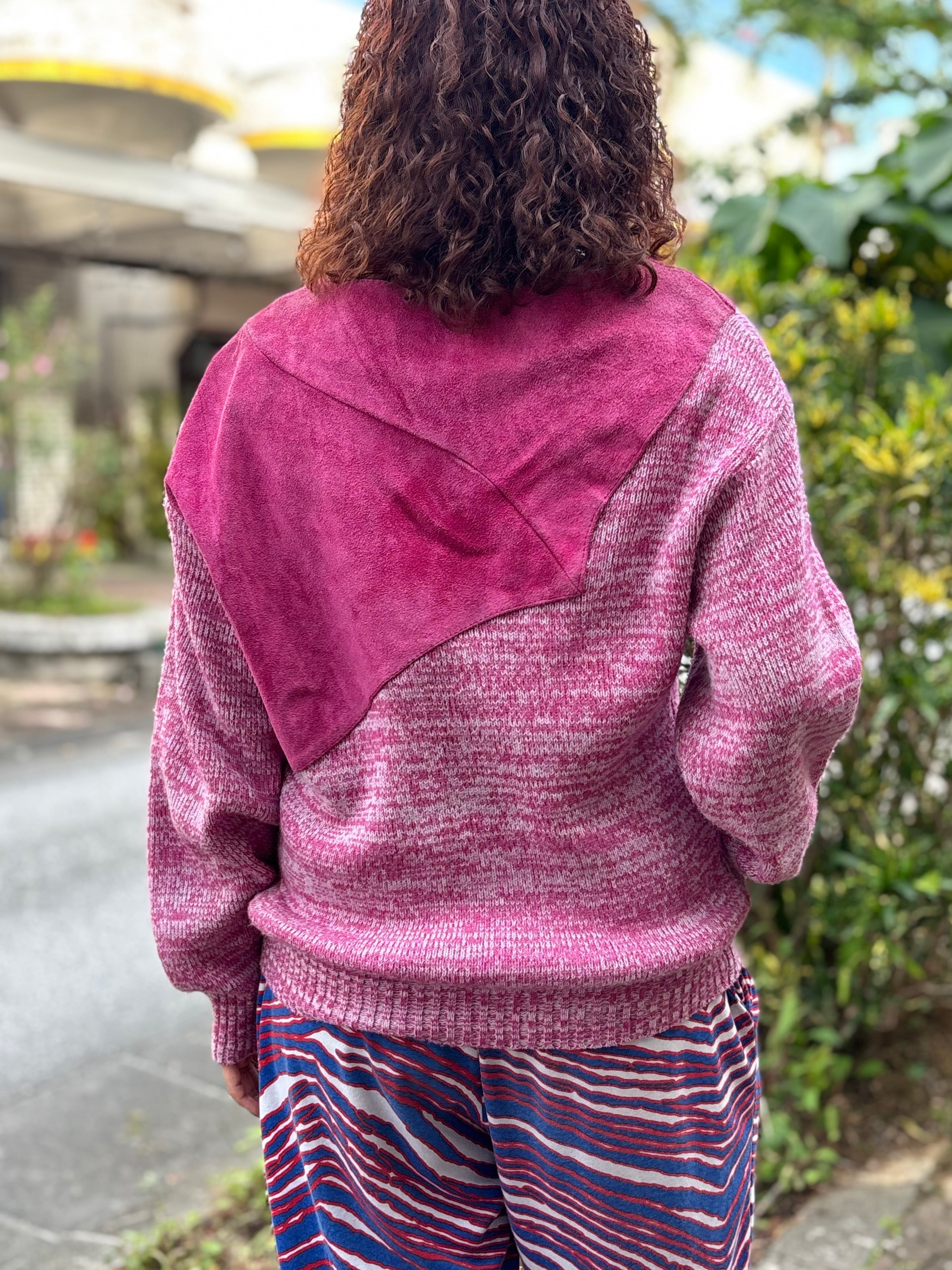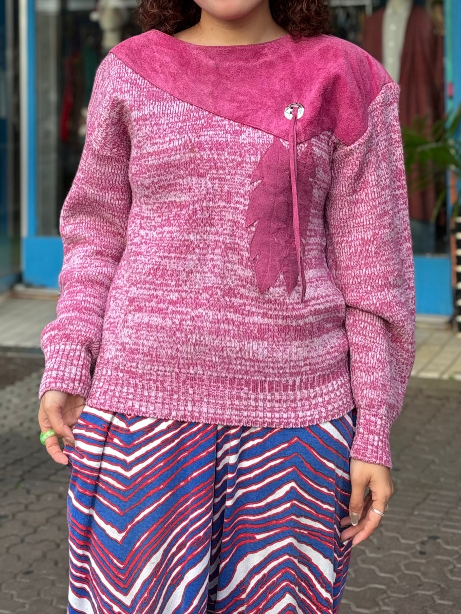 1980年代頃のピンクカラーが印象的なレザー切り替えニットです。