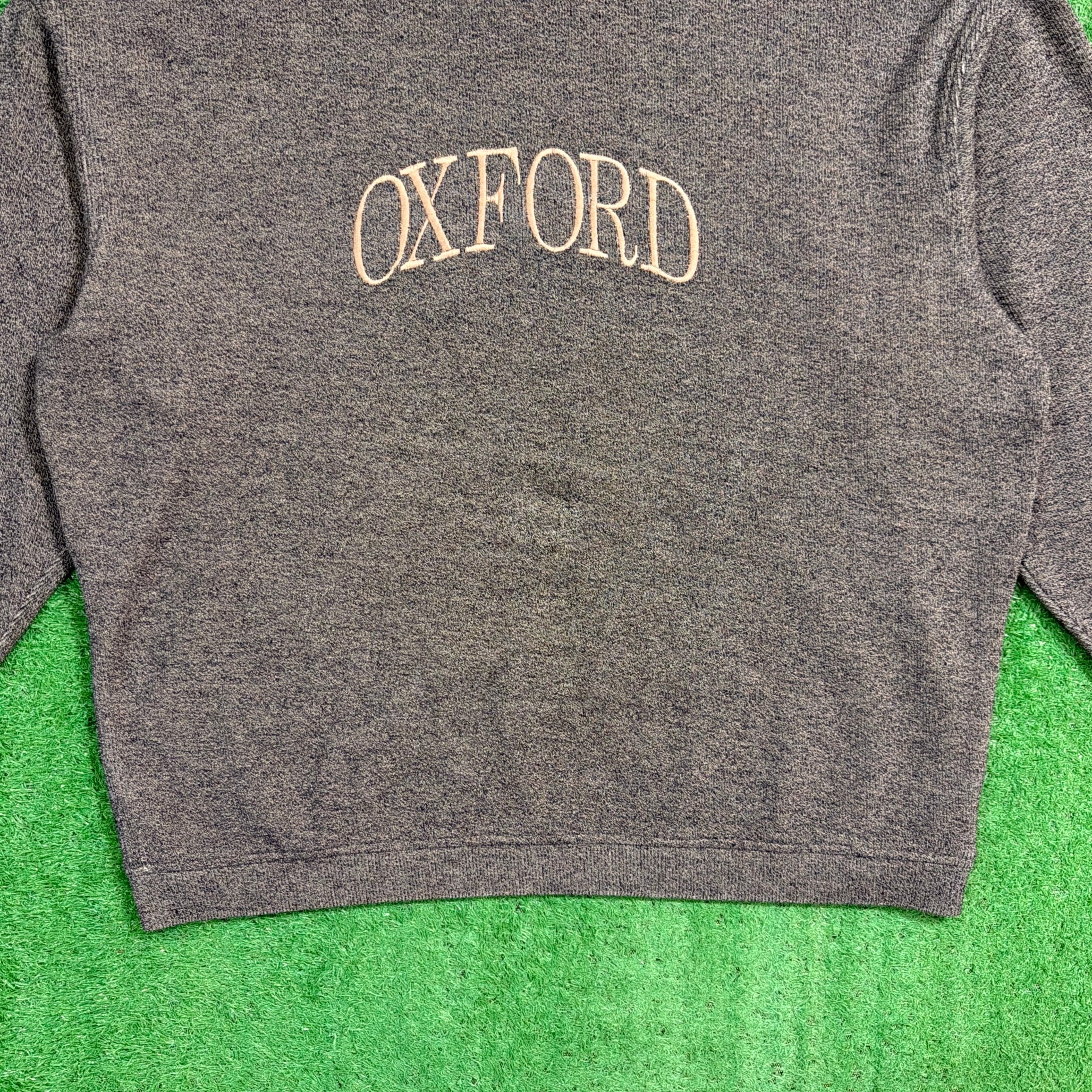 【Men's】90s OXFORD ロゴ 刺繍 ニット風 スウェット / 古着 90年代 グレー トップス 1405