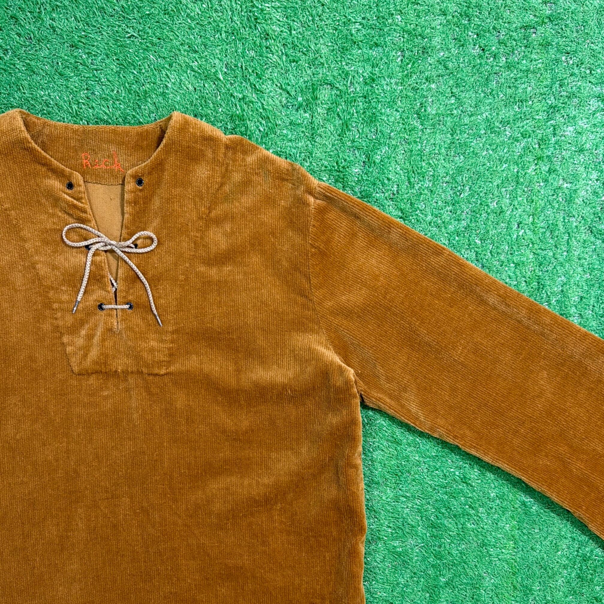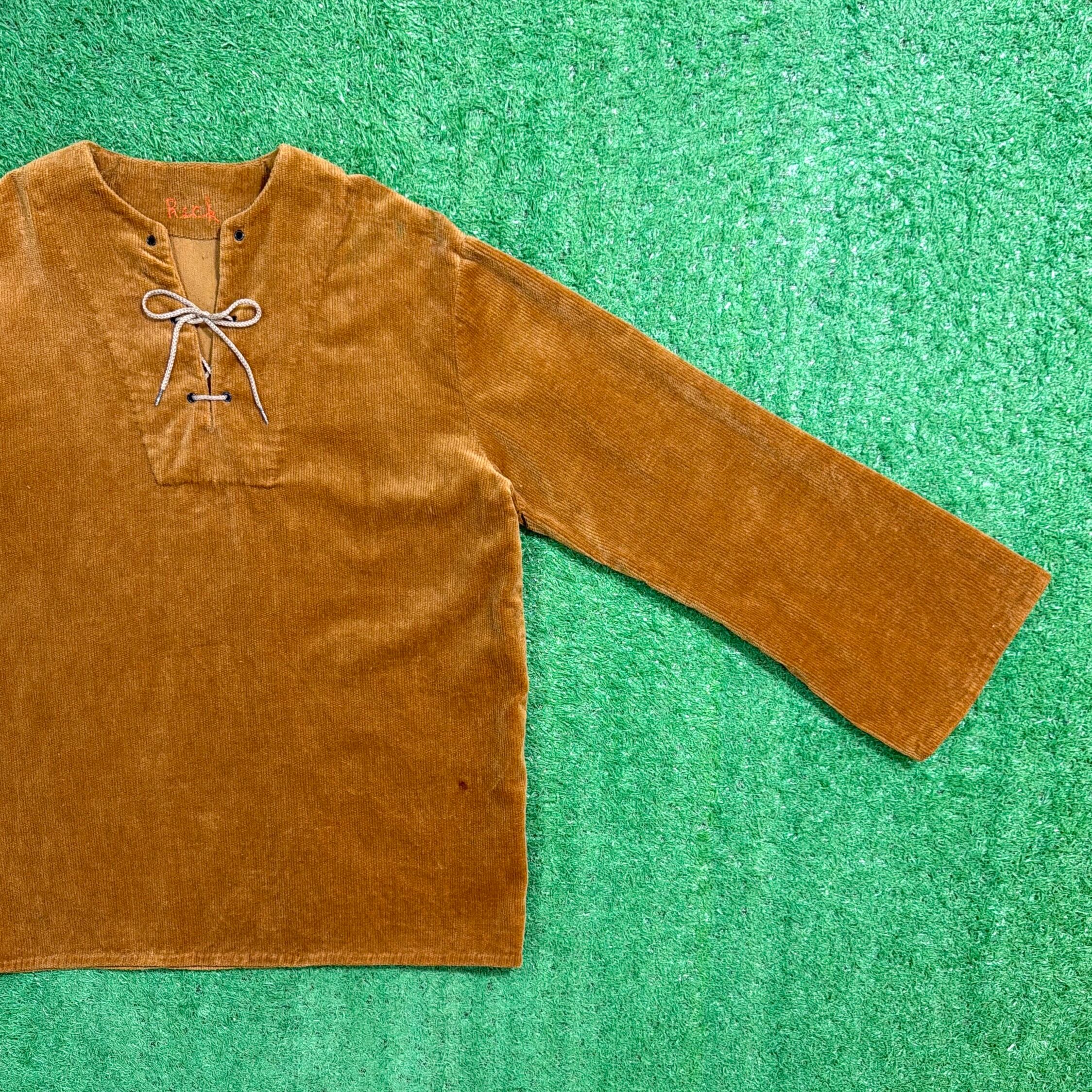 【Lady's】 フレアスリーブ レースアップ コーデュロイトップス / 古着 カントリー ヒッピー ウエスタン レディース 1407