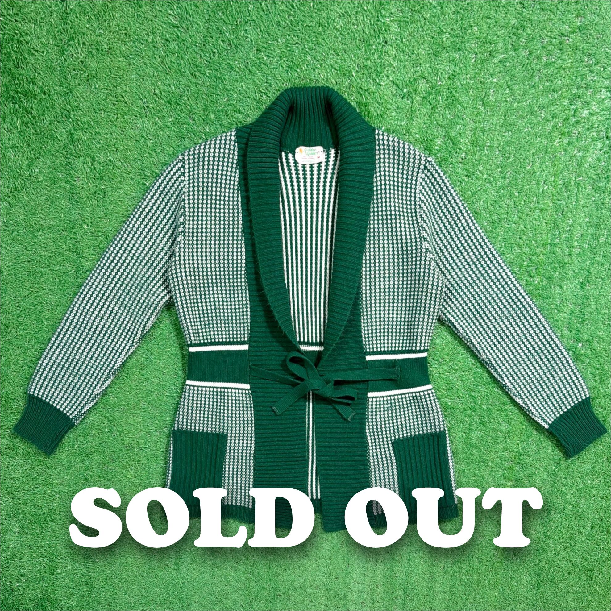 【Lady's】70s-80s ハニカム 編み ワッフル 羽織 グリーン ニット カーディガン / Made In CANADA 古着 緑 1411