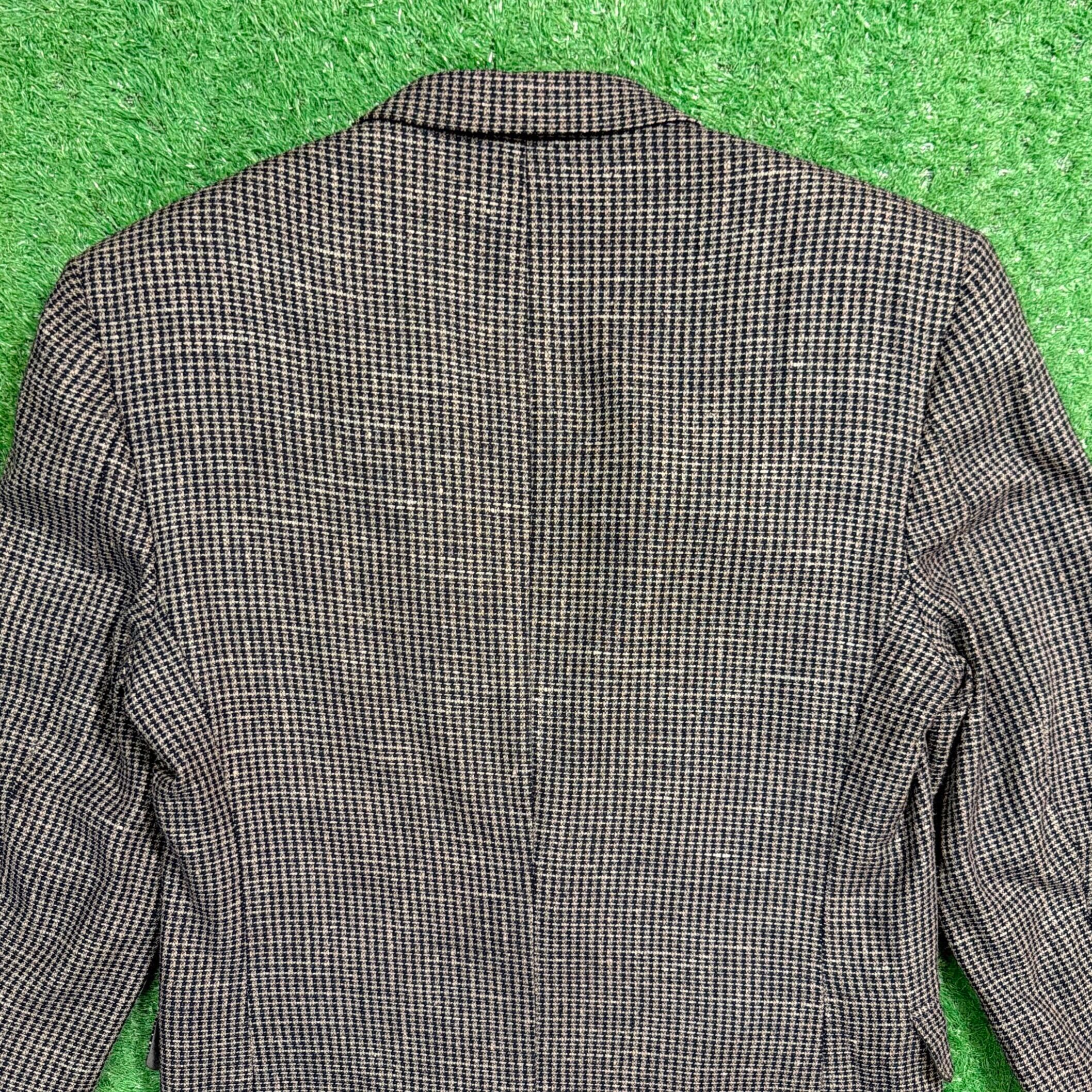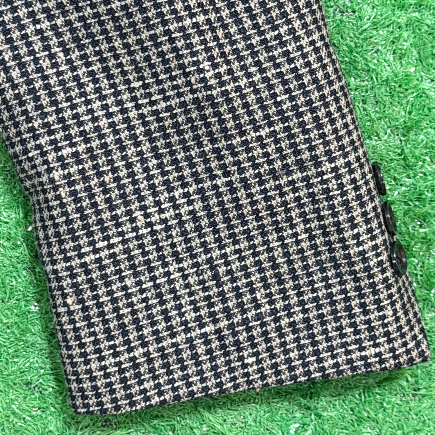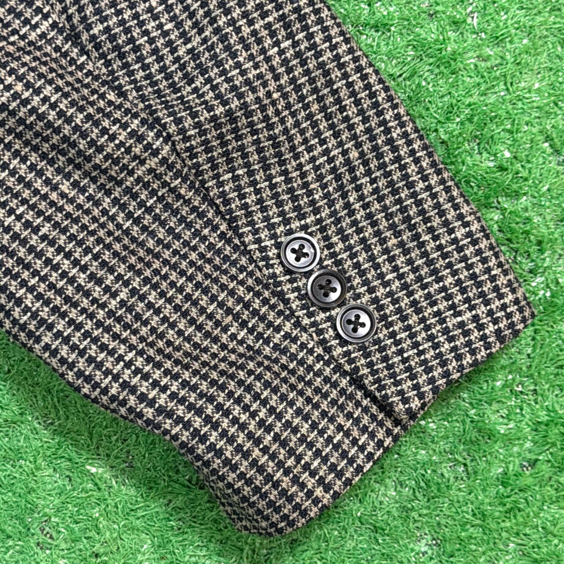 細かな千鳥格子(ハウンドトゥース)柄の織り生地を使用しており、主張しすぎない柄感ながら、近くで見ると表情のある仕上がり。90sらしい程よくリラックスしたシルエットで、カチッとしすぎない雰囲気も魅力です。