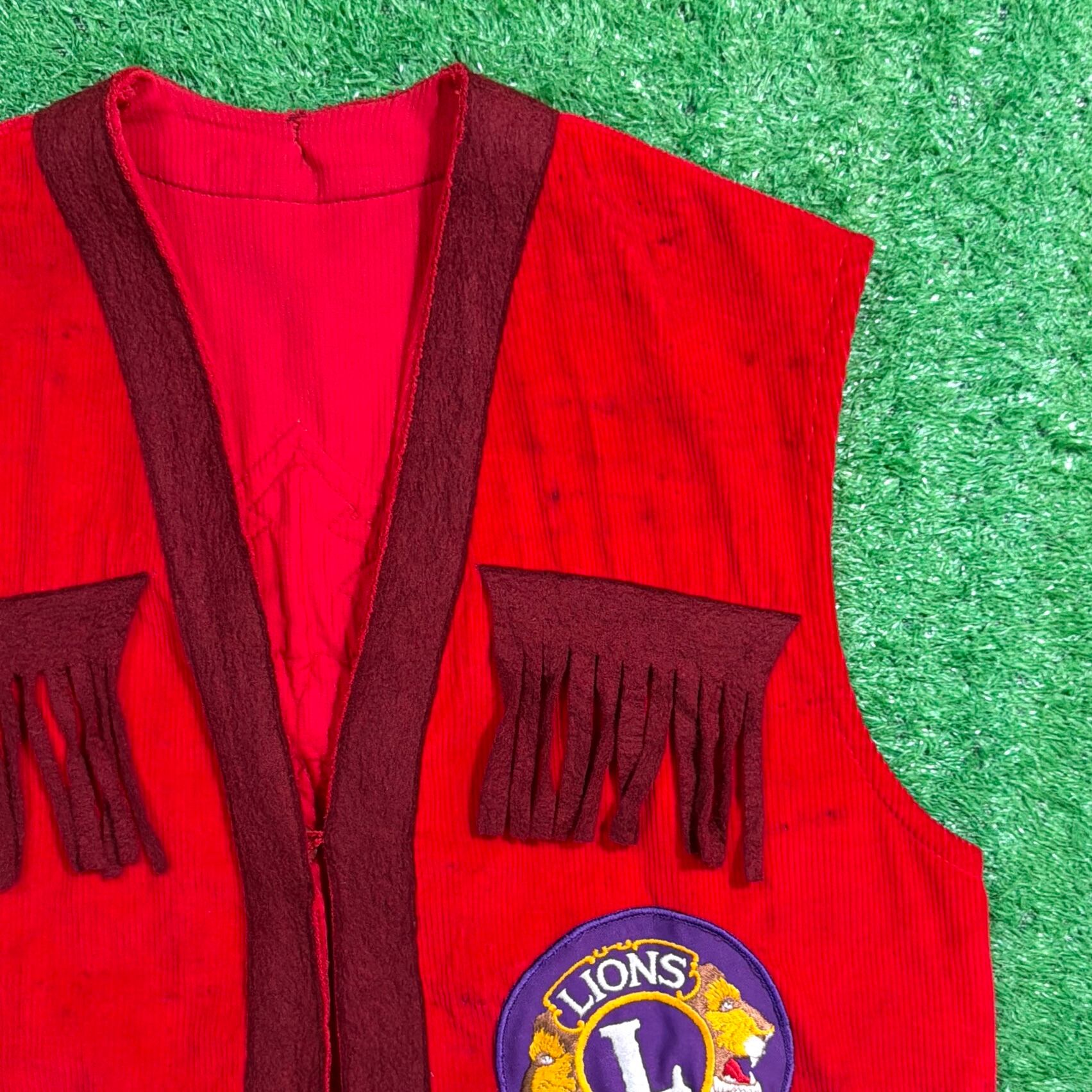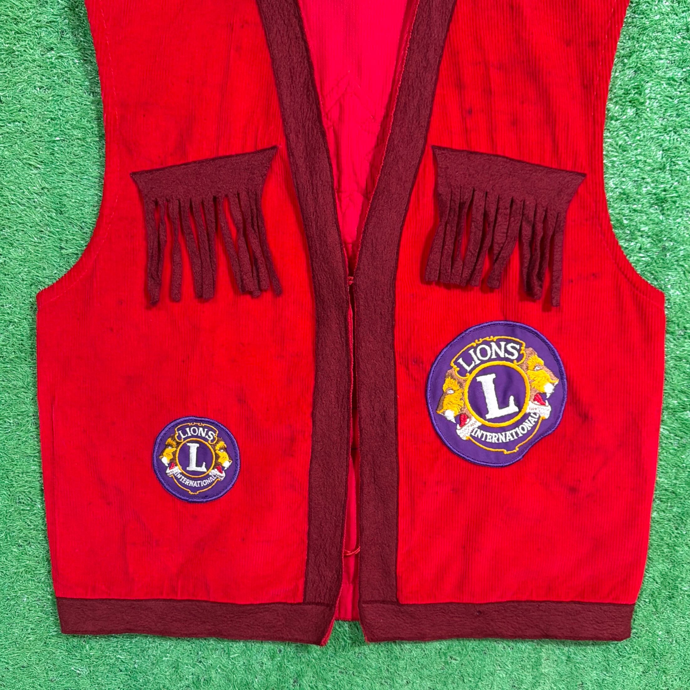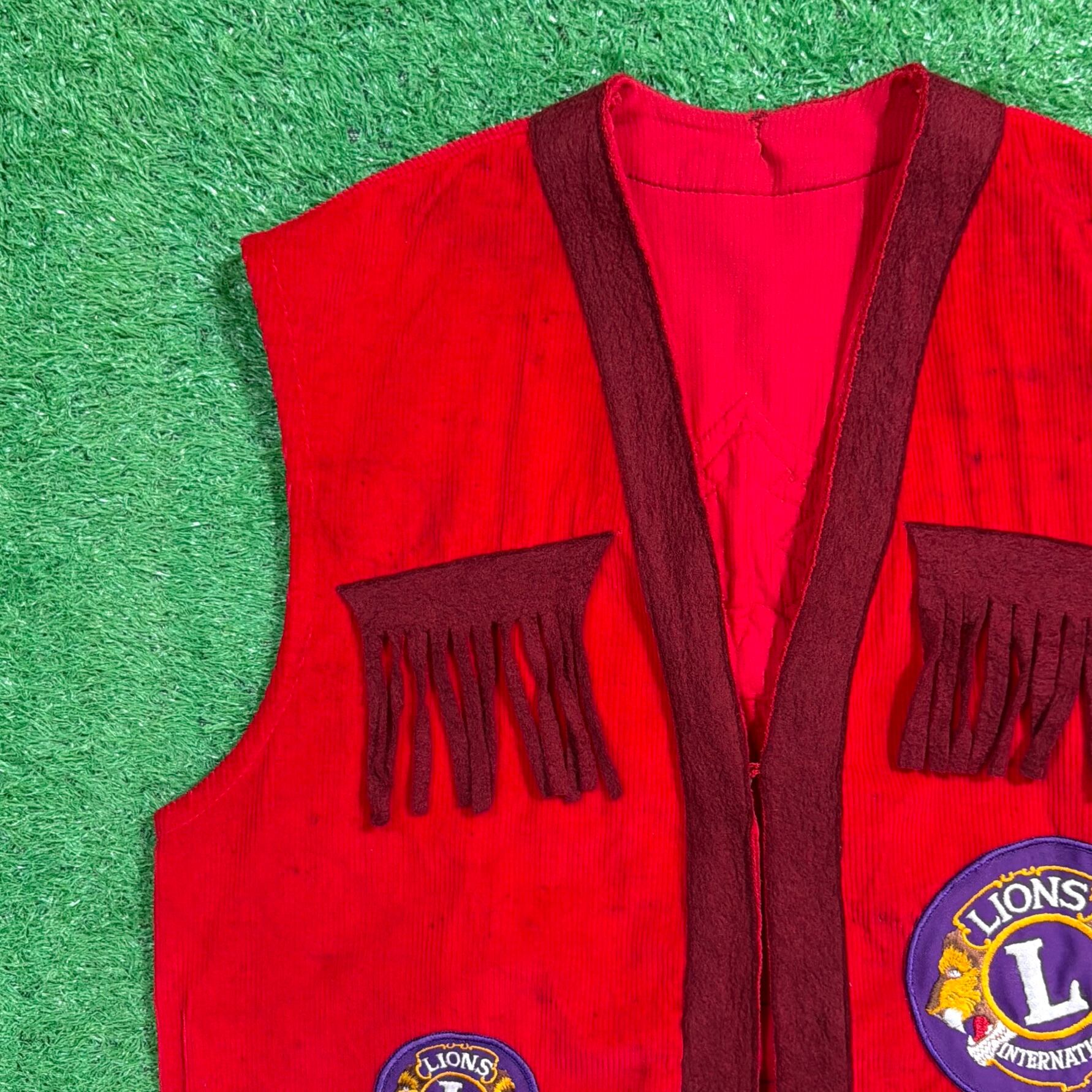 【Men's】 70s LIONS CLUB ワッペン付き コーデュロイ ベスト / 古着 70年代 メンズ 赤 レッド 1417