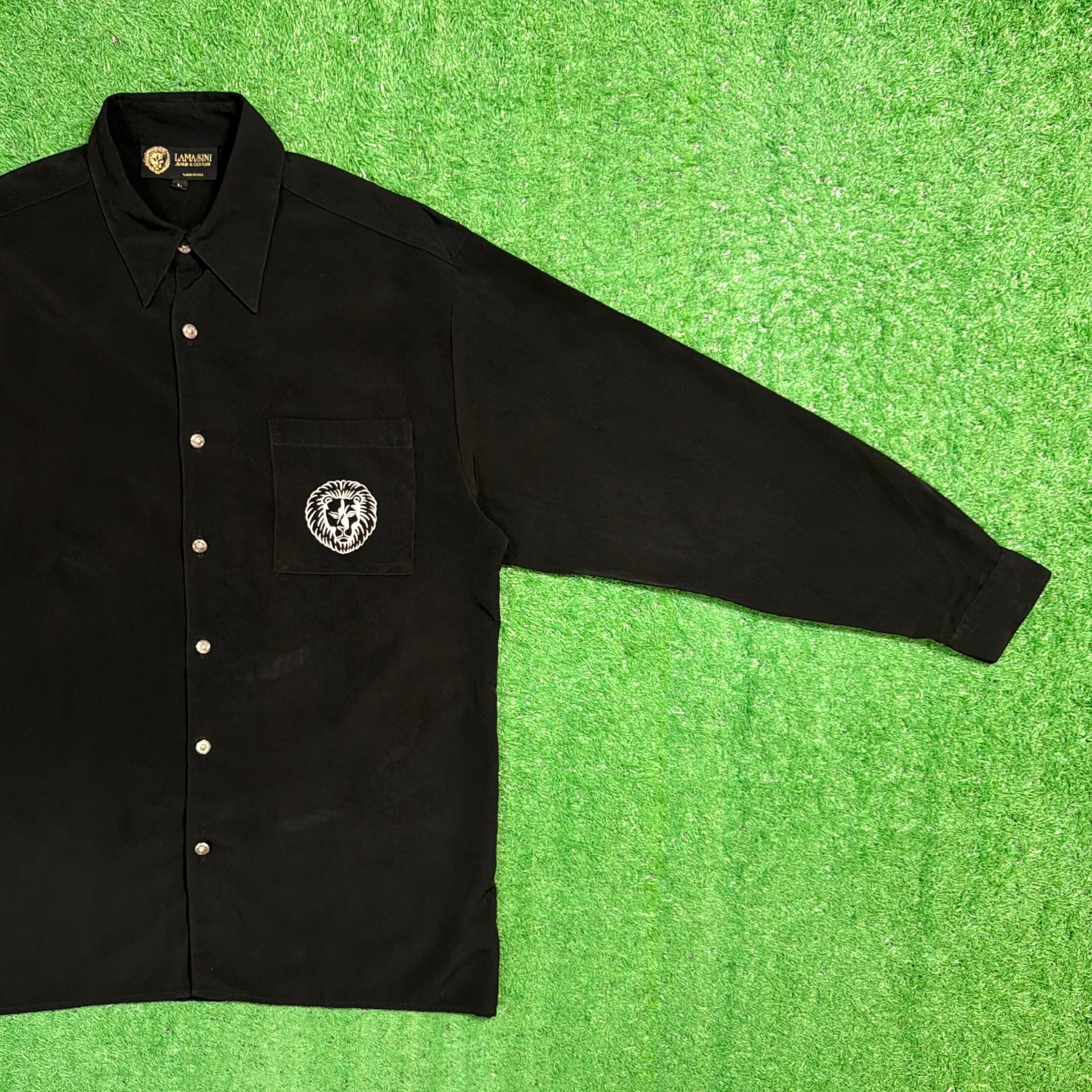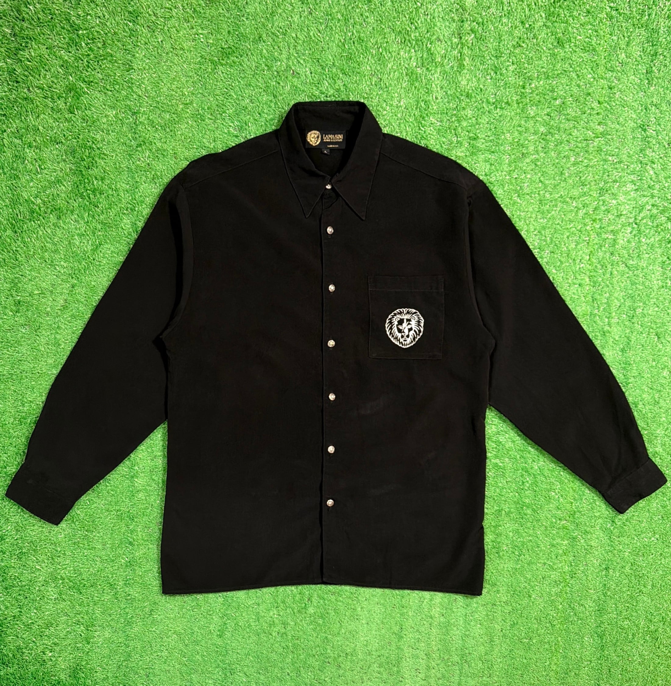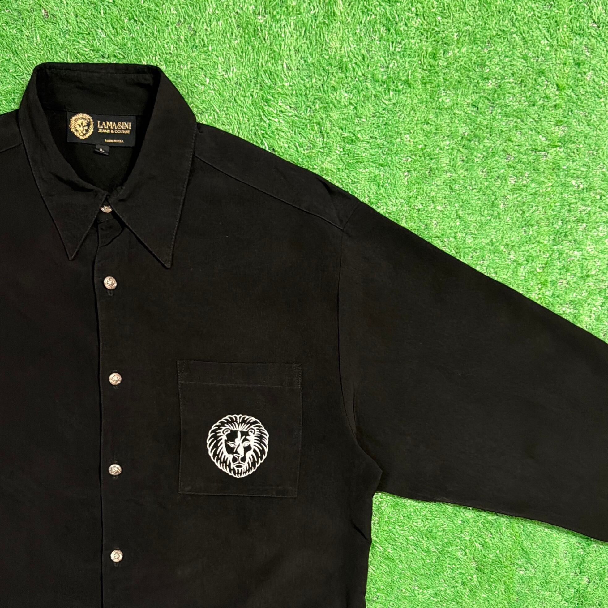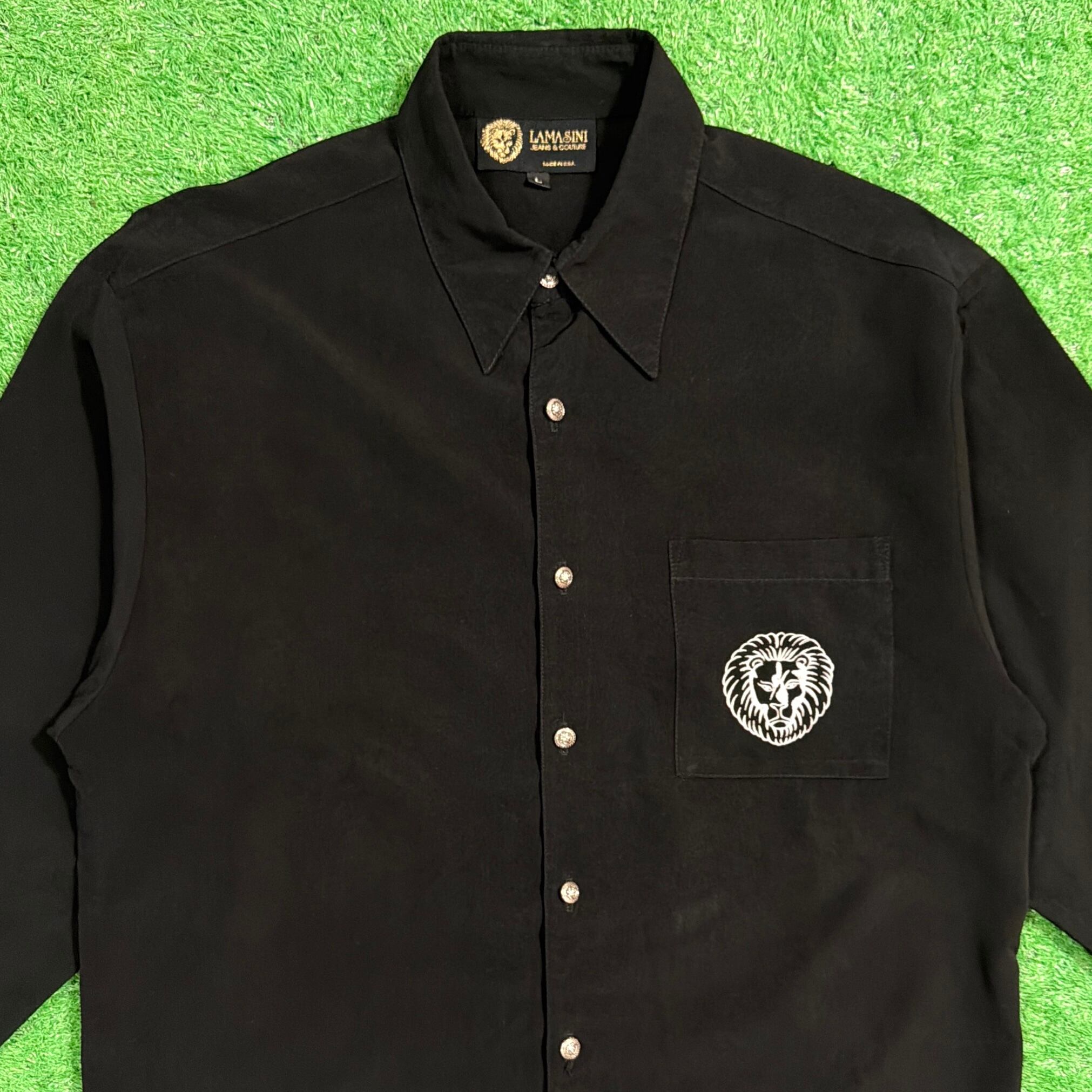 【Men's】 90s LAMASINI 刺繍入り シャツ / アメリカ製 USA製 90年代 古着 黒 ブラック メンズ 1419