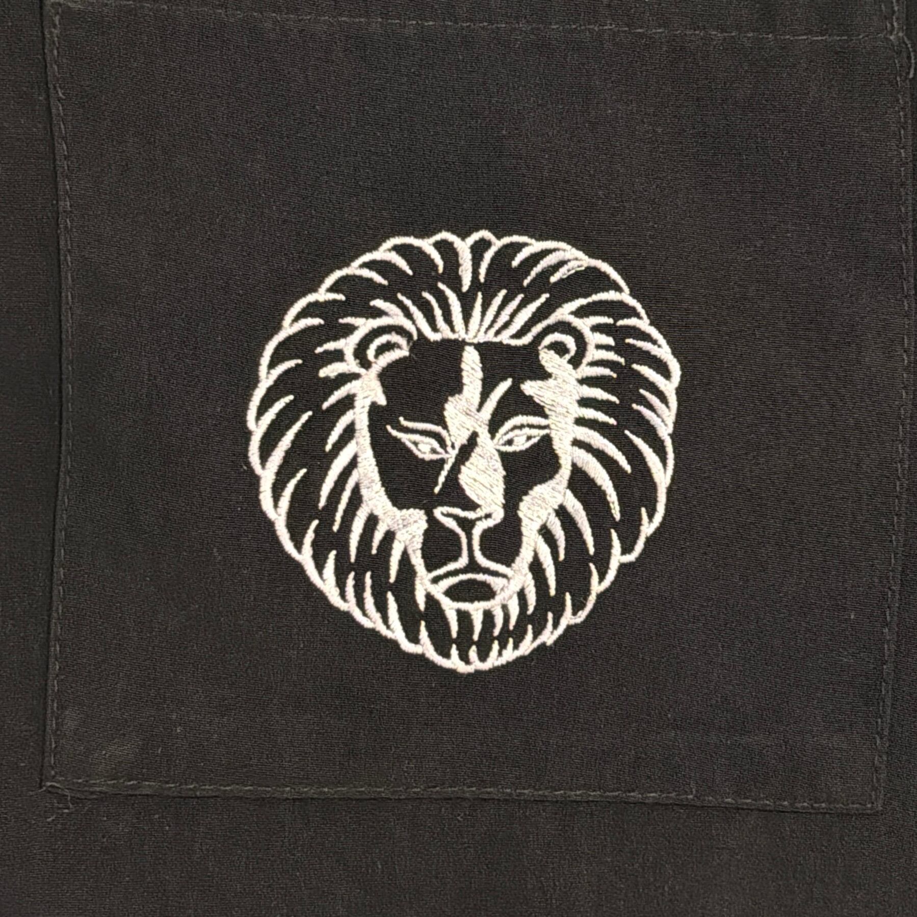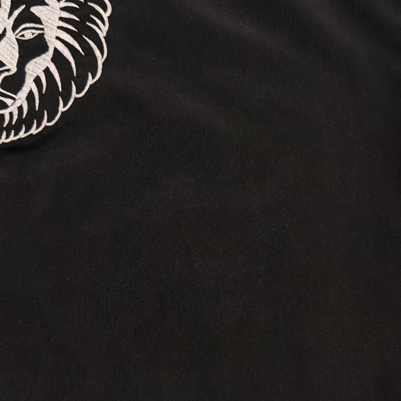 フロントとバックに配されたライオンモチーフはブランドロゴで、存在感がありつつもブラックベースで落ち着いた印象。