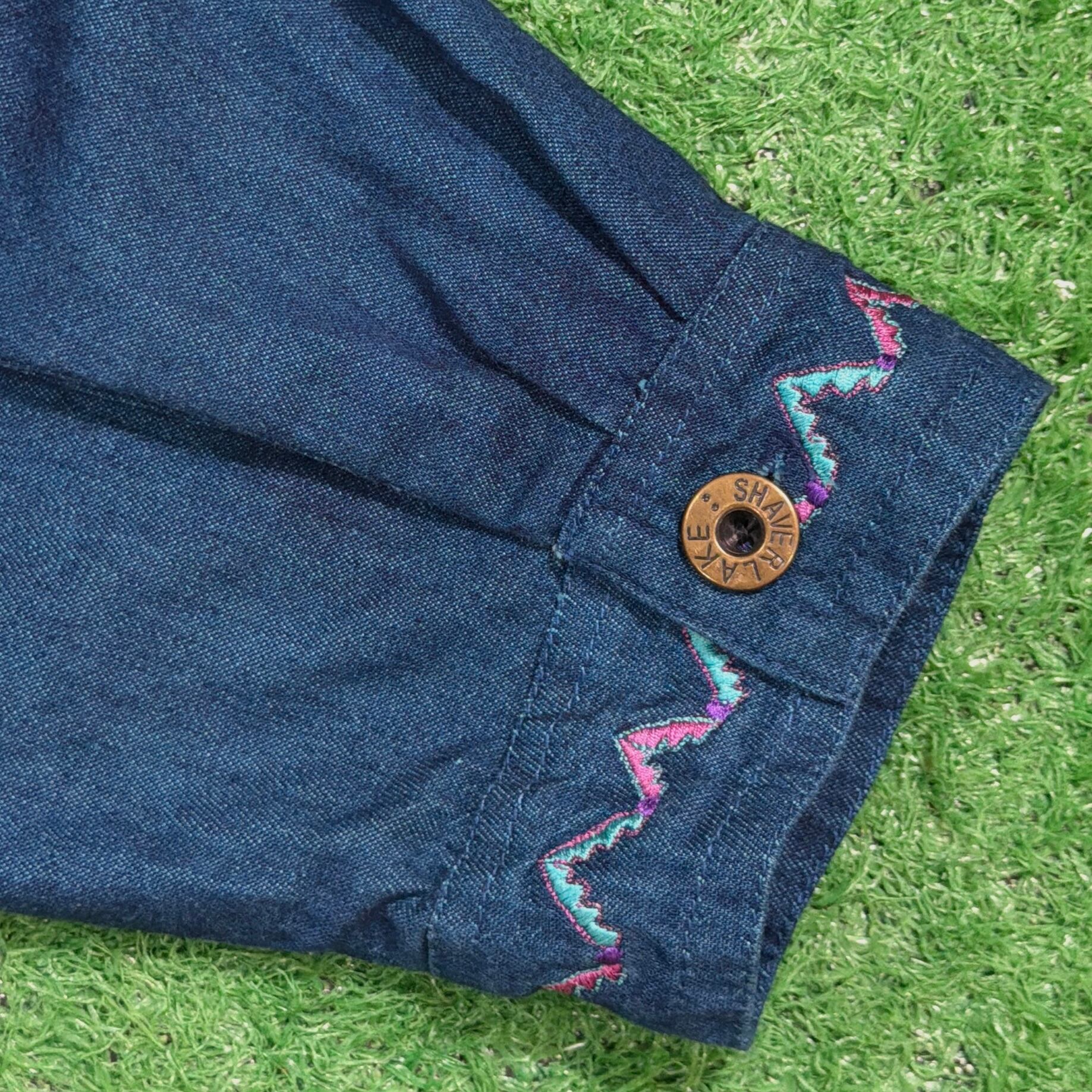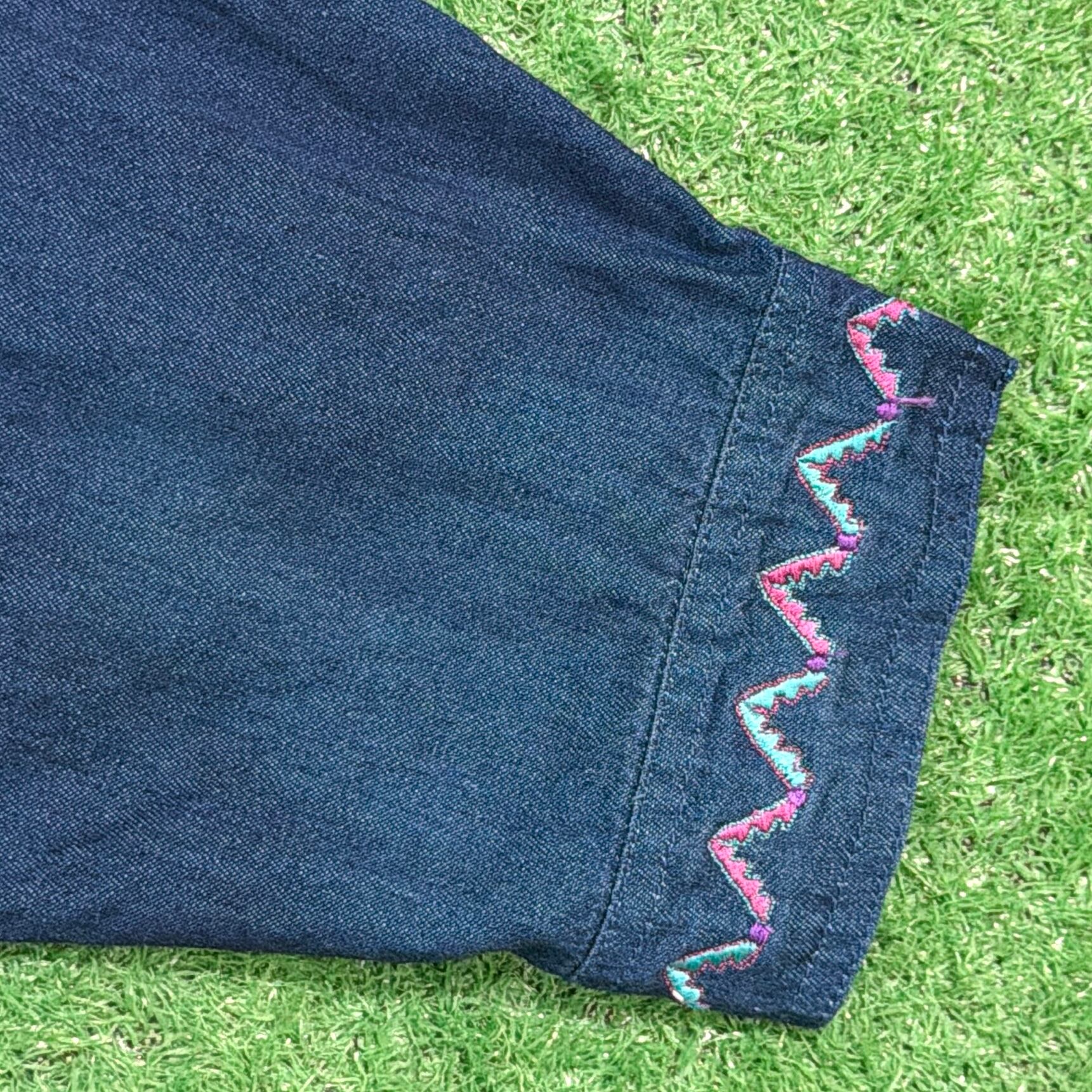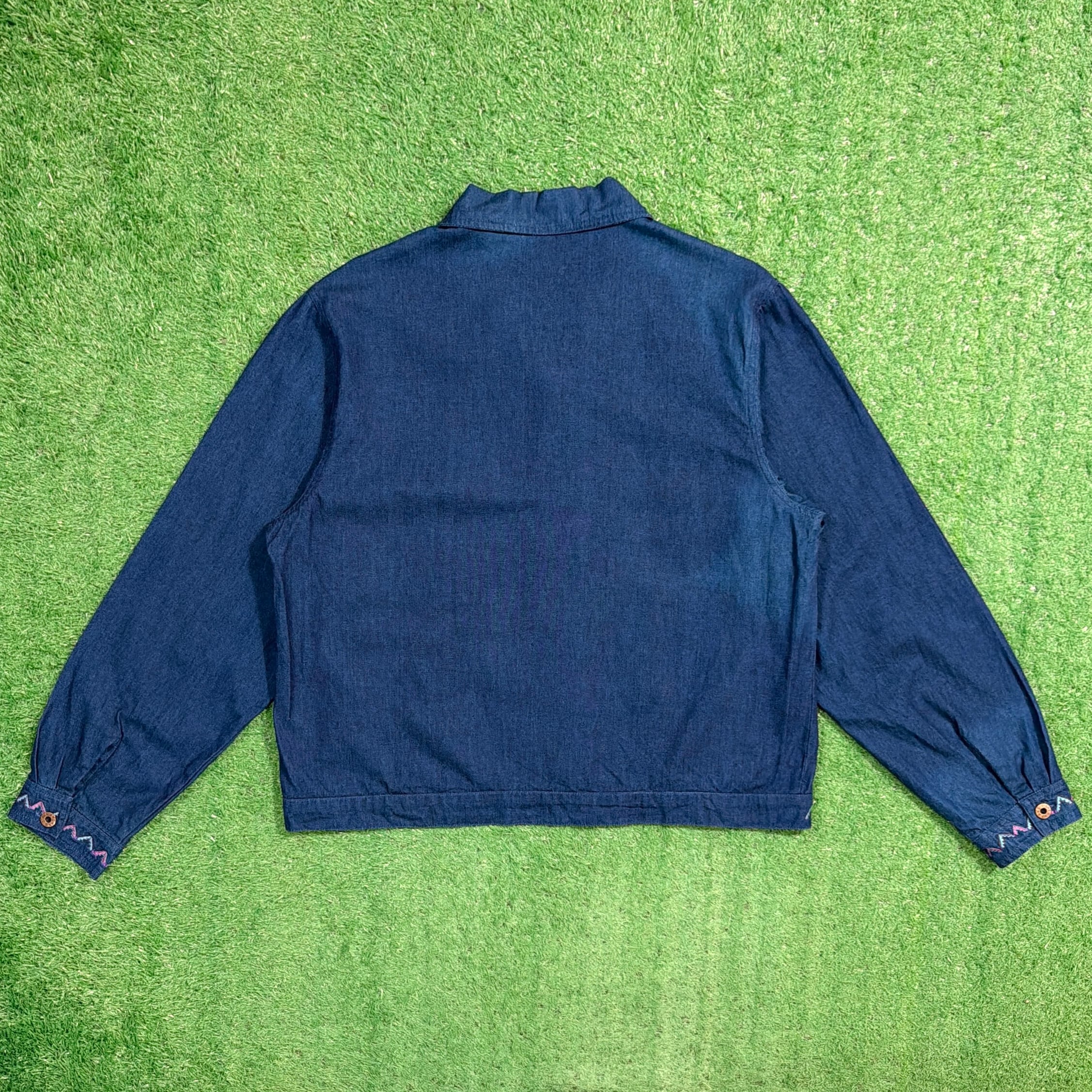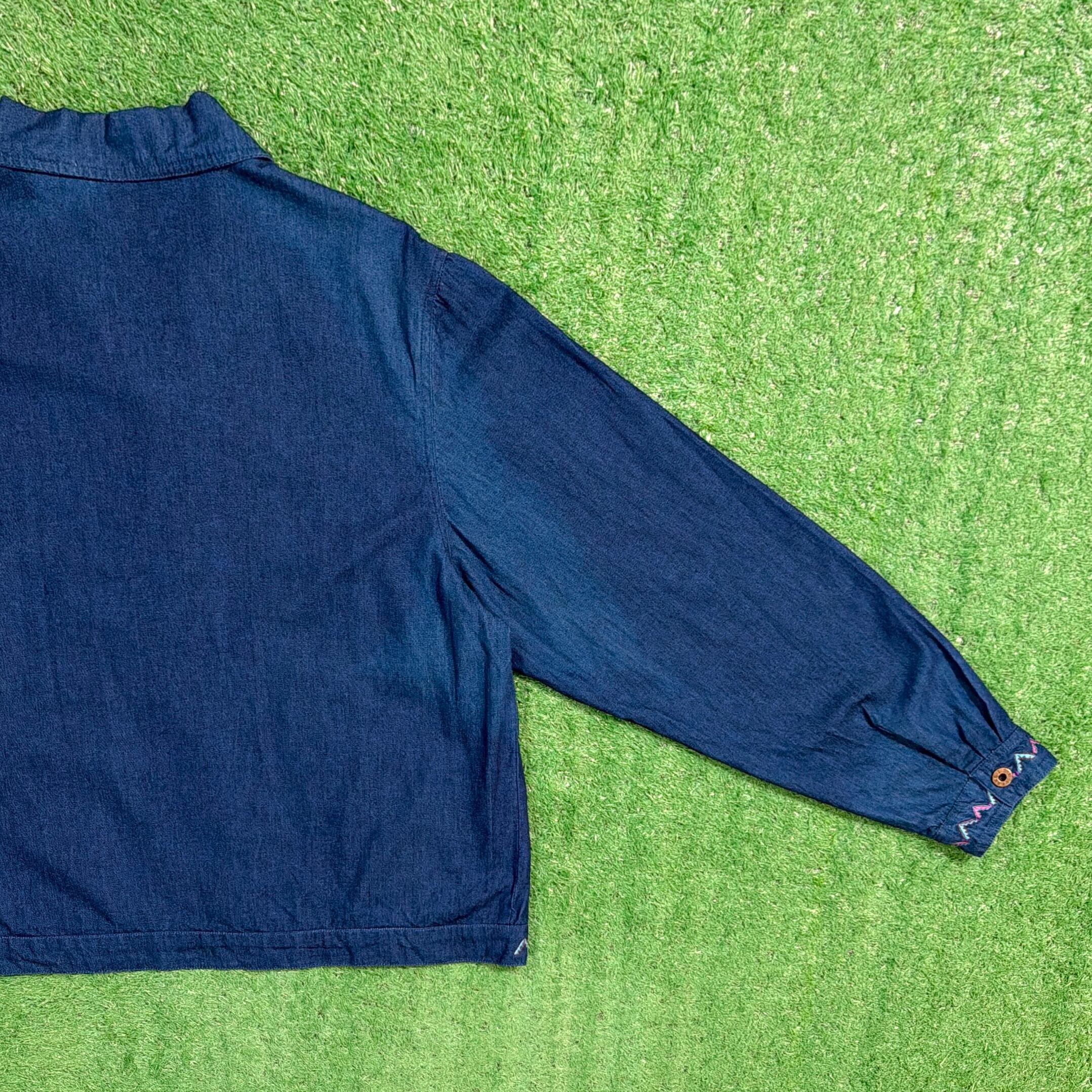 【Lady's】 90s インディゴ コットン 開襟 シャツ ジャケット / 90年代 古着 刺繍 レディース 1422