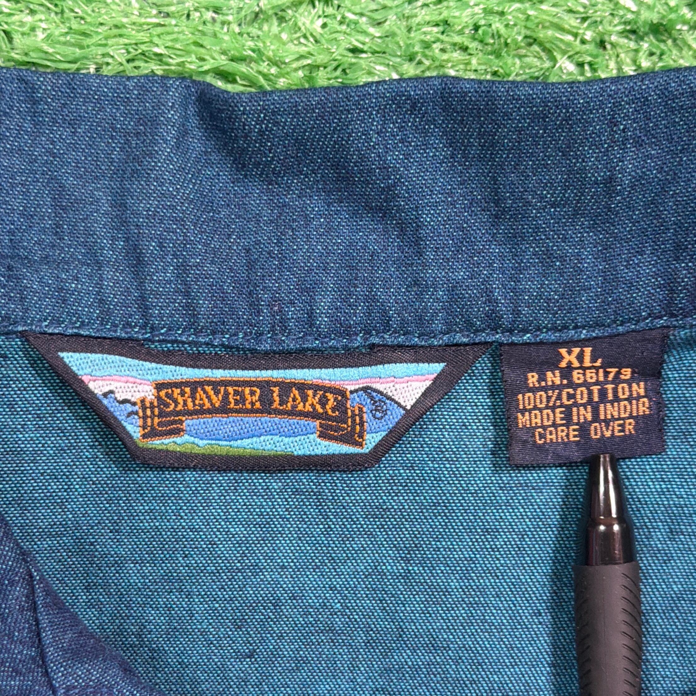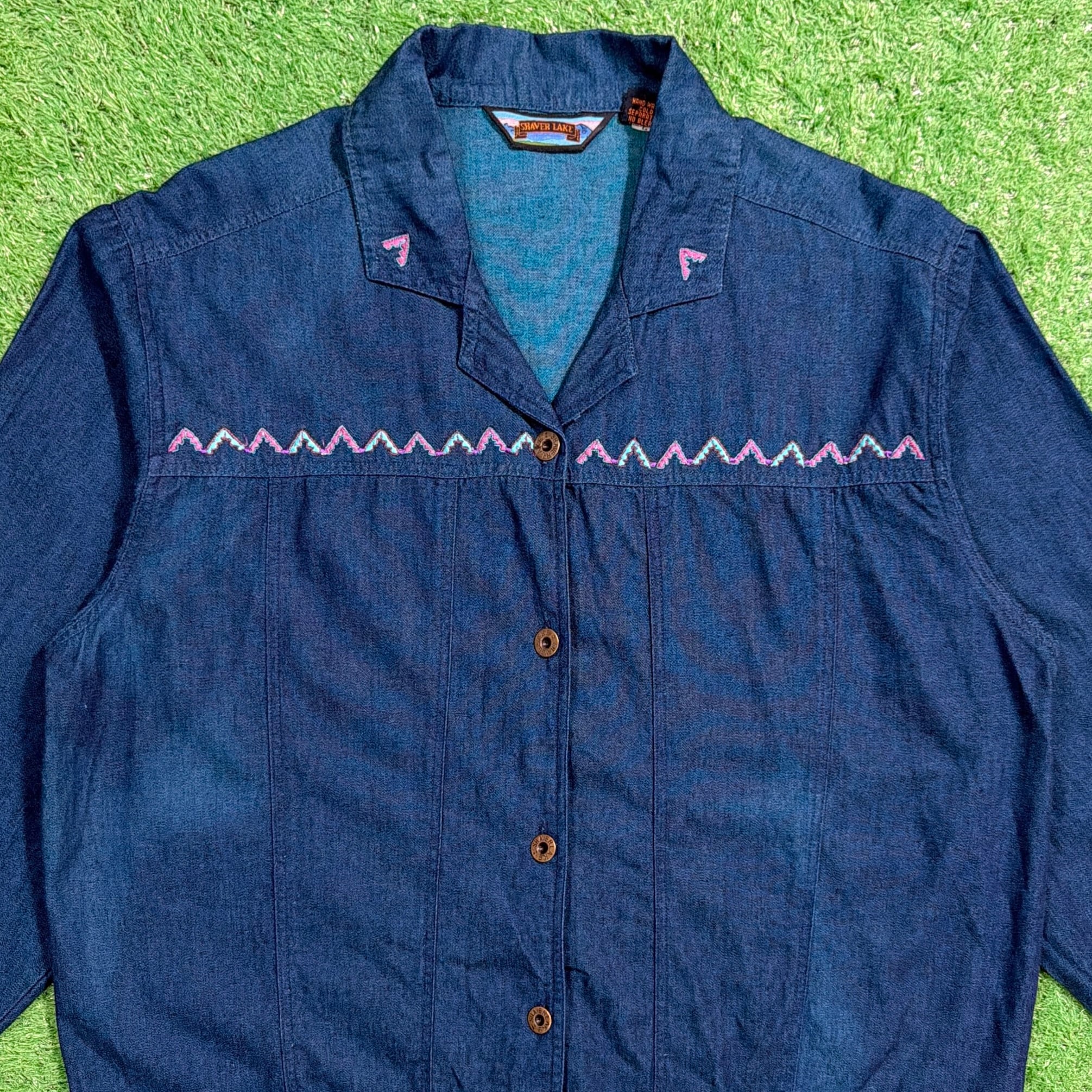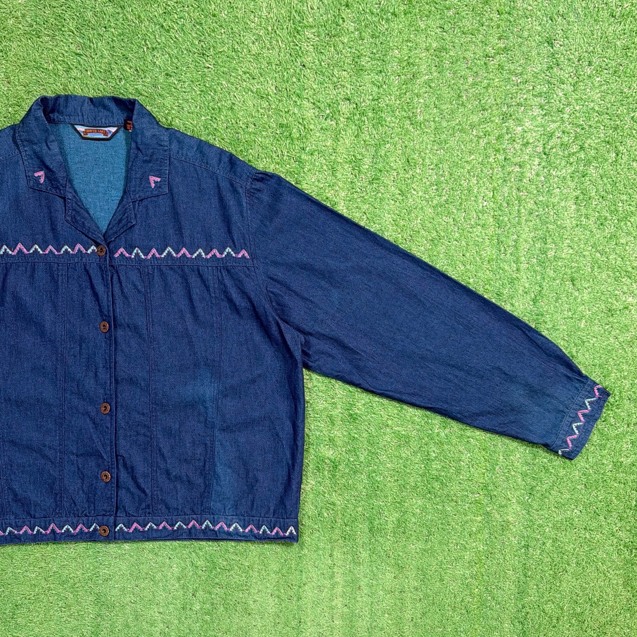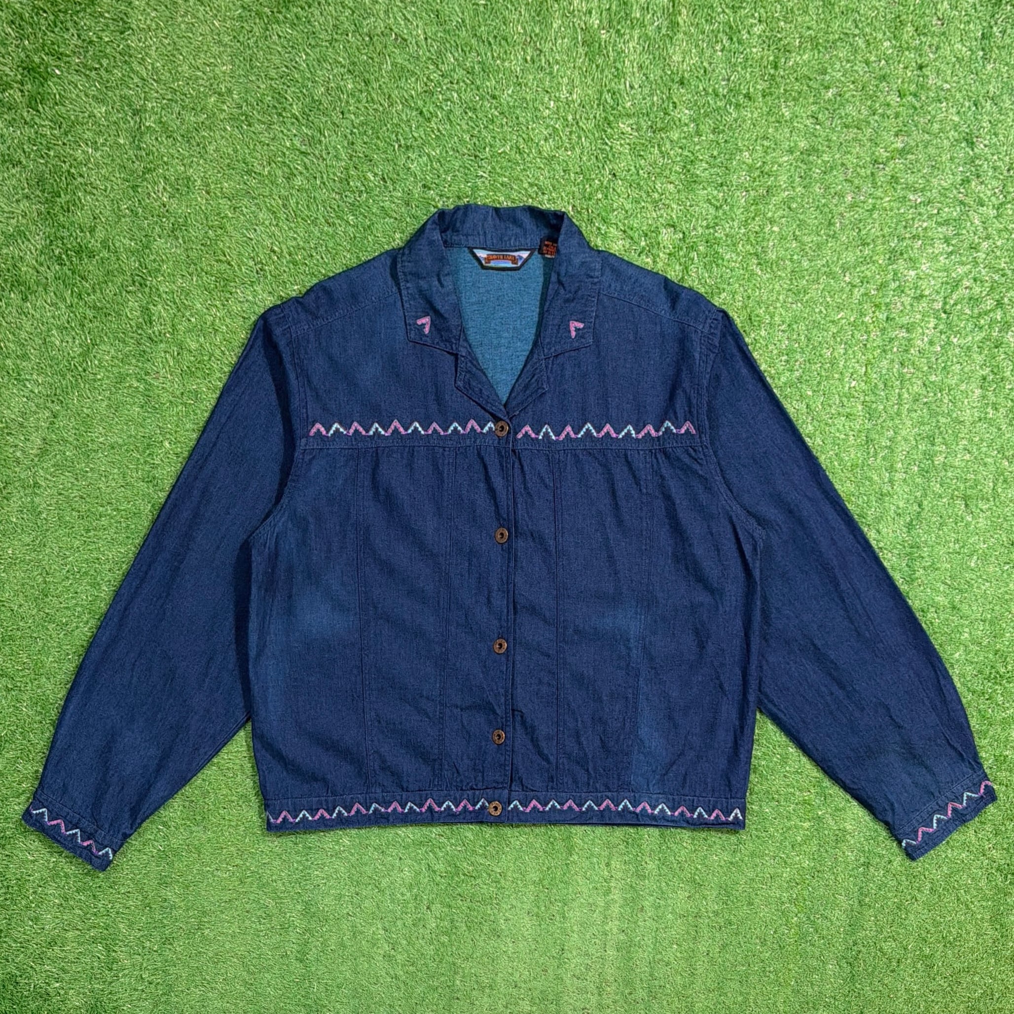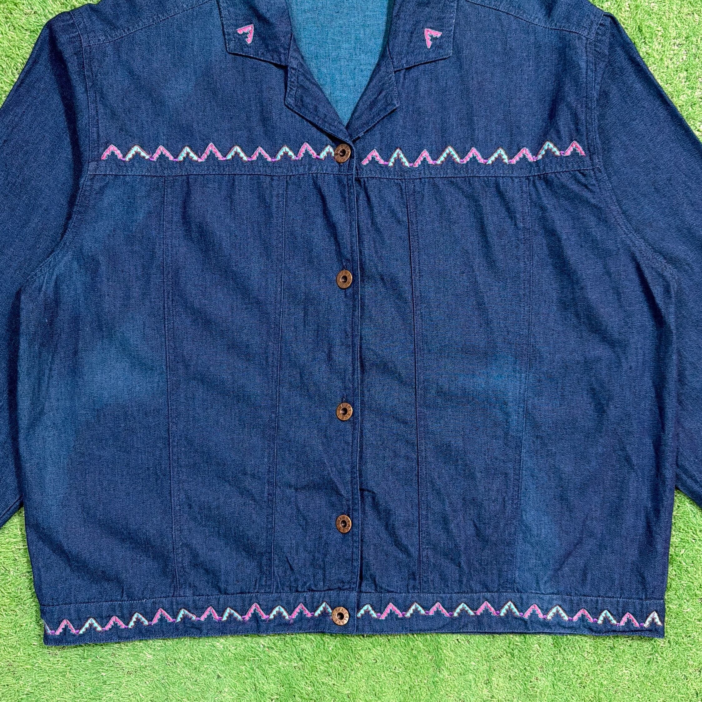 【Lady's】 90s インディゴ コットン 開襟 シャツ ジャケット / 90年代 古着 刺繍 レディース 1422