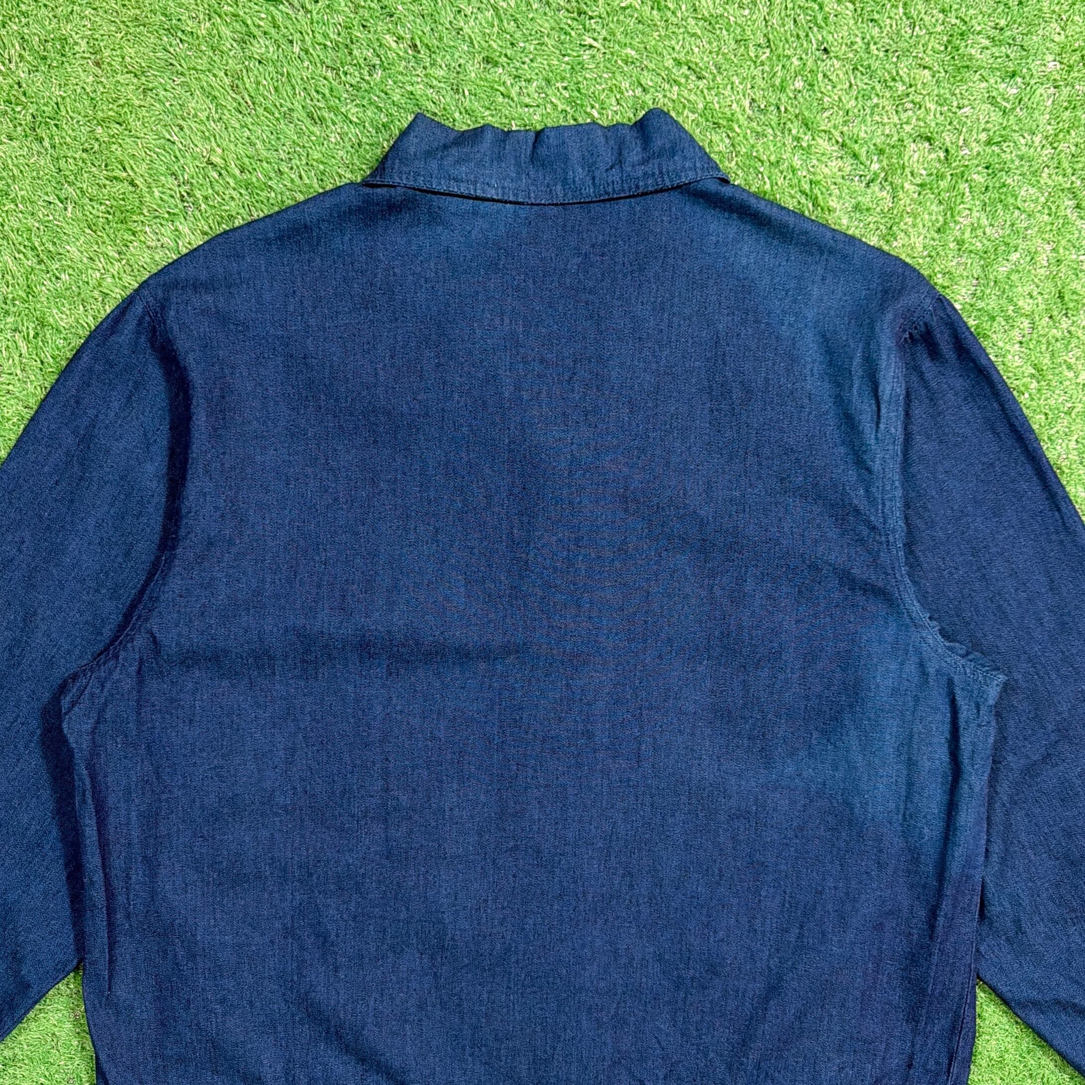 1990年代のインディゴカラーのコットン素材を使用した、開襟タイプのシャツジャケットです。