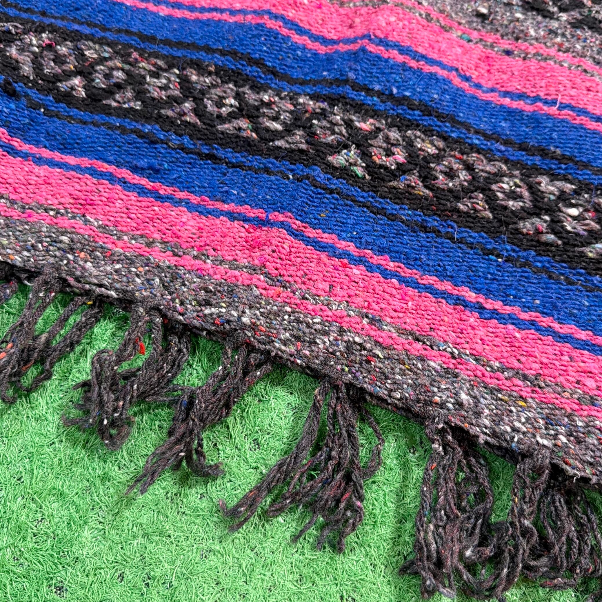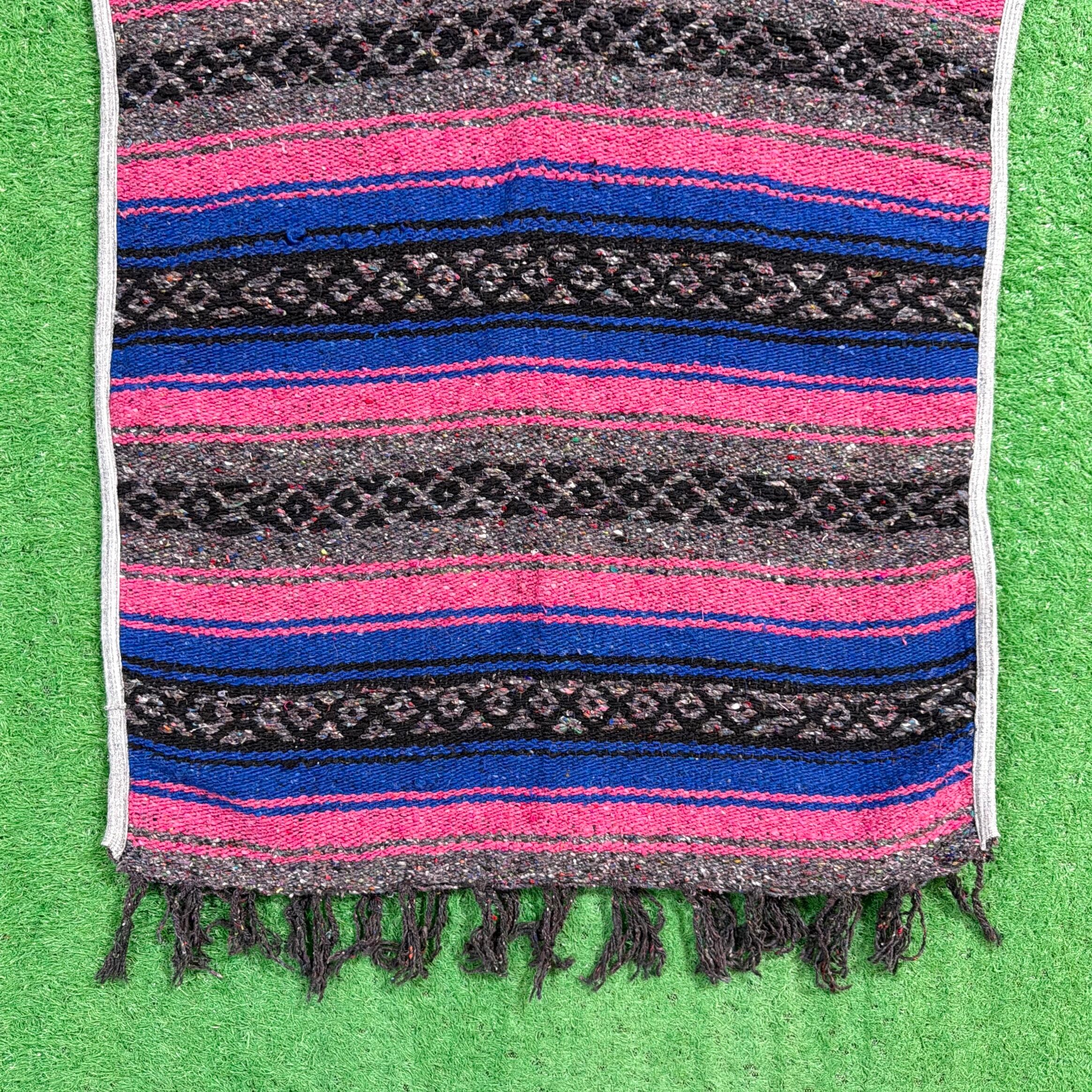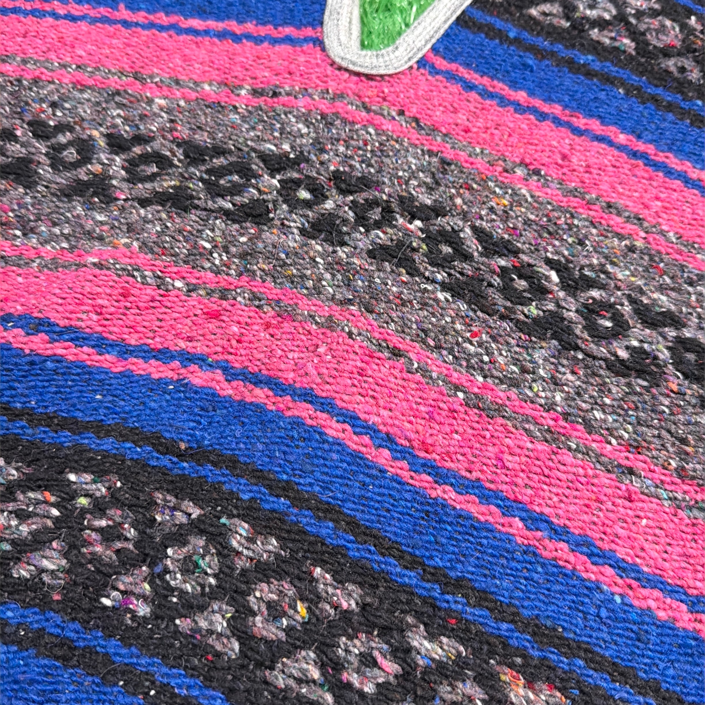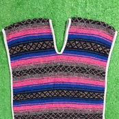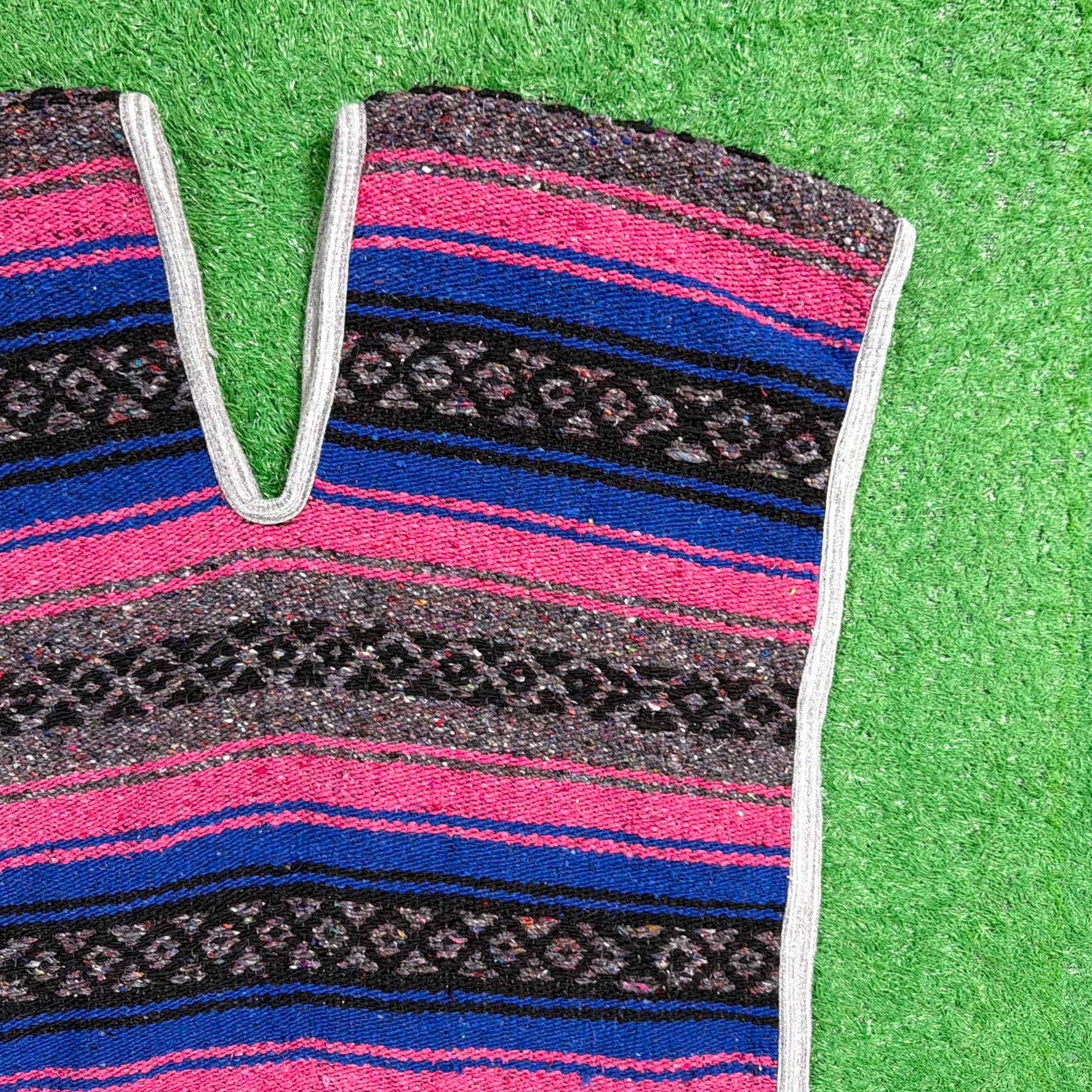 カラフルなボーダー柄が目を引く、メキシカンブランケット素材のポンチョです。