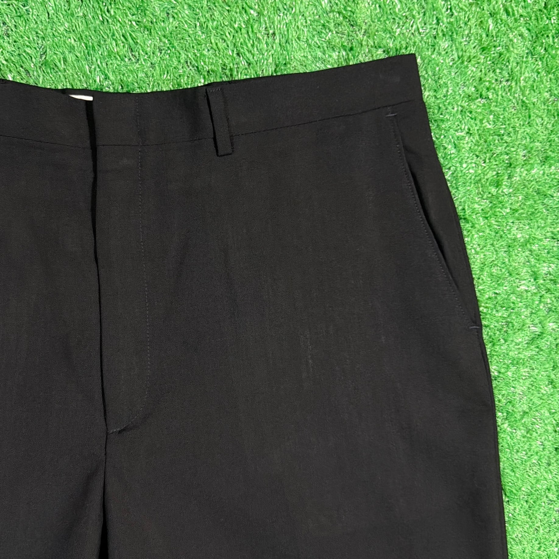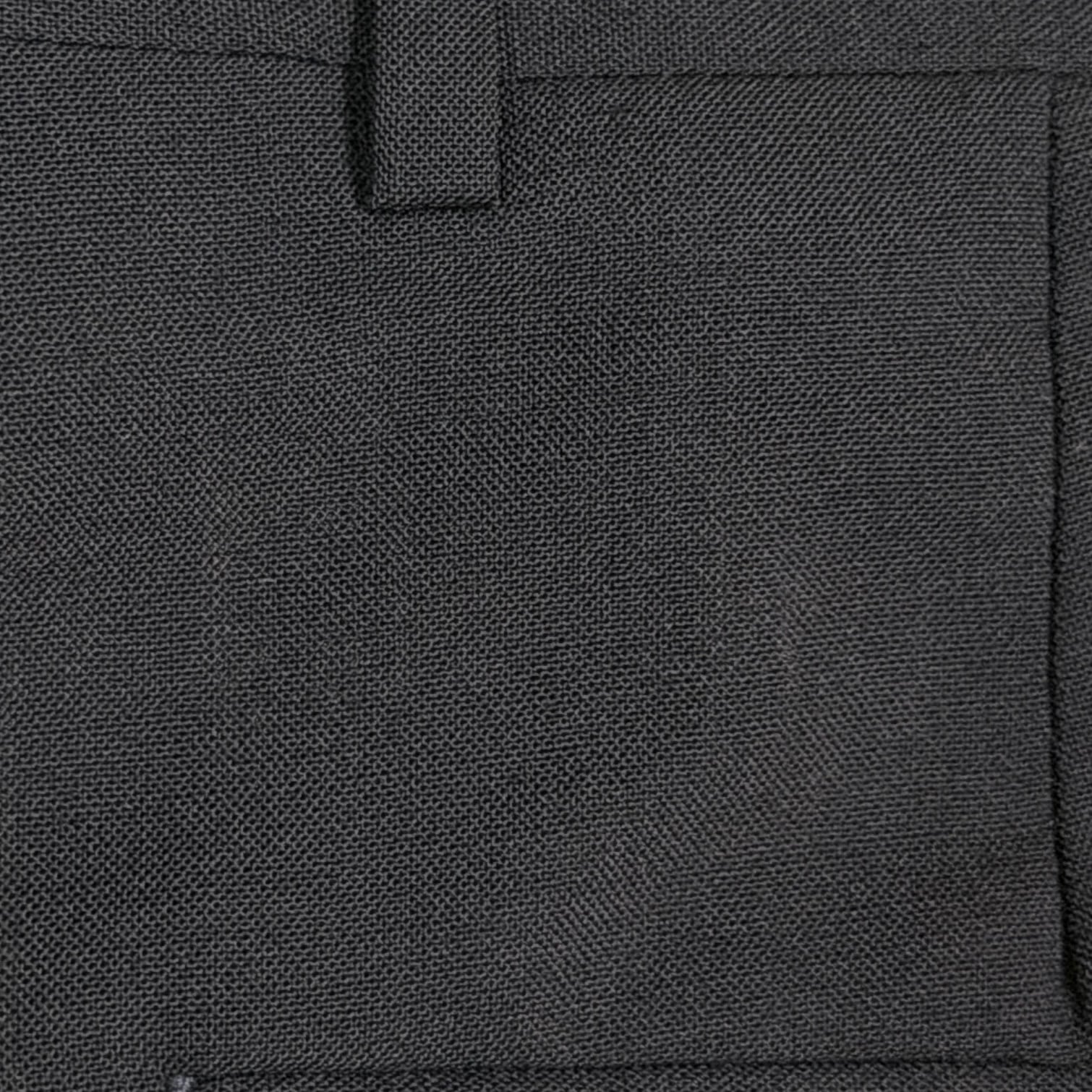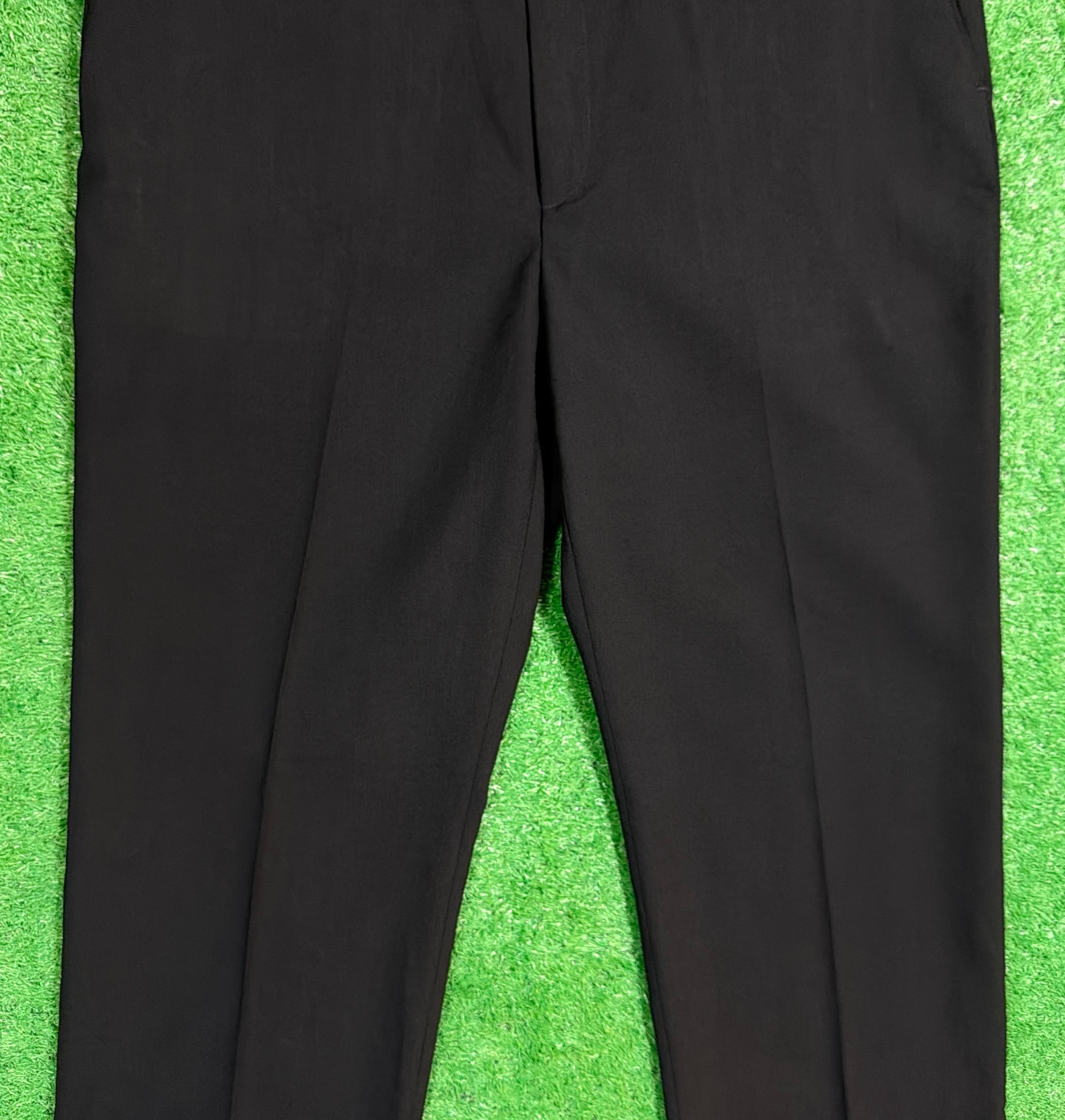 無駄のないシンプルなブラックカラーに、すっきりとしたストレートシルエットが特徴の一本。フロントはクセのないスラックス仕様で、きれいめにもカジュアルにも振れる汎用性の高いデザインです。