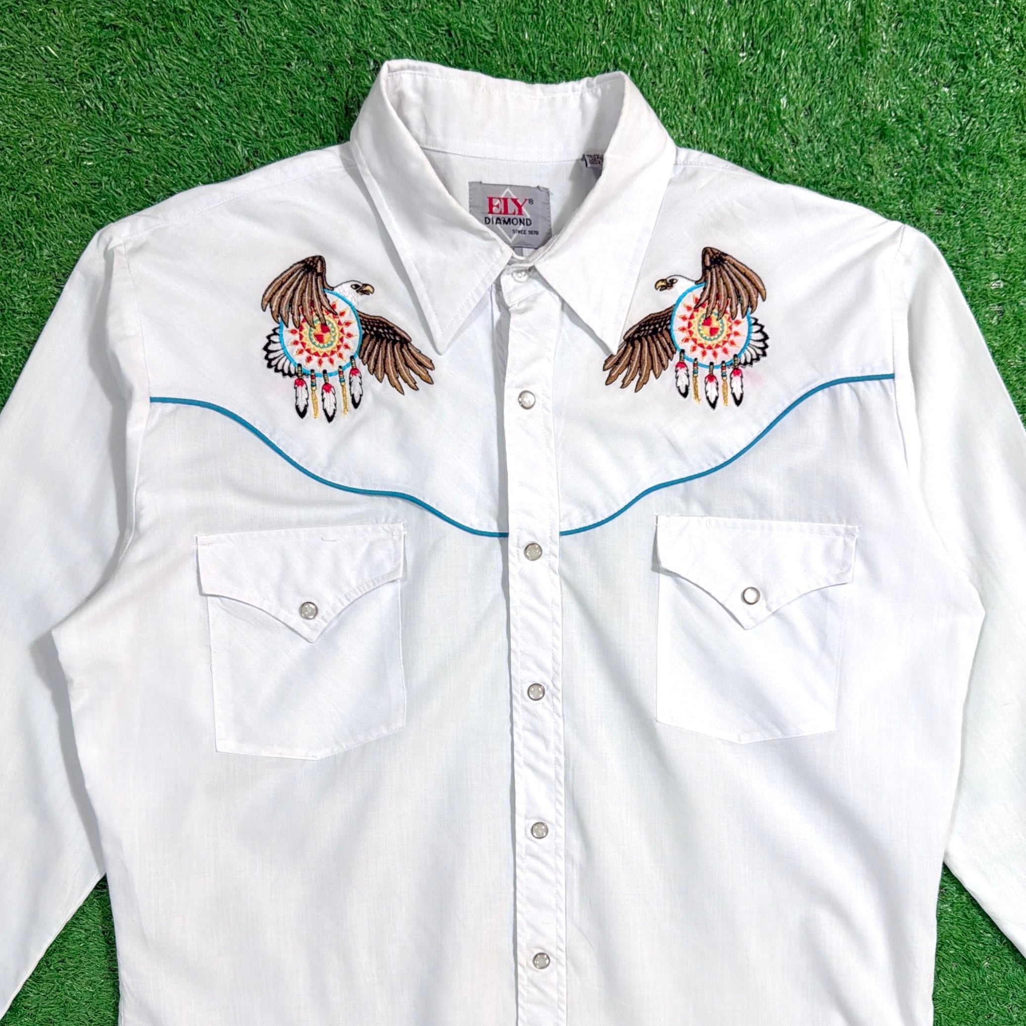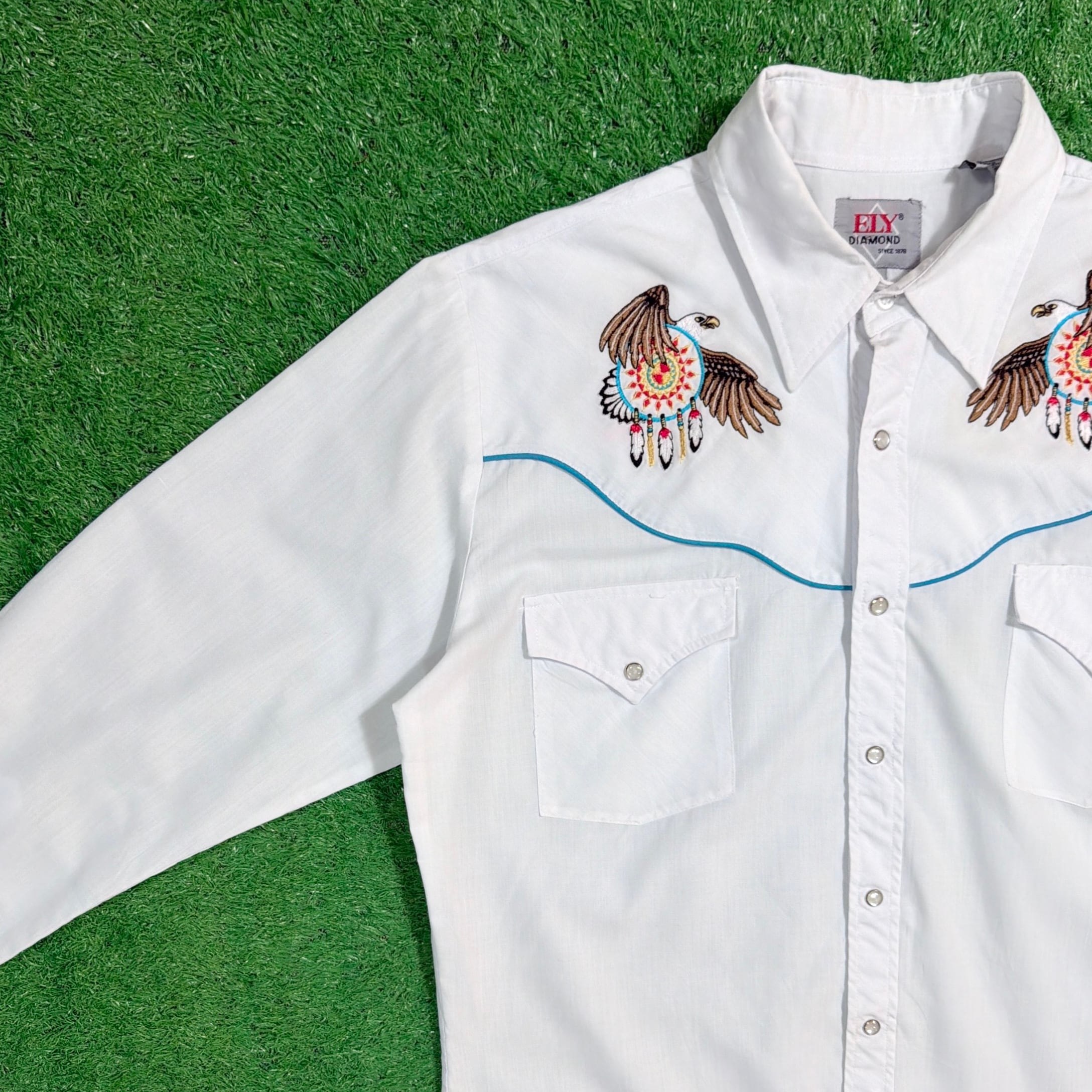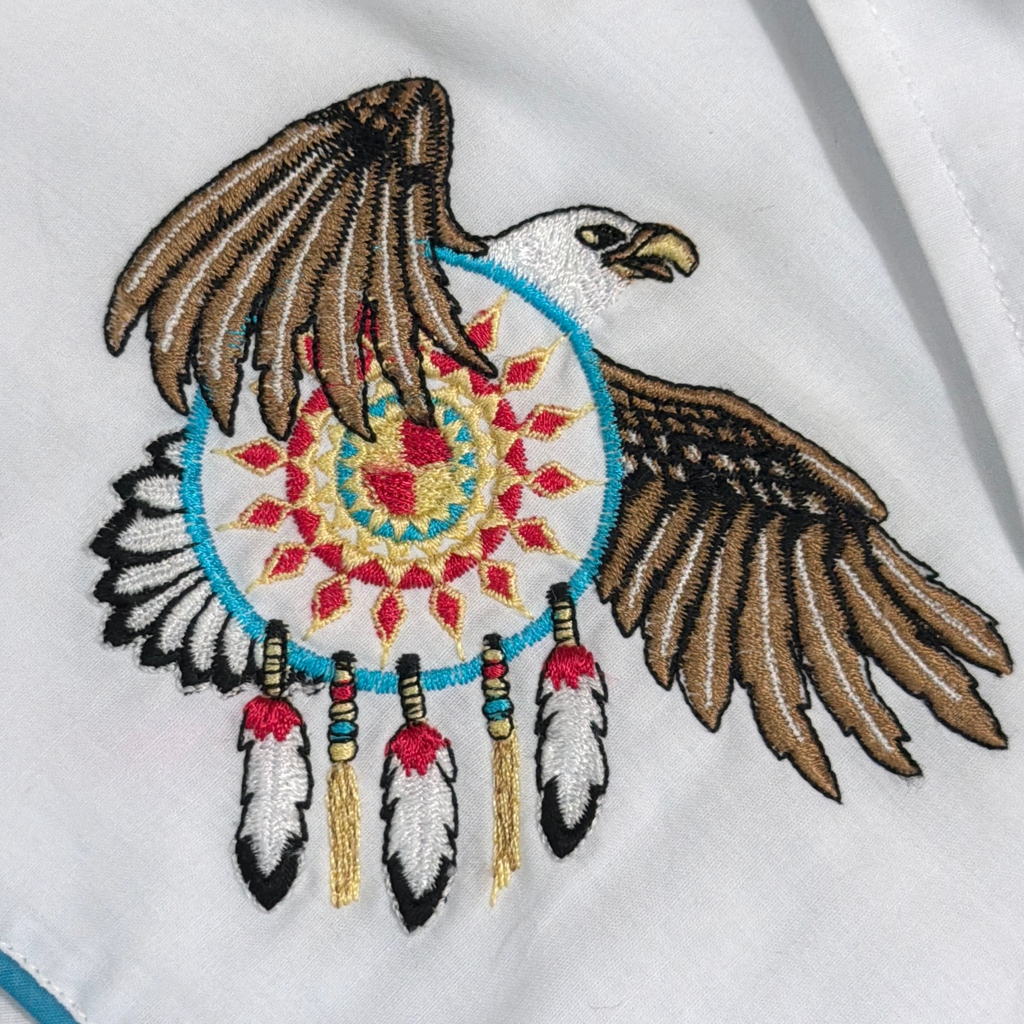 【Men's】 90s イーグル & ドリームキャッチャー 刺繍入り ウエスタンシャツ / 90年代 古着 シャツ ウエスタン ウェスタン ウェスタンシャツ 白 メンズ ネイティブアメリカン メンズ 1431
