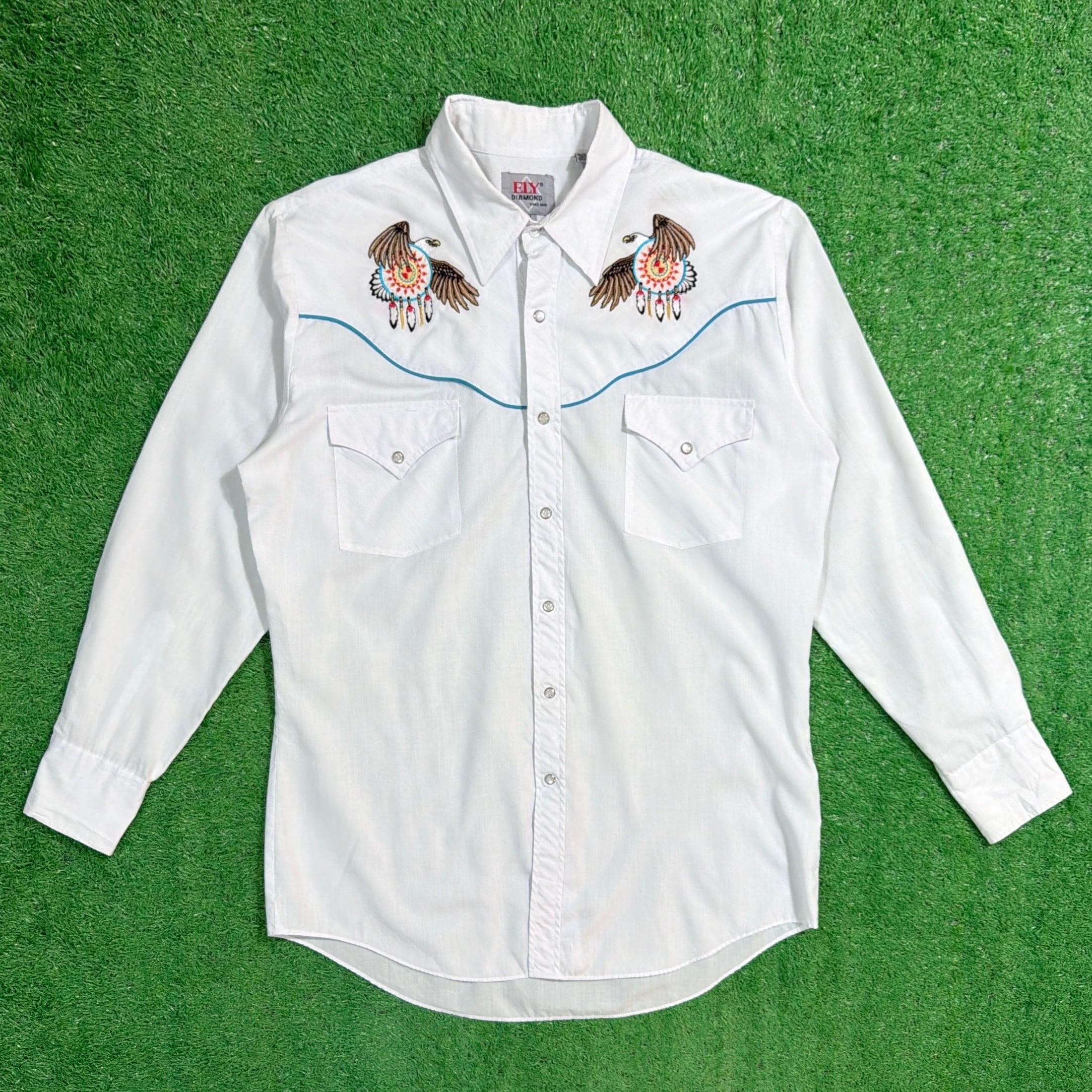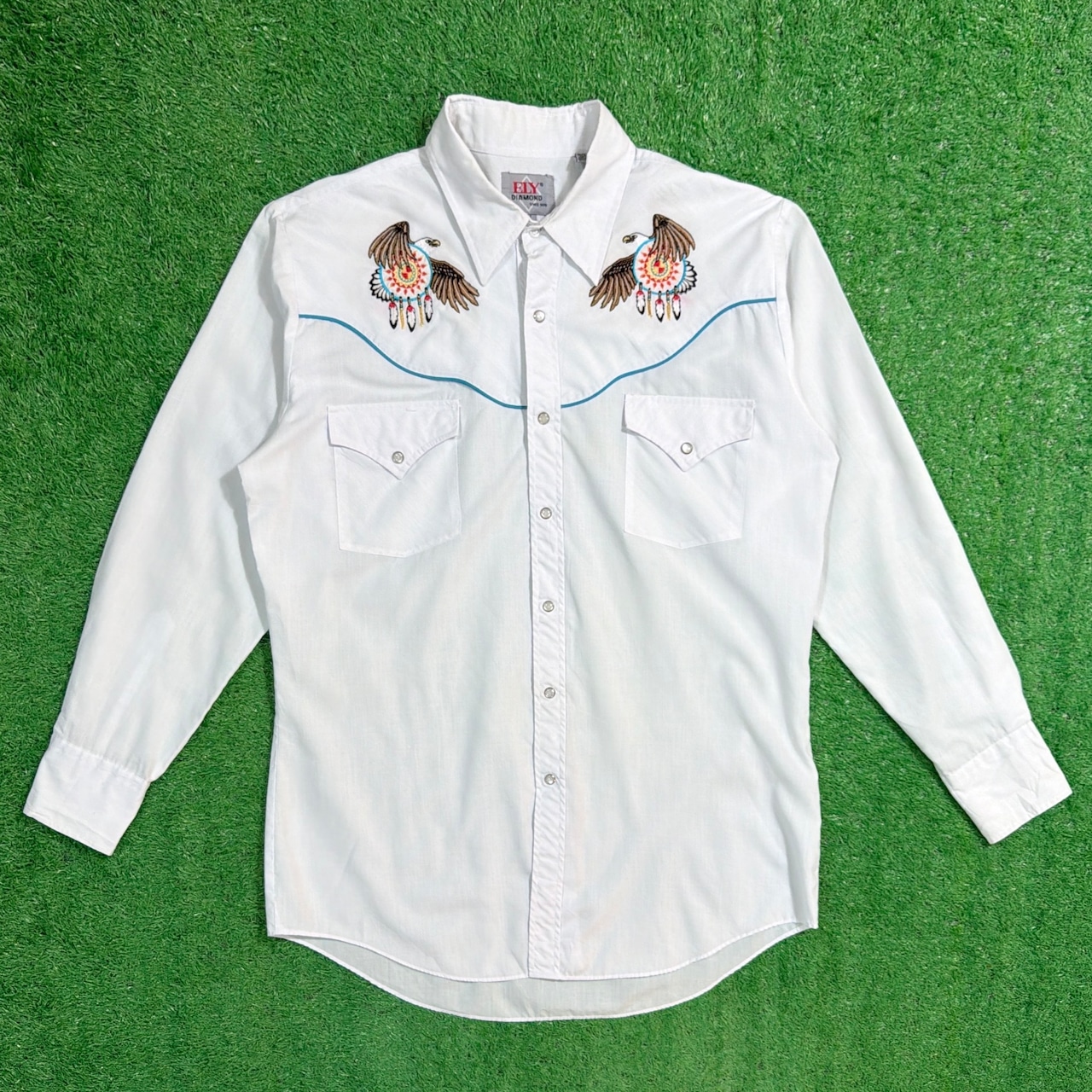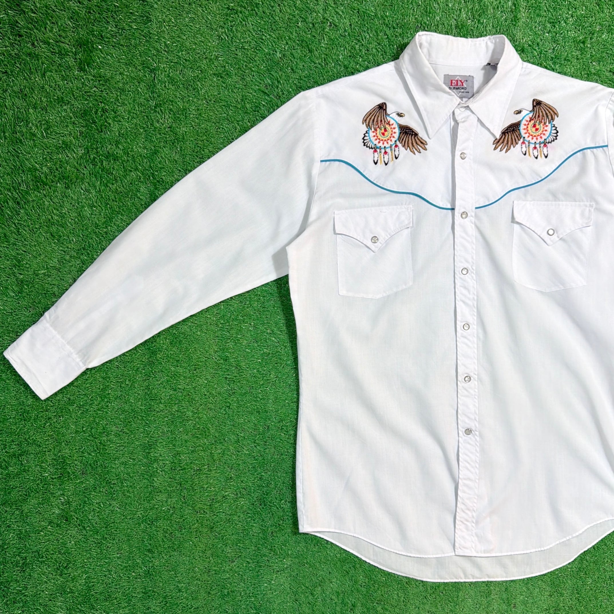 【Men's】 90s イーグル & ドリームキャッチャー 刺繍入り ウエスタンシャツ / 90年代 古着 シャツ ウエスタン ウェスタン ウェスタンシャツ 白 メンズ ネイティブアメリカン メンズ 1431