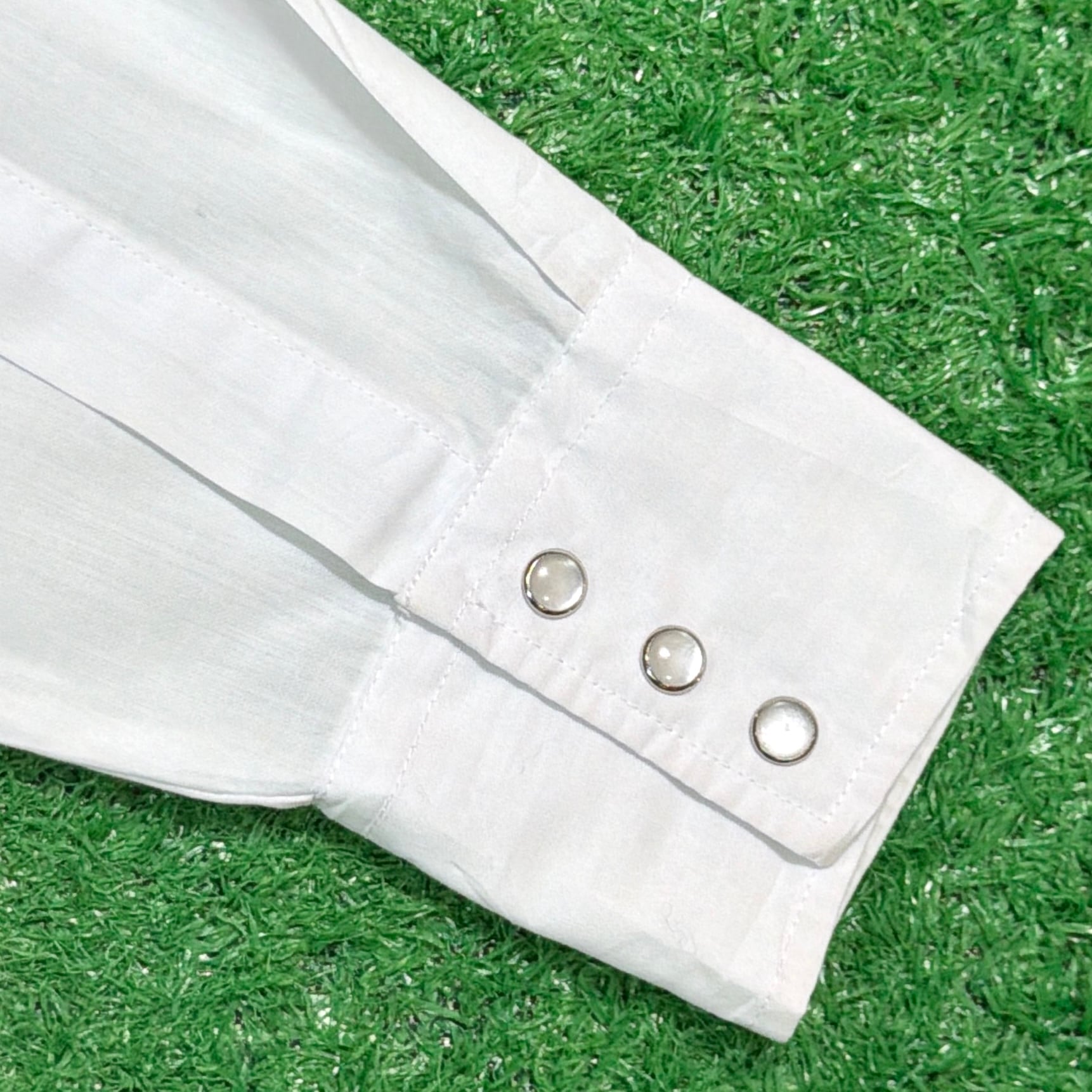 ウエスタンシャツらしい切り替えやパール調スナップボタンもポイントで、デザイン性がありつつも着やすいバランスに仕上がっています。