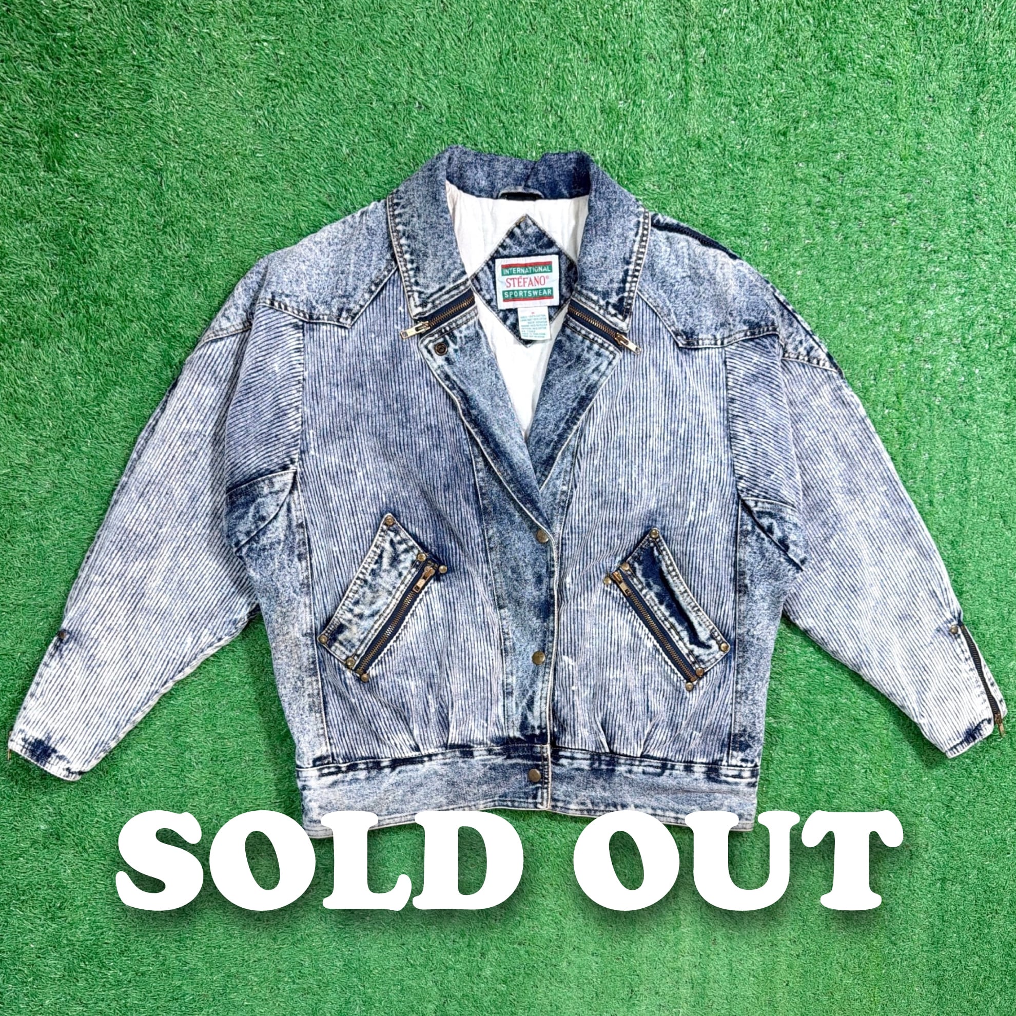 全体に施されたケミカルウォッシュ加工によるムラ感のある色落ちが、80sらしい存在感をしっかり感じさせる一枚。デニムジャケットをベースにしつつ、ライダースジャケットのような切り替えやジップデザインが取り入れられており、程よくエッジの効いた印象です。